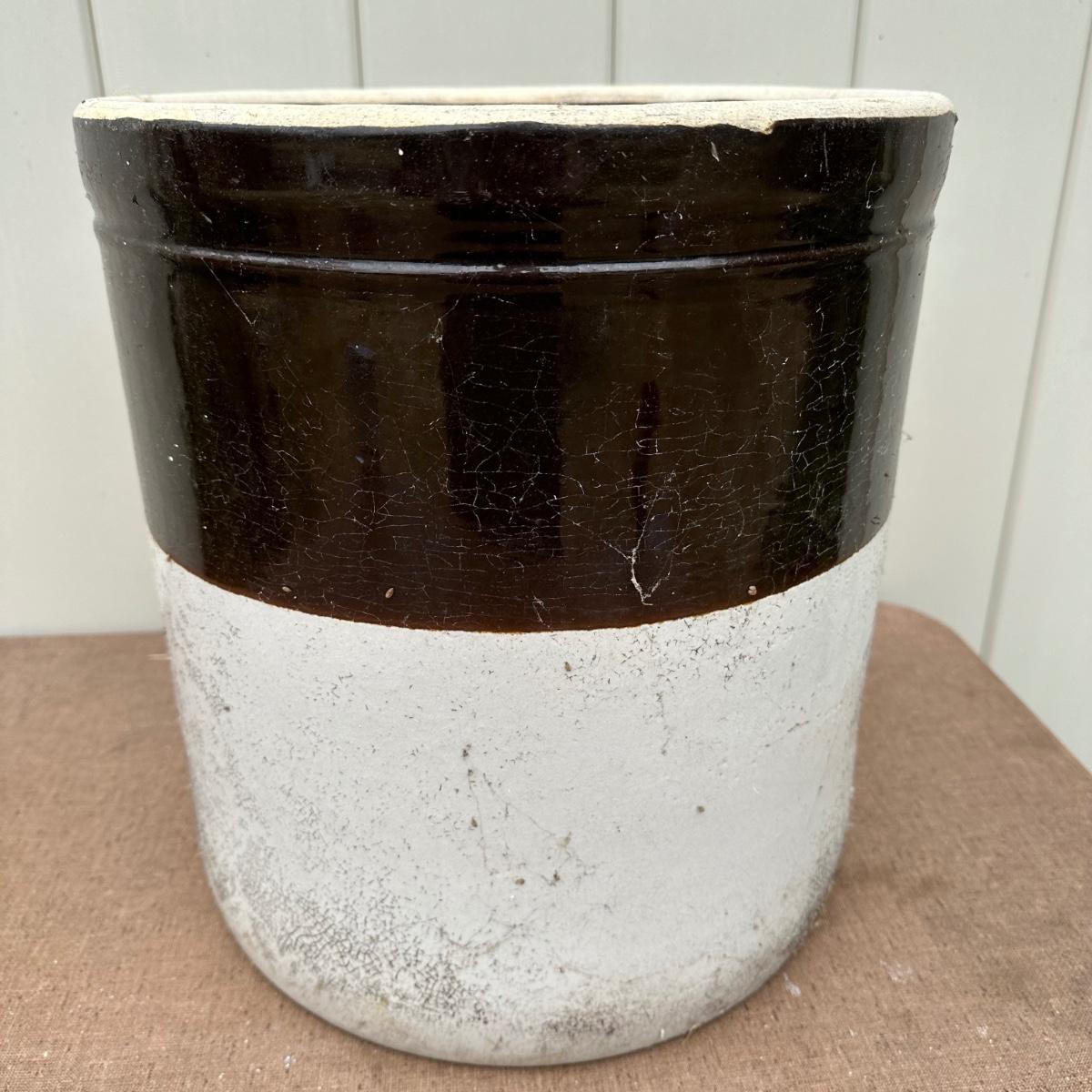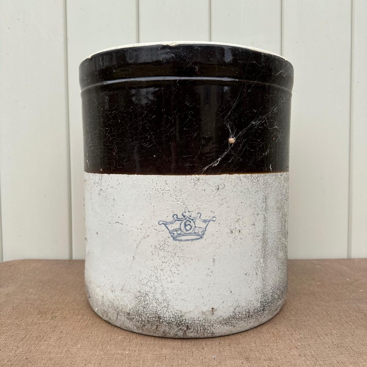 LOT 226P: Antique Robinson Ransbottom 6 Gallon Blue Crown Stoneware 2 Tone Crock