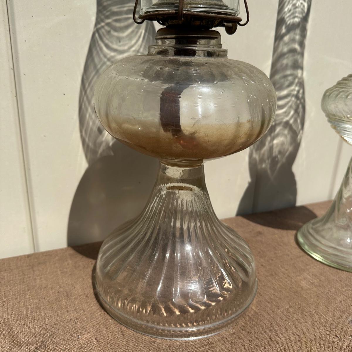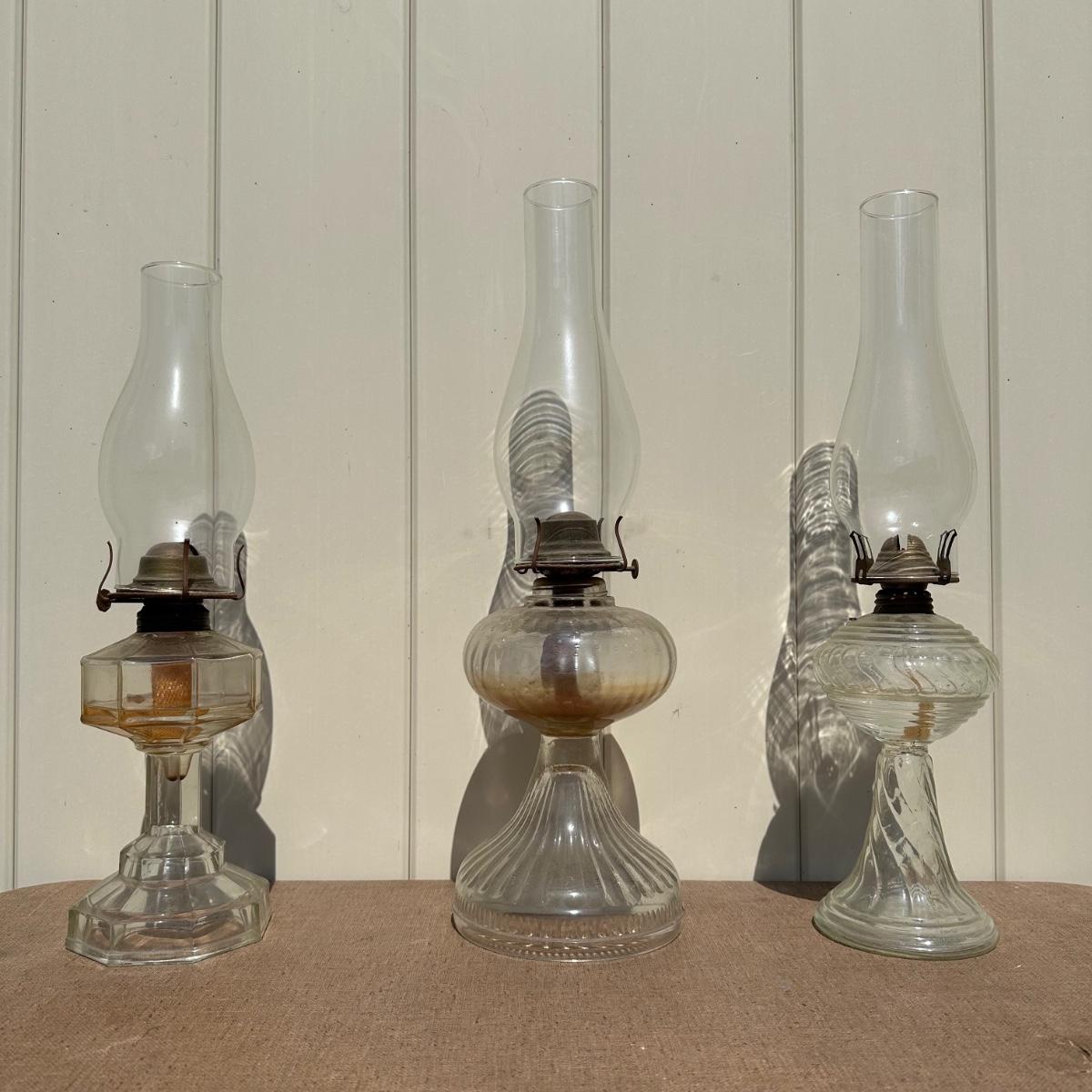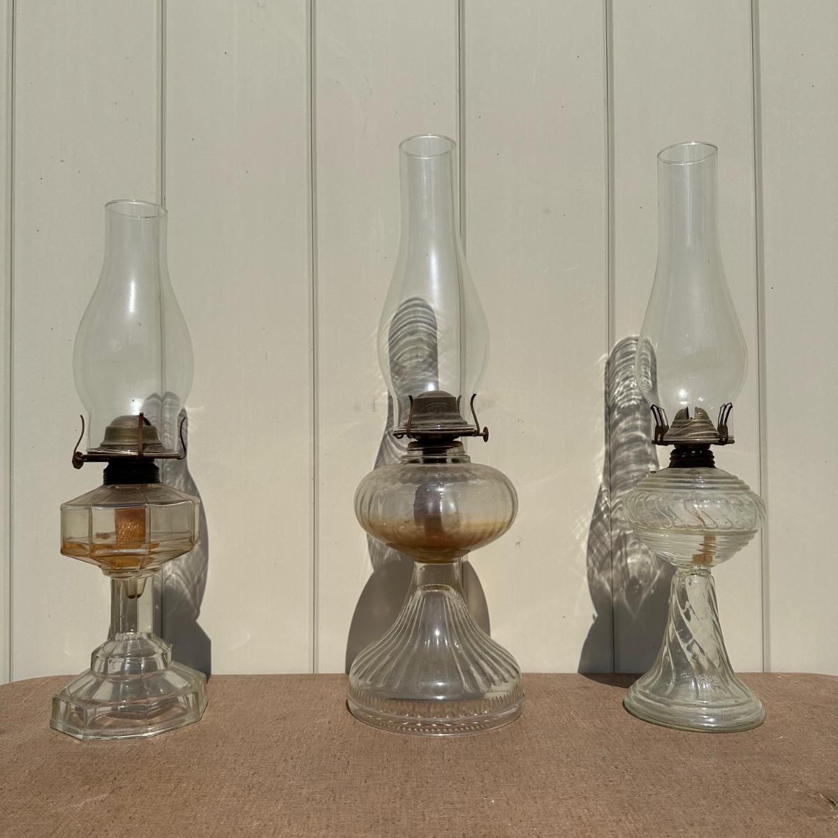 LOT 240P: 3 Vintage Clear Glass Oil Lamps
