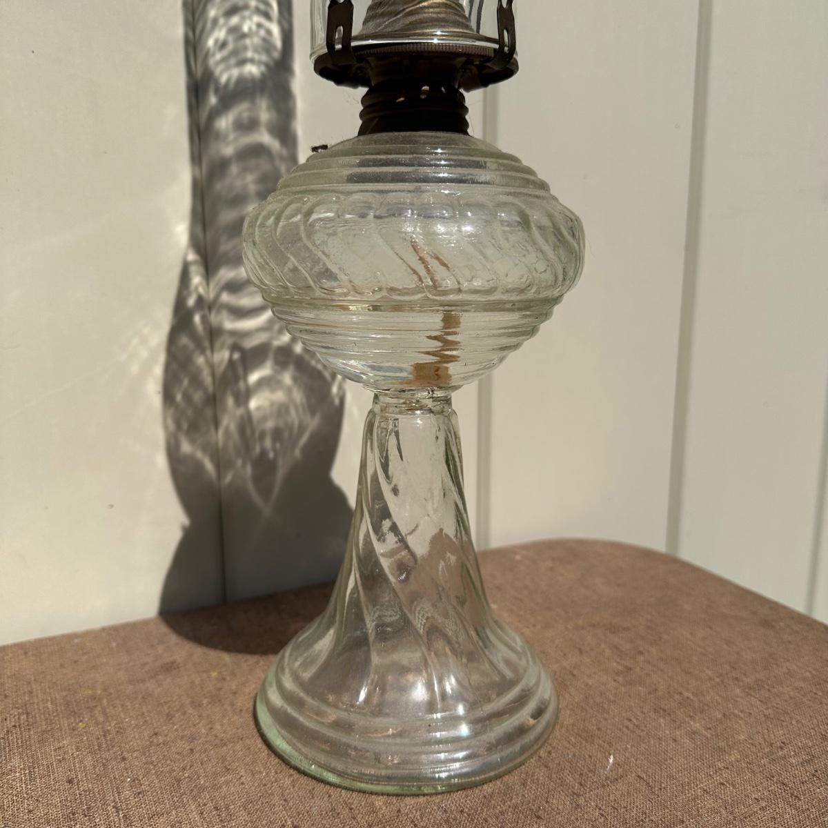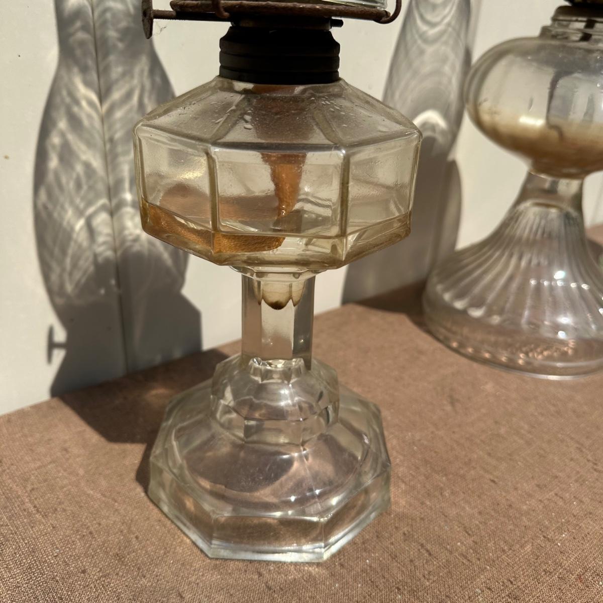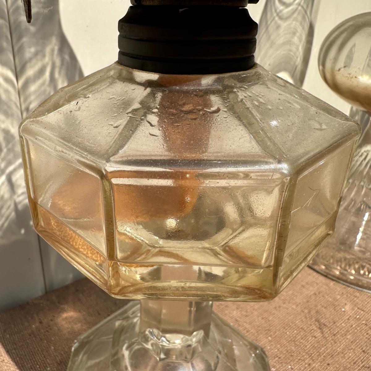 LOT 240P: 3 Vintage Clear Glass Oil Lamps