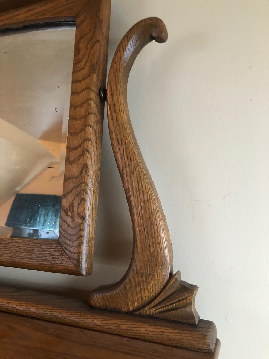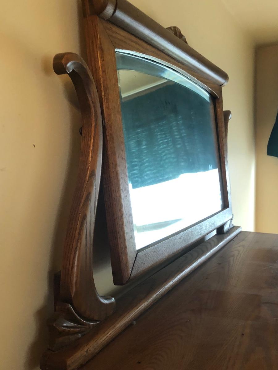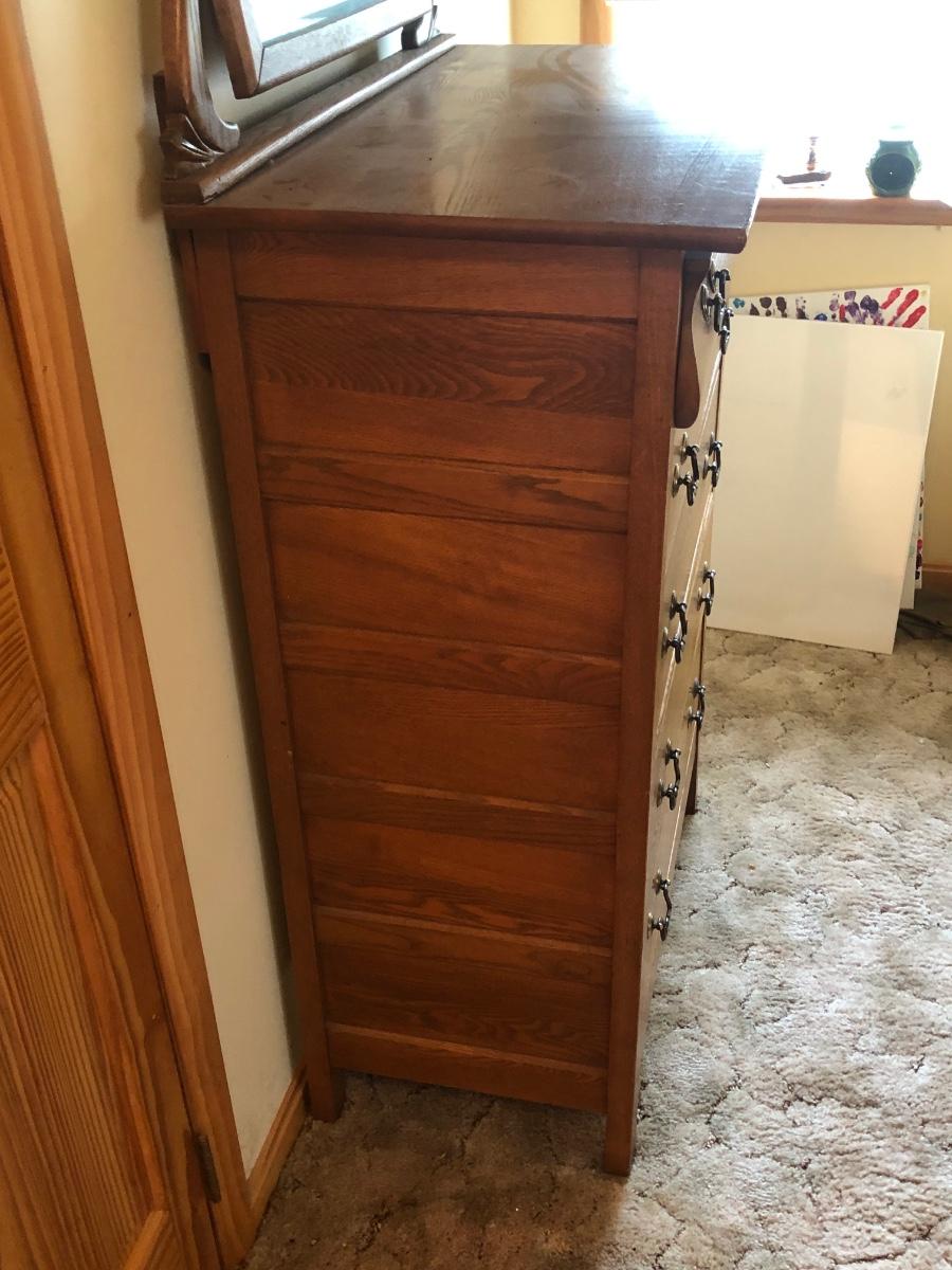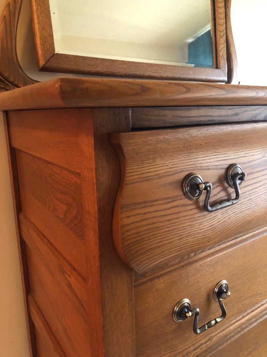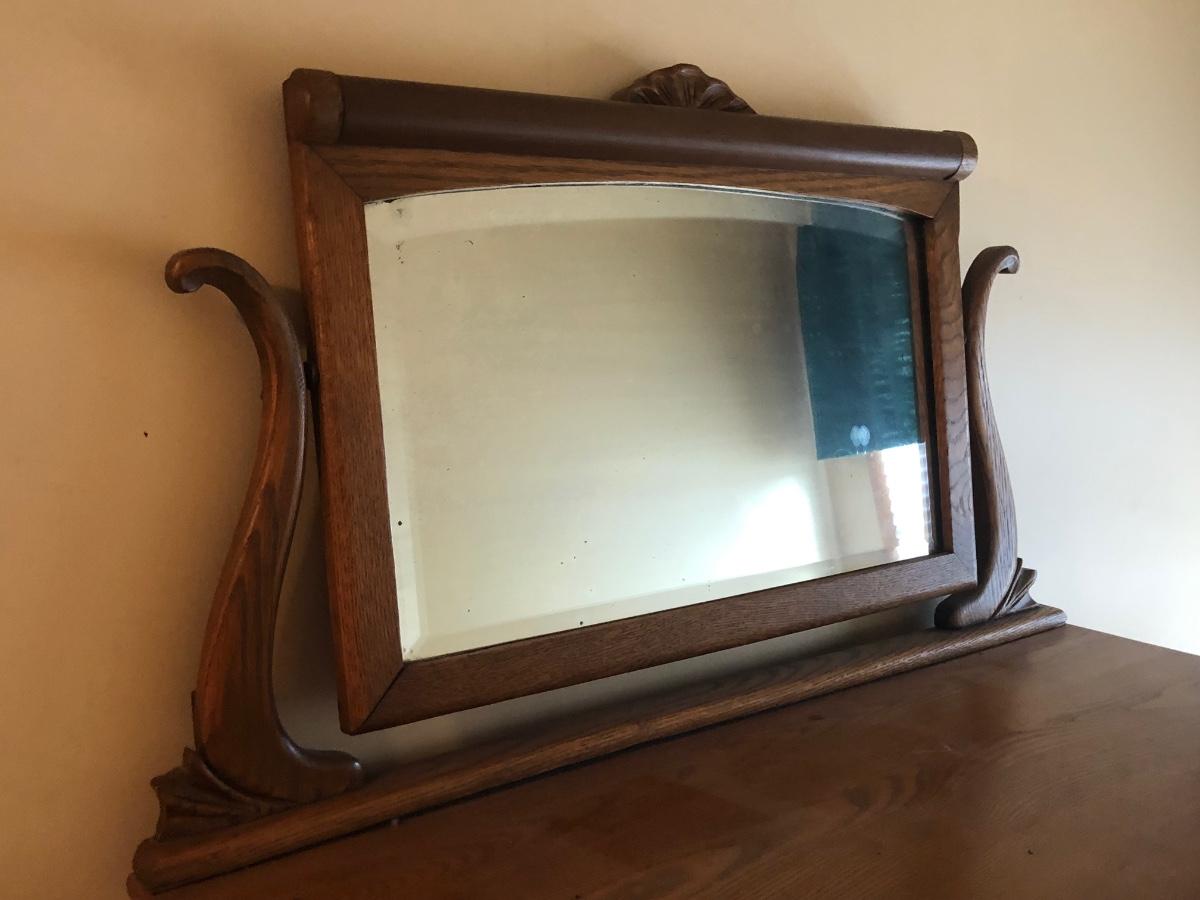 LOT 241U: Vintage 5-Drawer Wooden Dresser w/ Beveled Edge Mirror