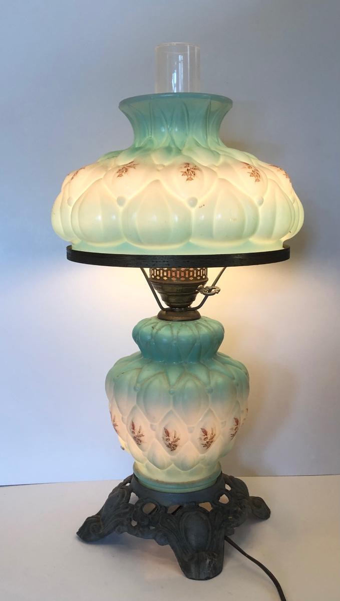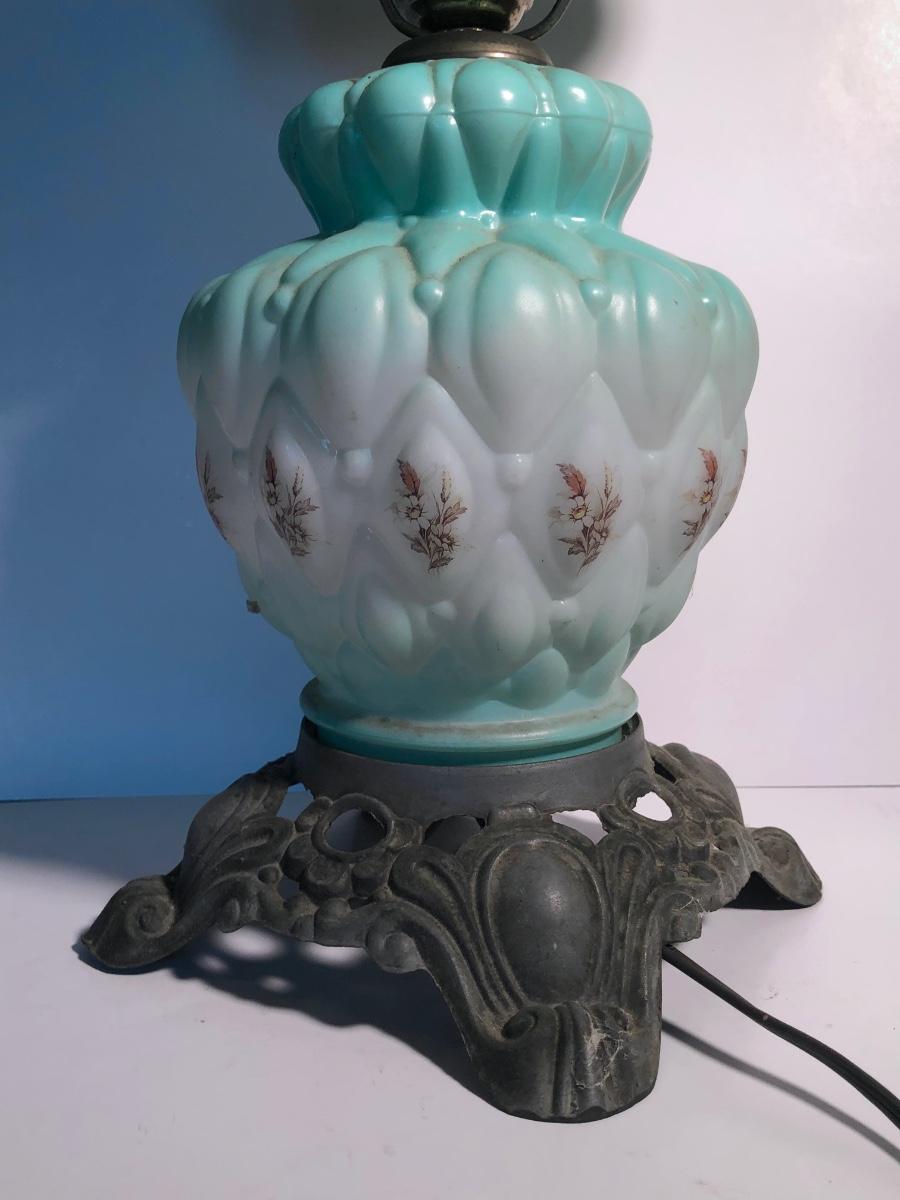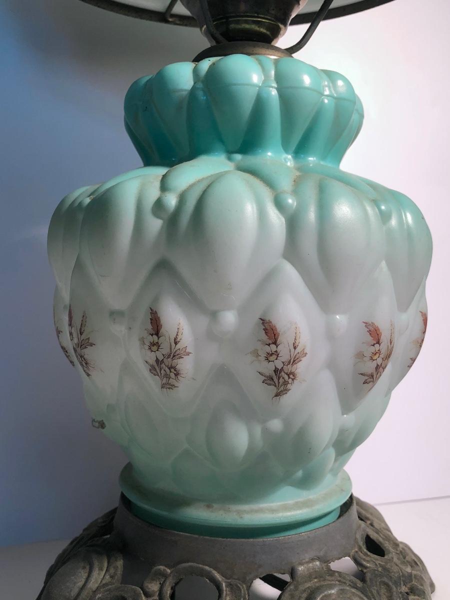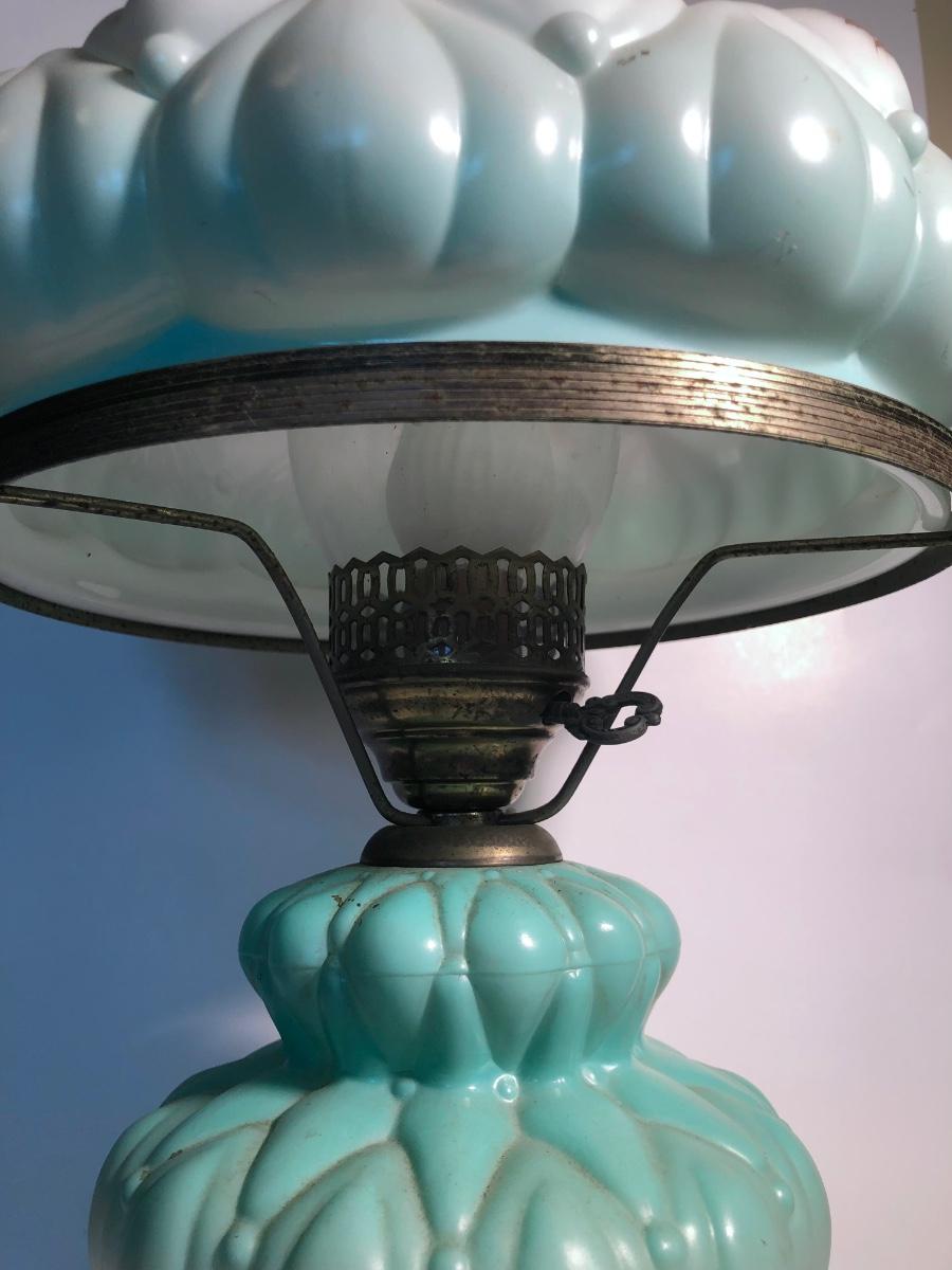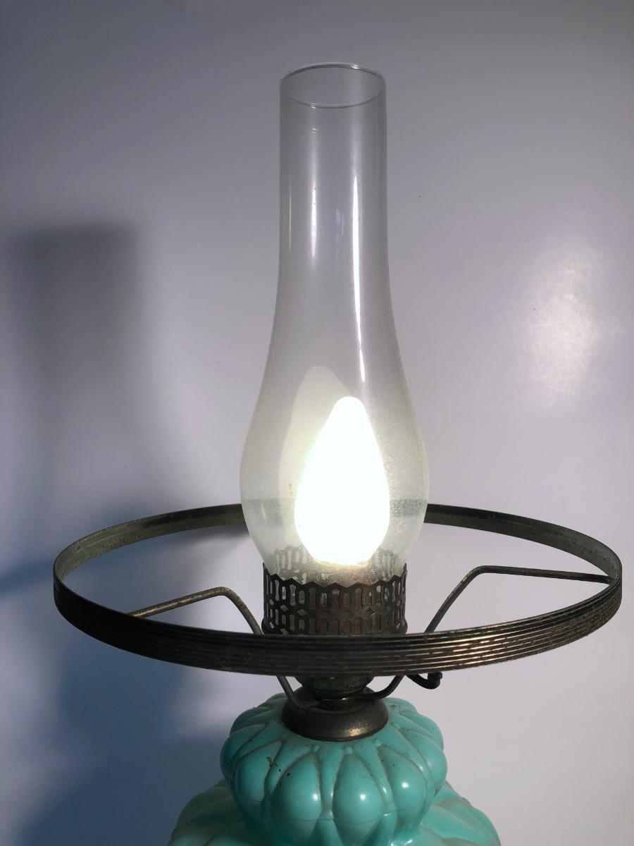 LOT 247U: Vintage Aqua Milk Glass Electric Hurricane Lamp (Works)
