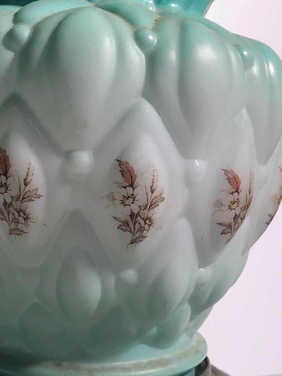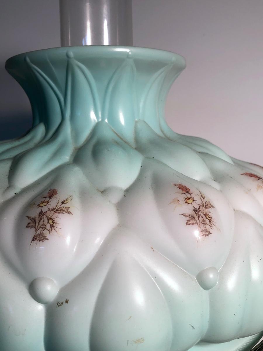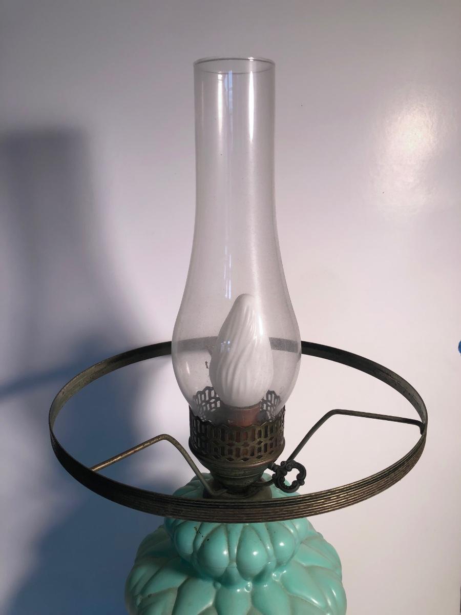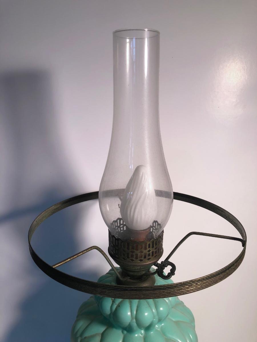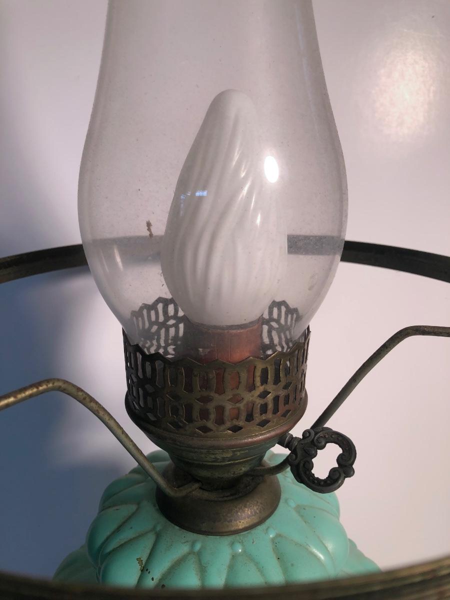 LOT 247U: Vintage Aqua Milk Glass Electric Hurricane Lamp (Works)