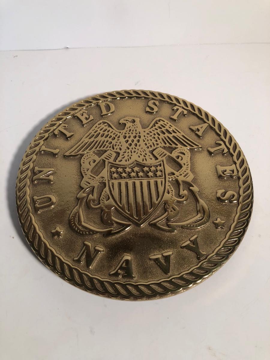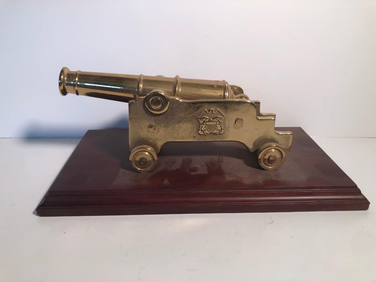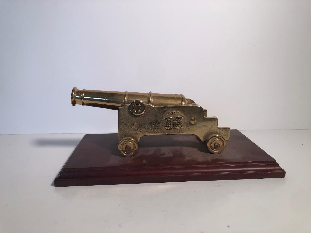 LOT 251U: US Navy Collection - Mid-20th Century Brass Canon, Flag, Trivet & Eagle Statue