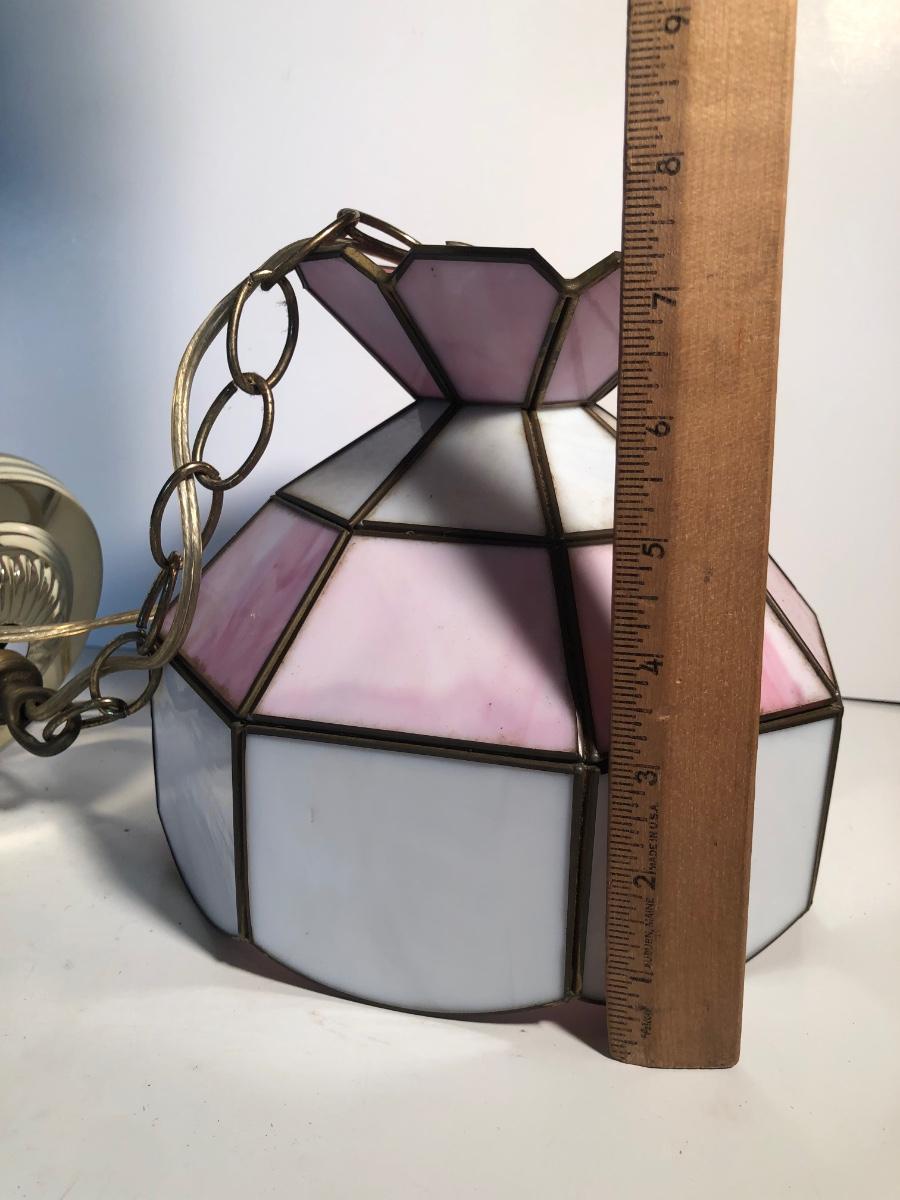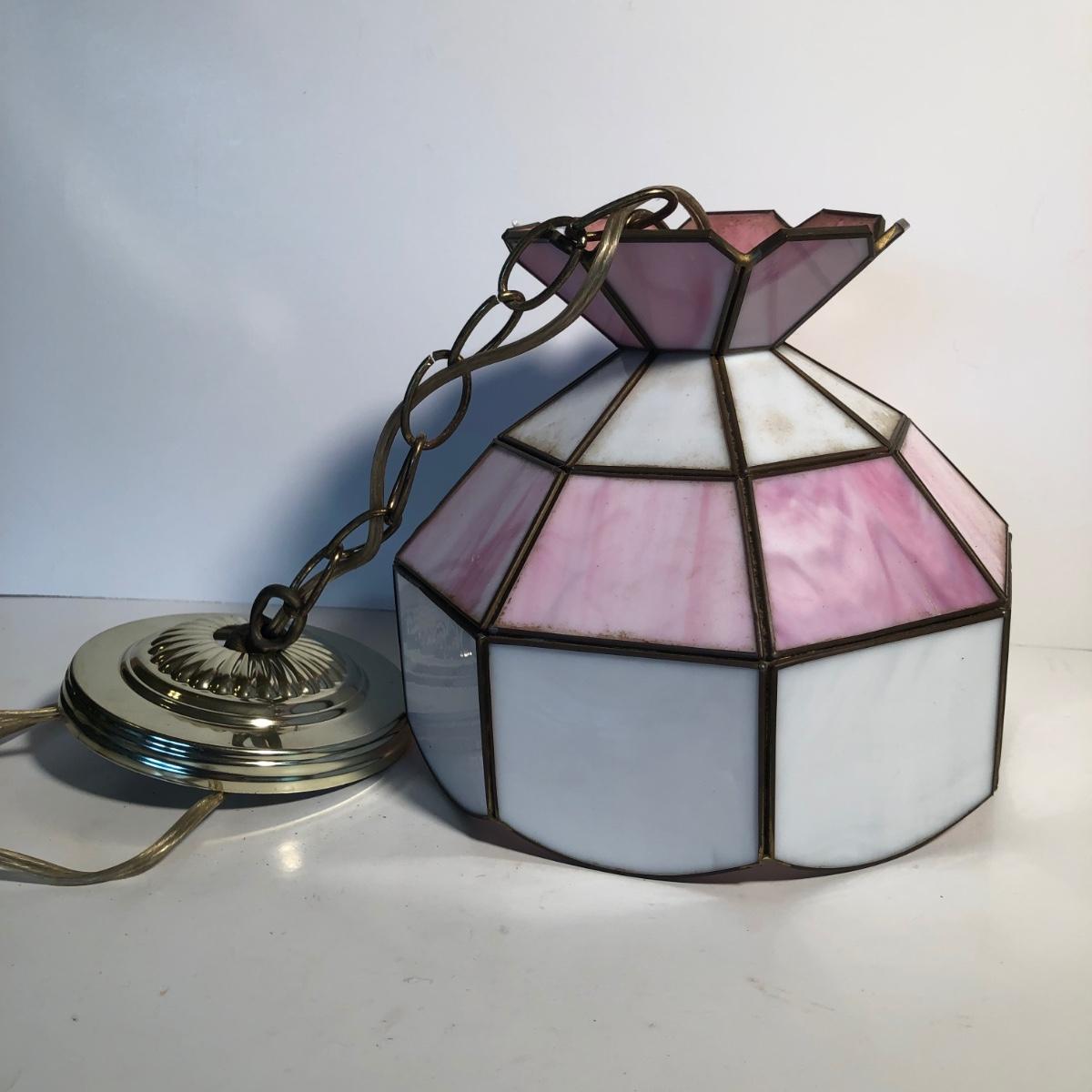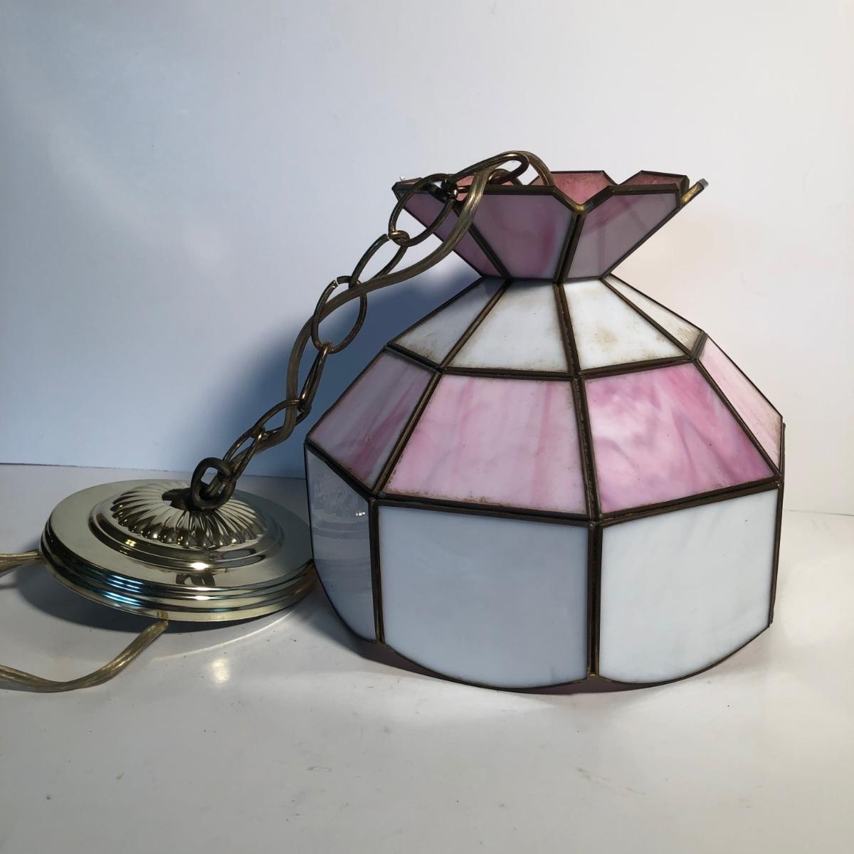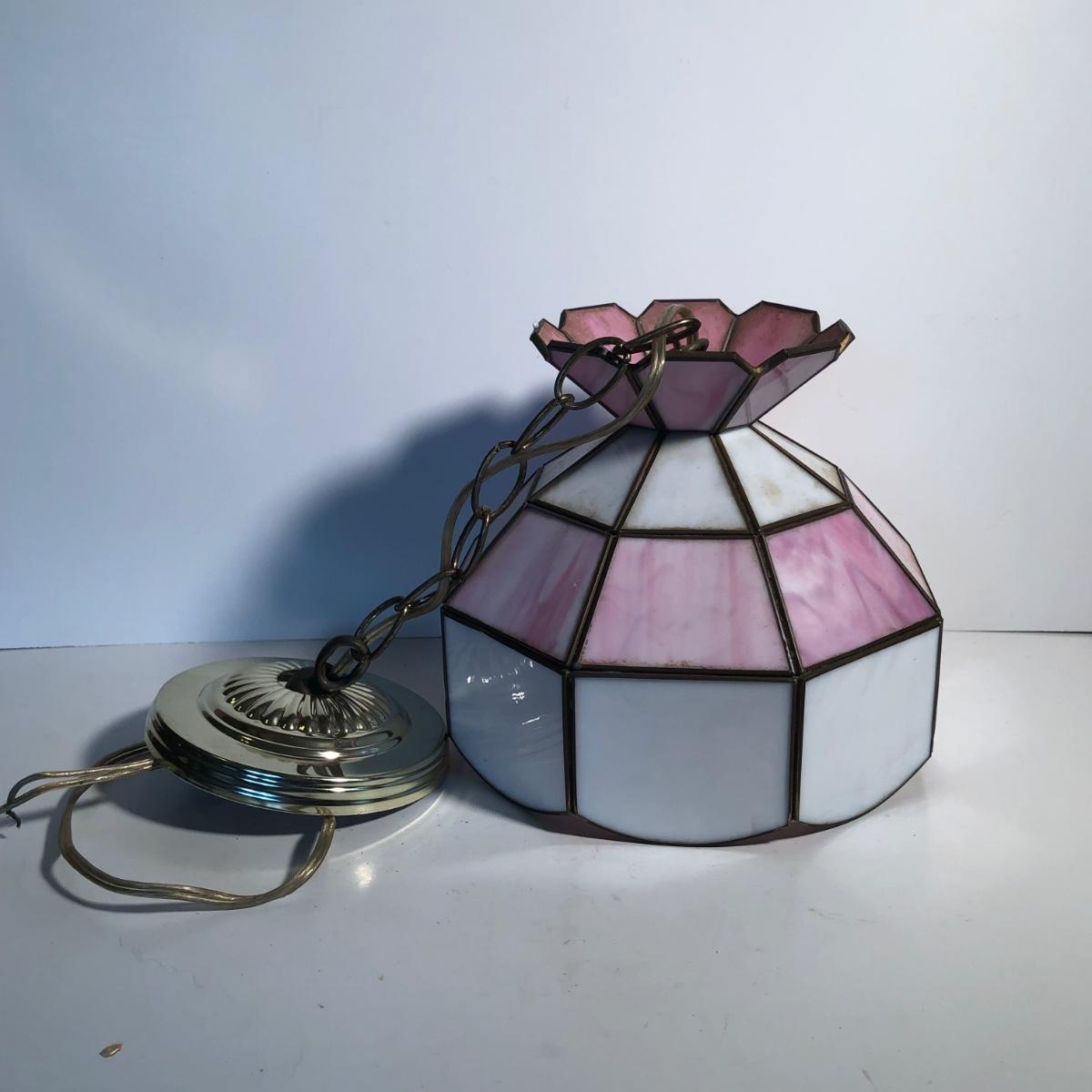 LOT 259U: Vintage Tiffany Style Pink Glass Hanging Lamp