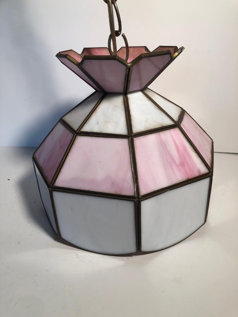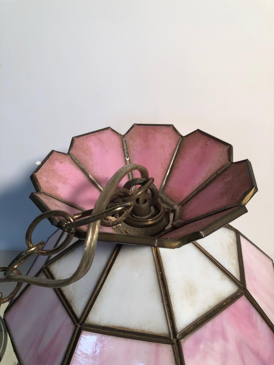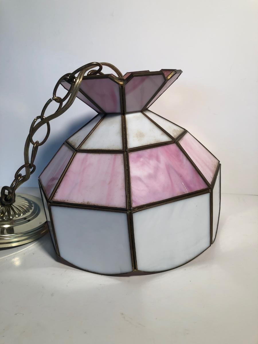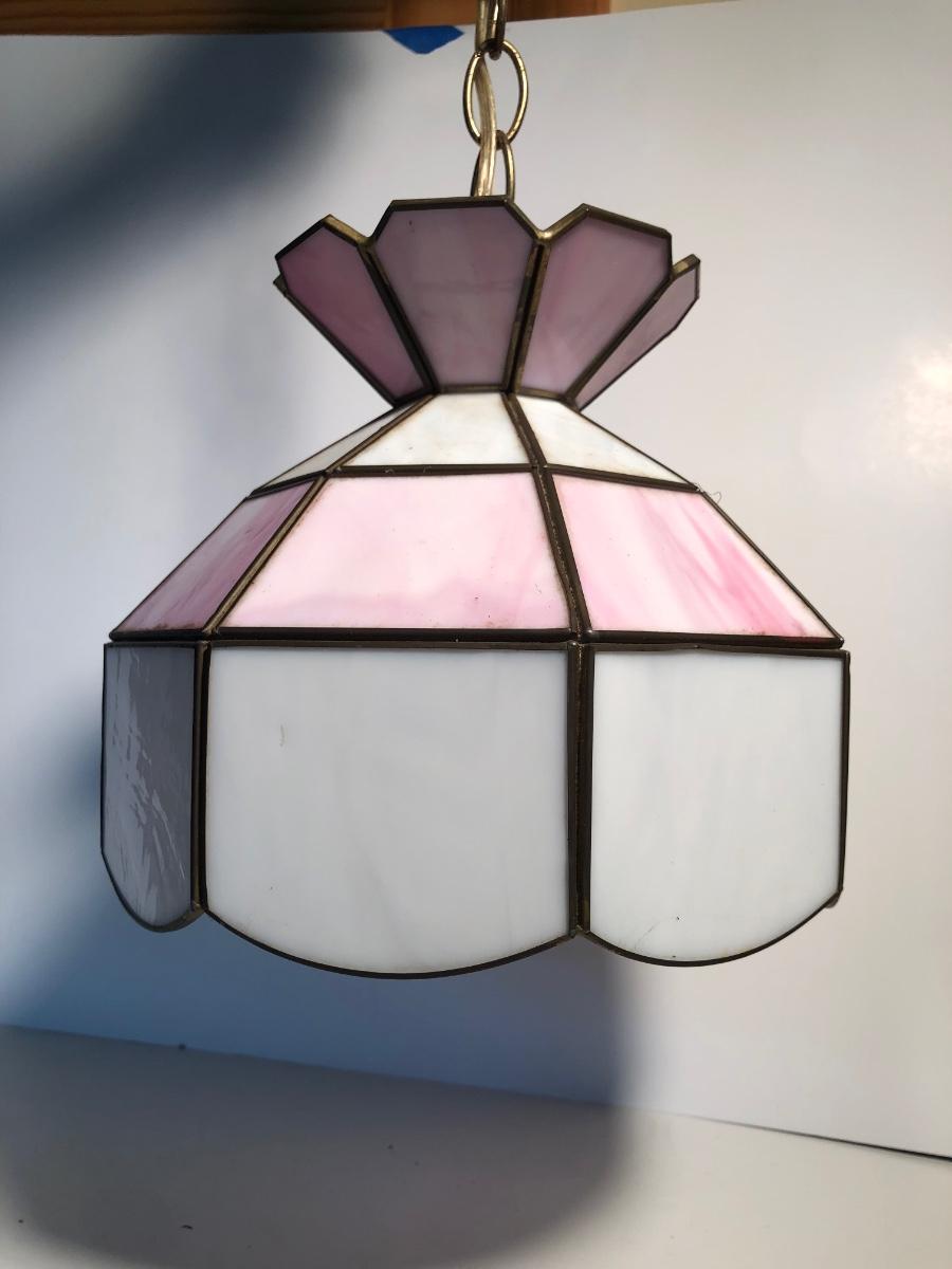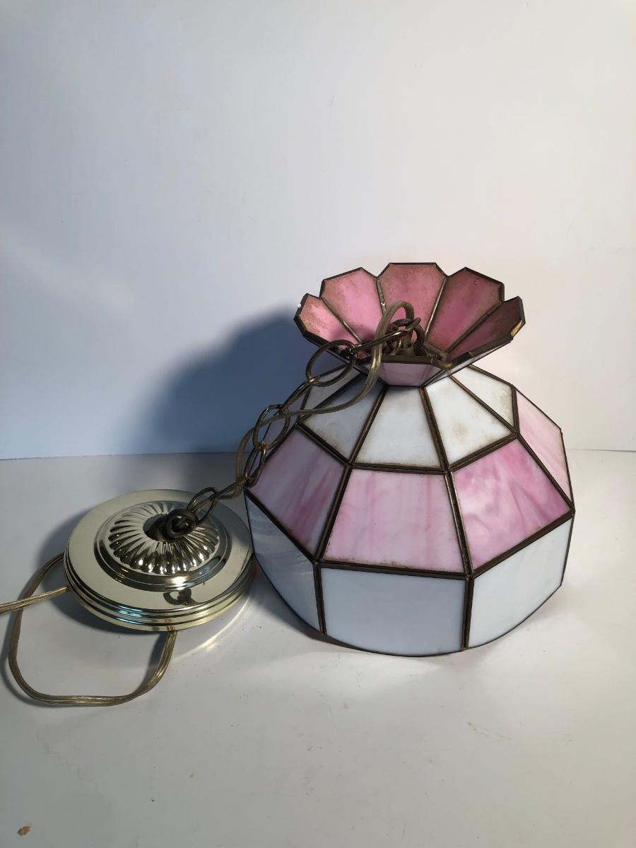 LOT 259U: Vintage Tiffany Style Pink Glass Hanging Lamp