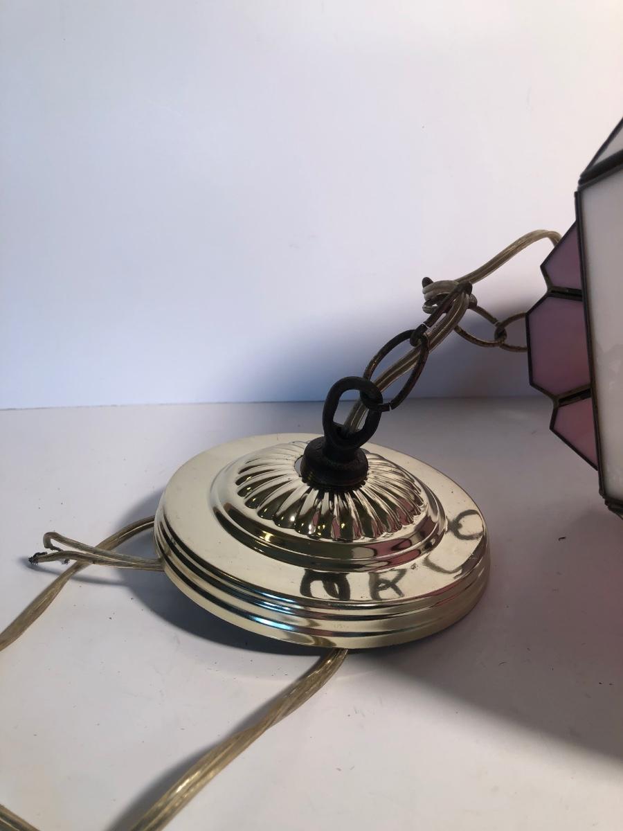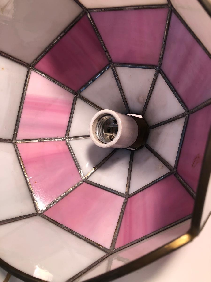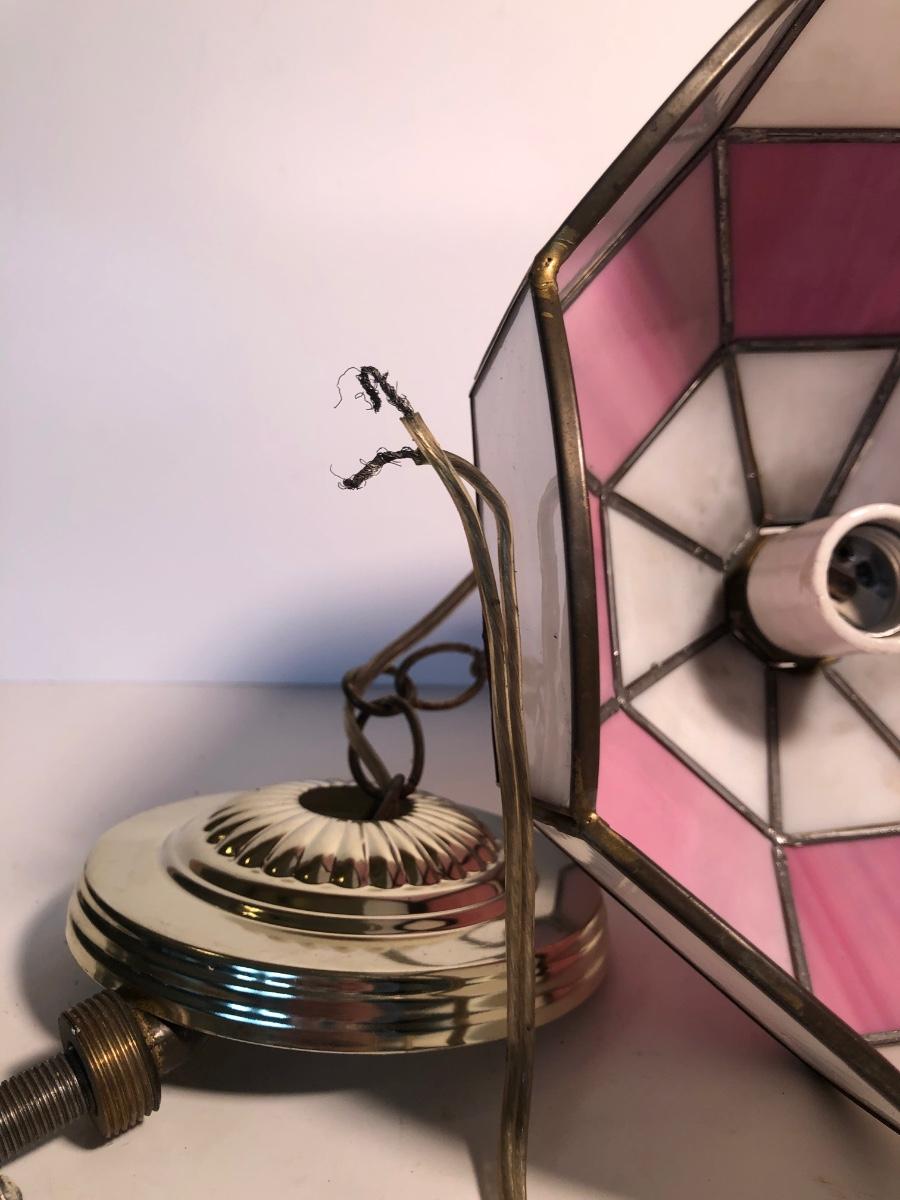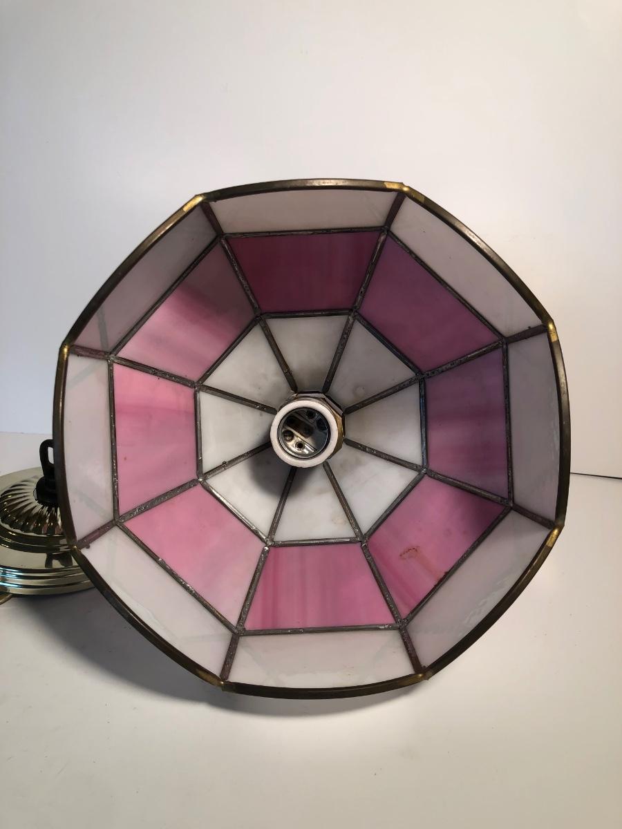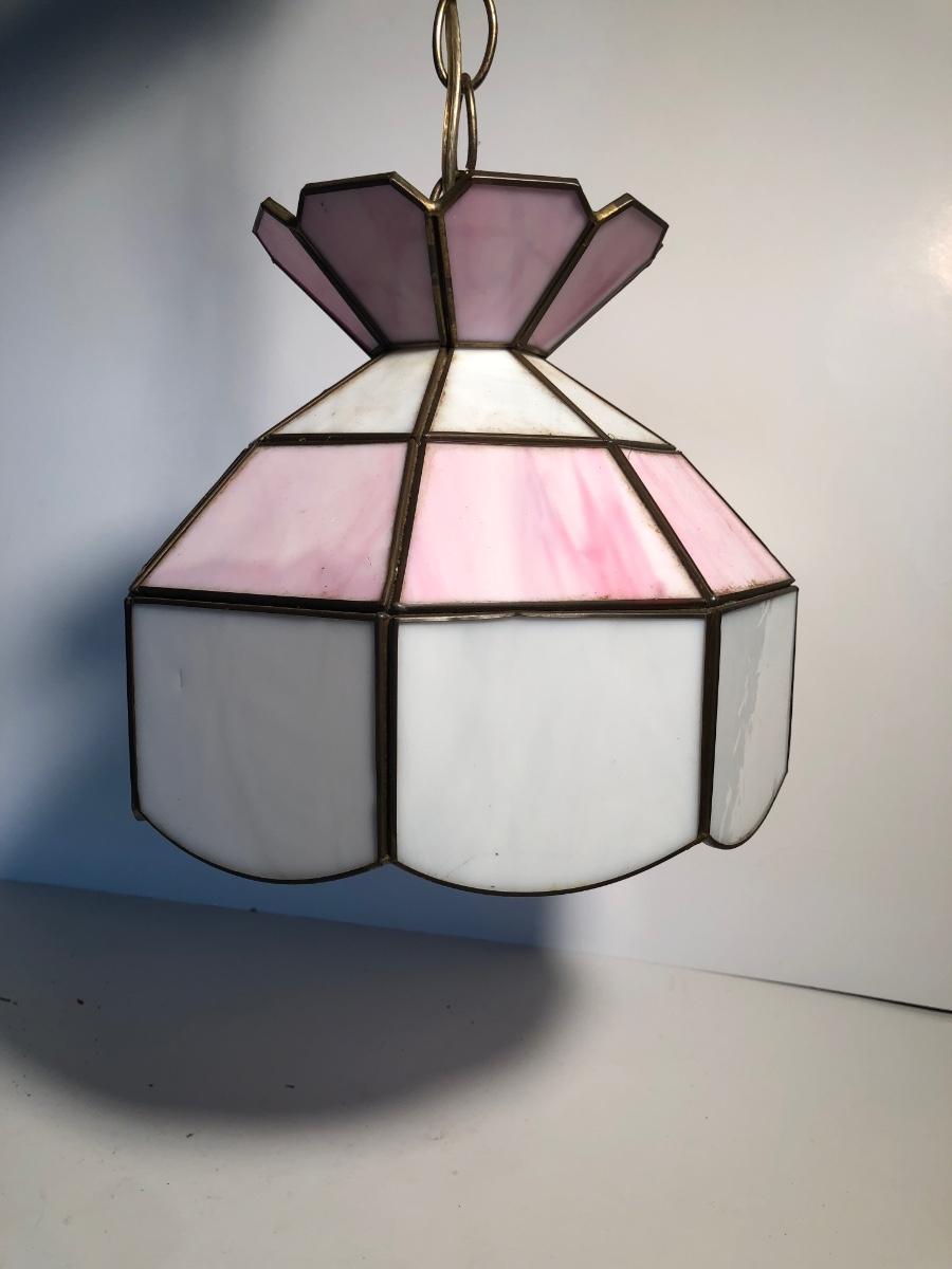LOT 259U: Vintage Tiffany Style Pink Glass Hanging Lamp