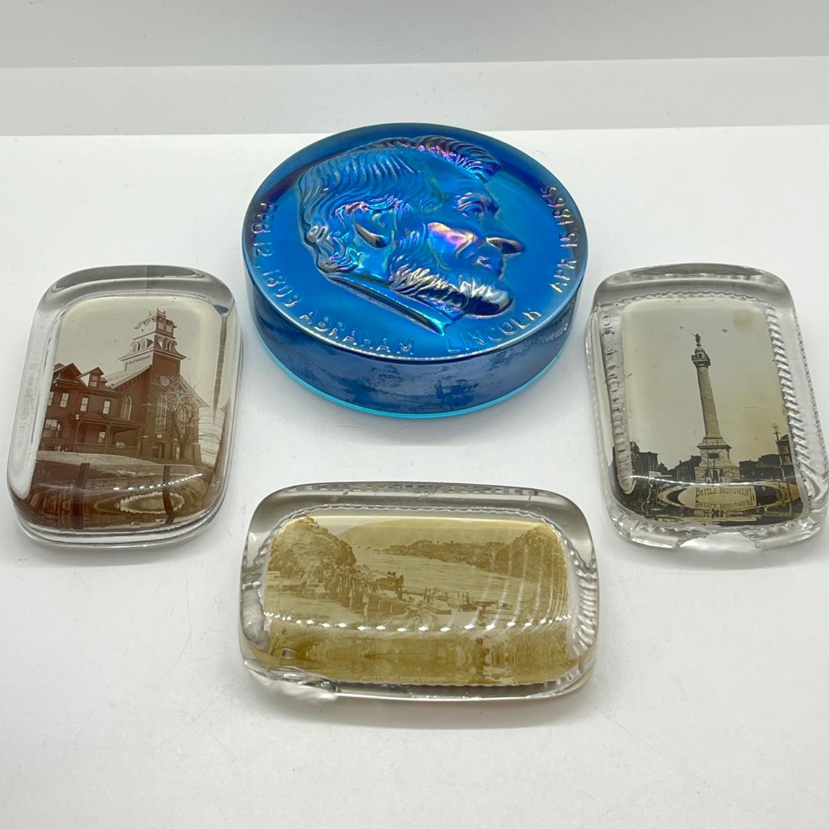 LOT 262K: Vintage / Antique Souvenir Paperweights - Lincoln, Trenton Battle Monument & More