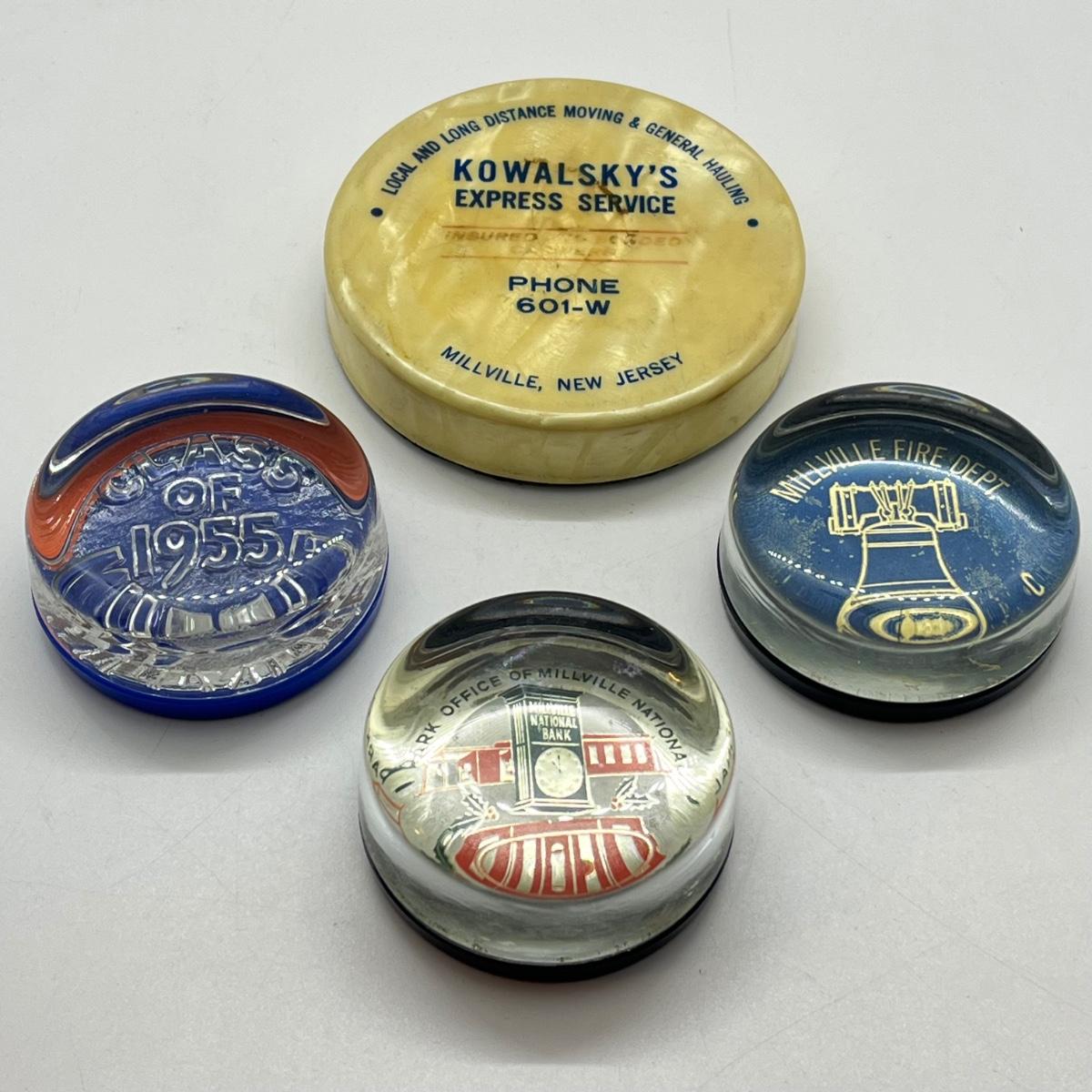 LOT 264K: Vintage Millville Local Interest Paperweights