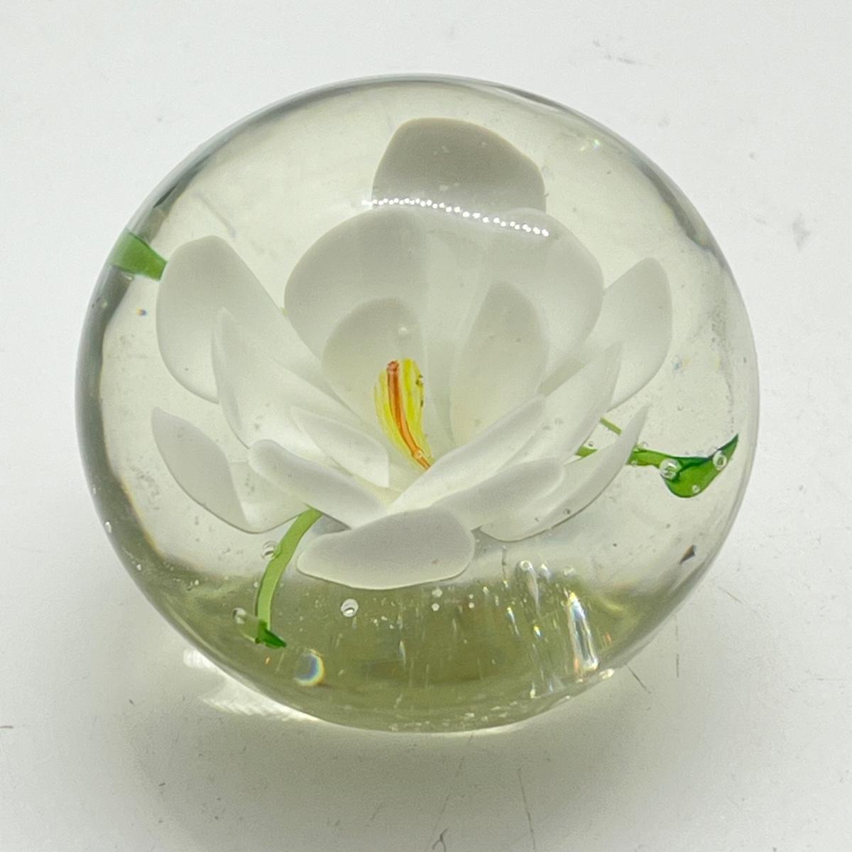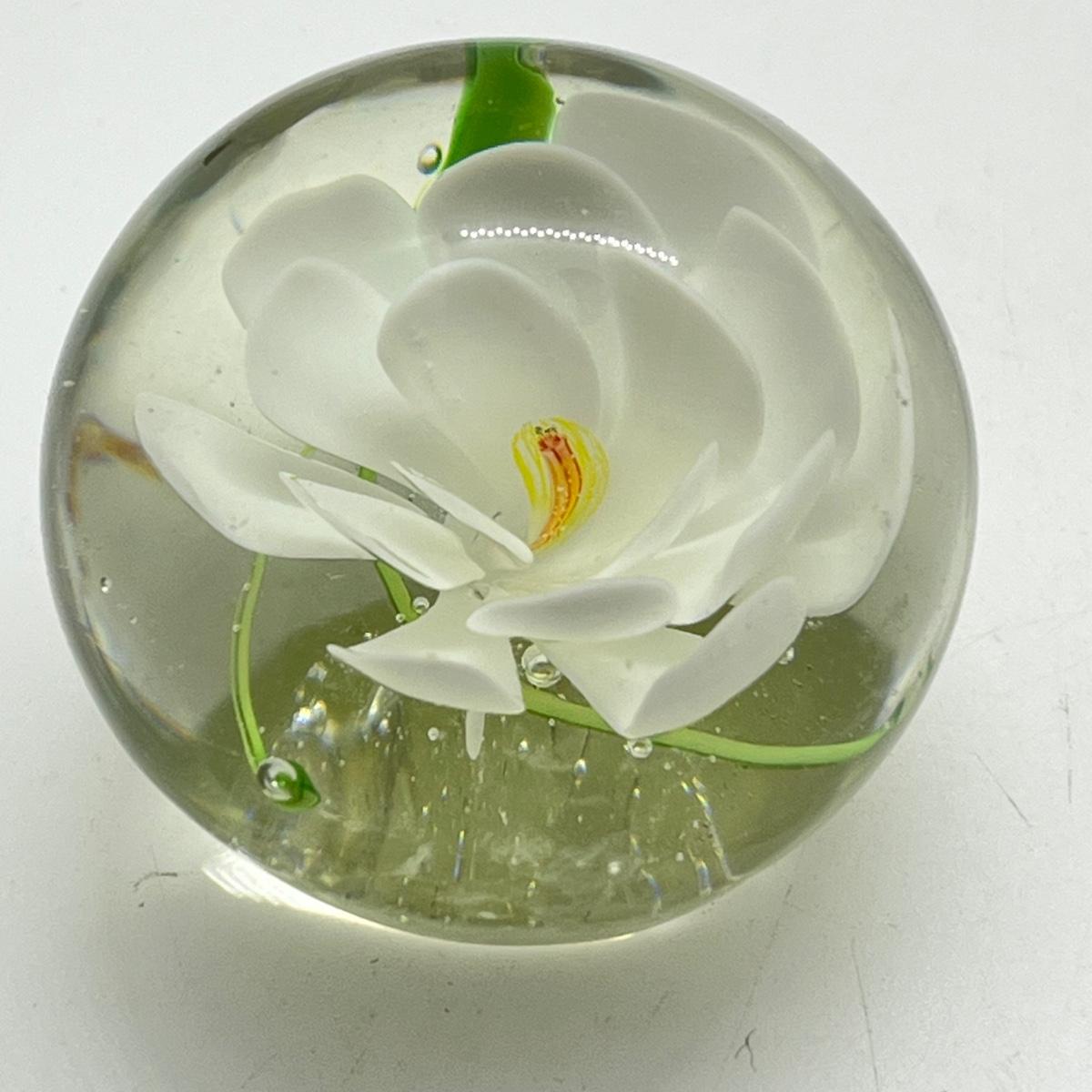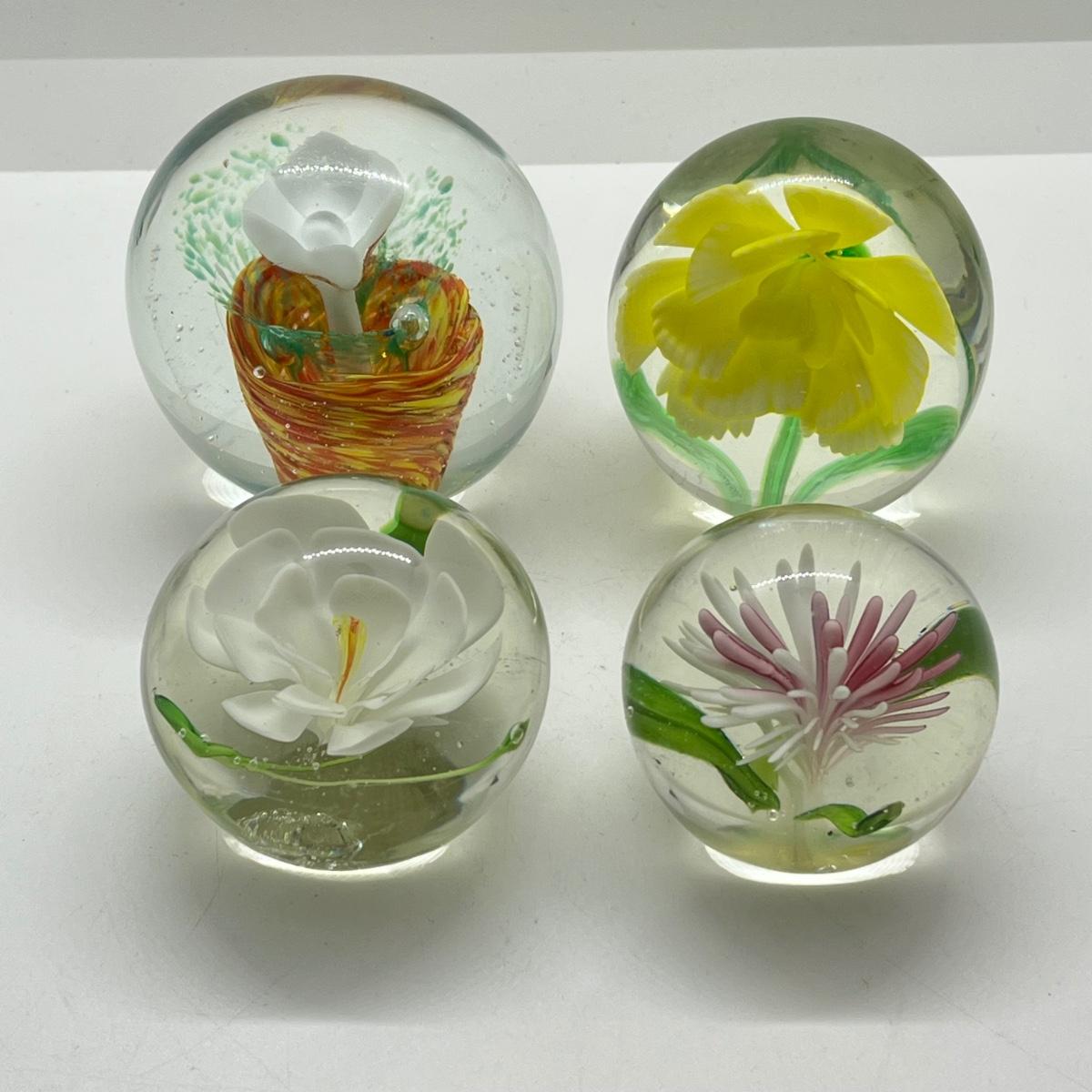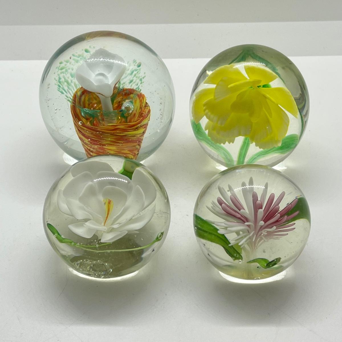 LOT 273K: Flower Themed Handblown Glass Paperweights