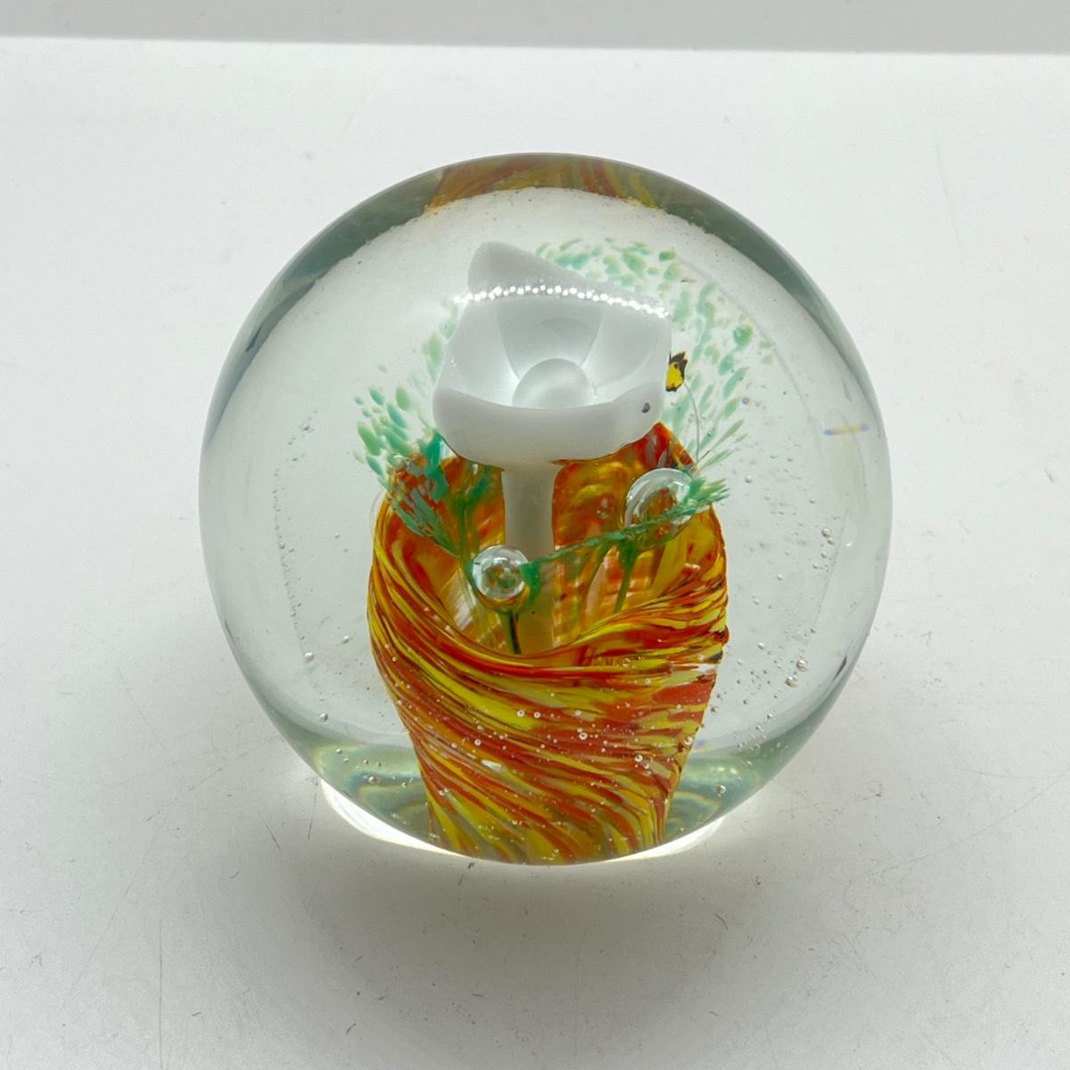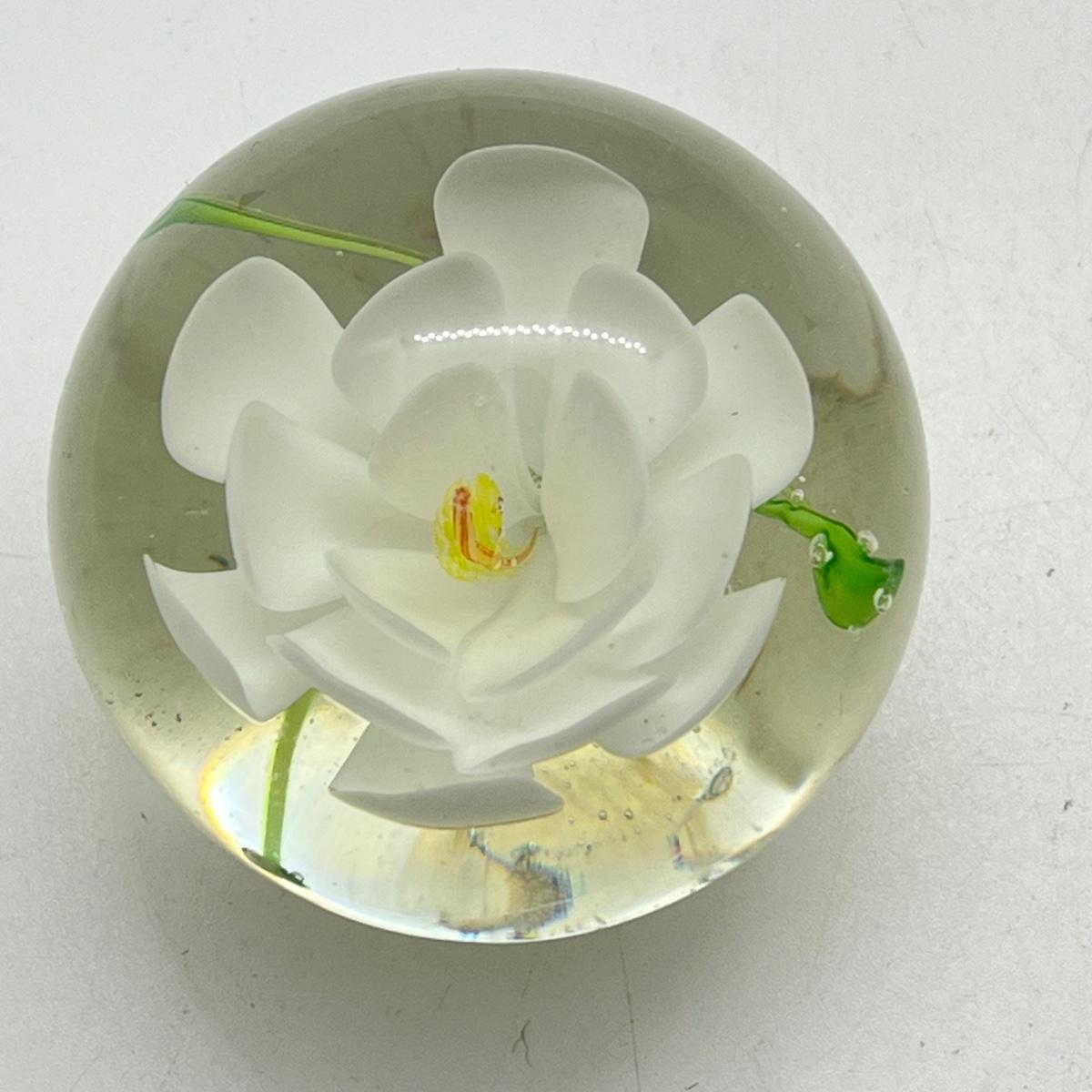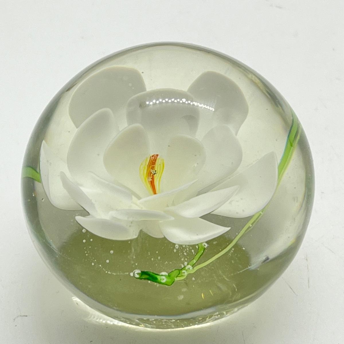 LOT 273K: Flower Themed Handblown Glass Paperweights