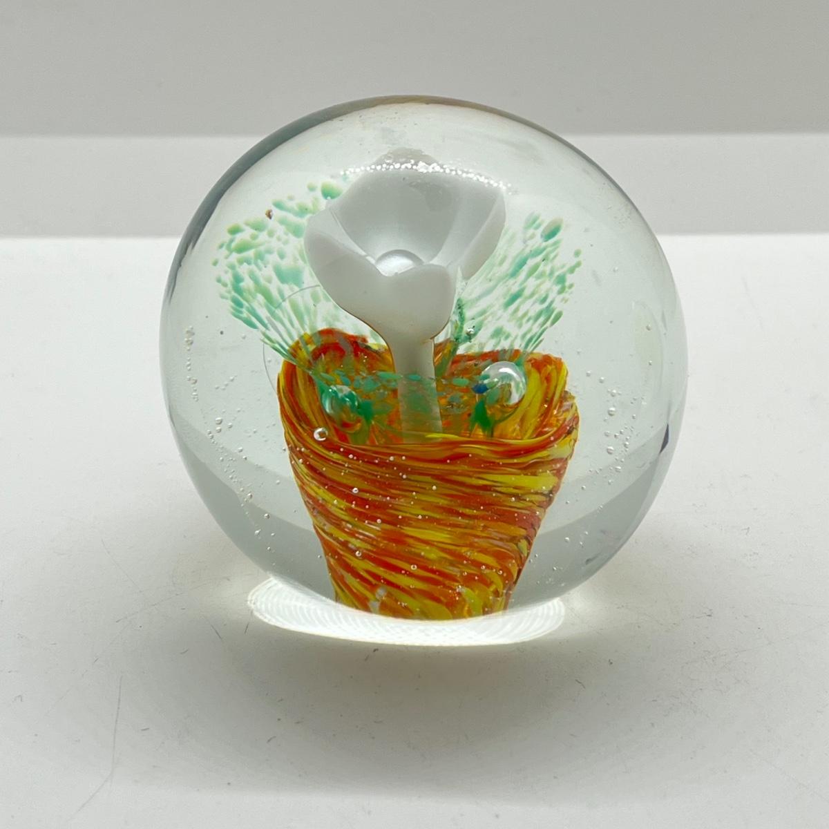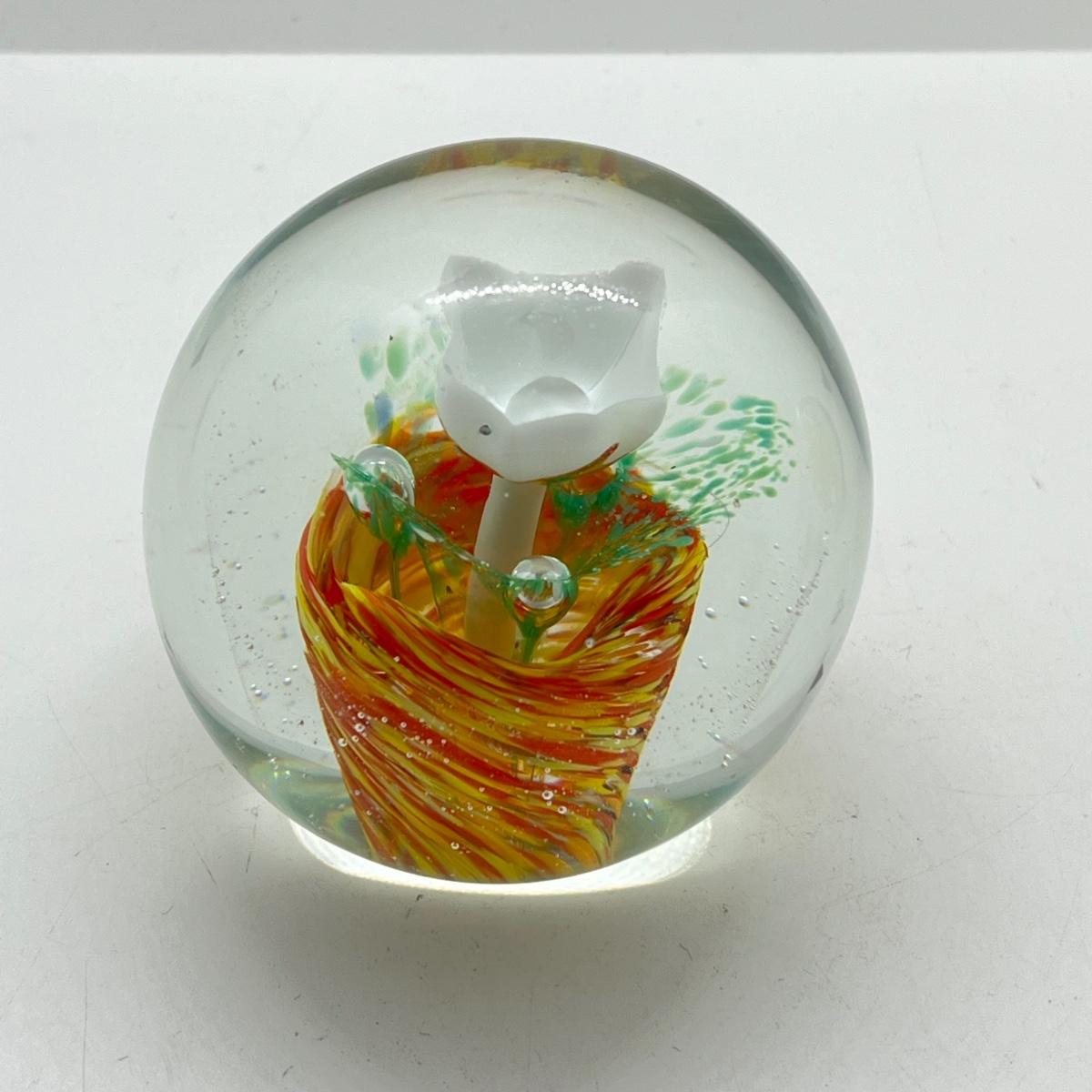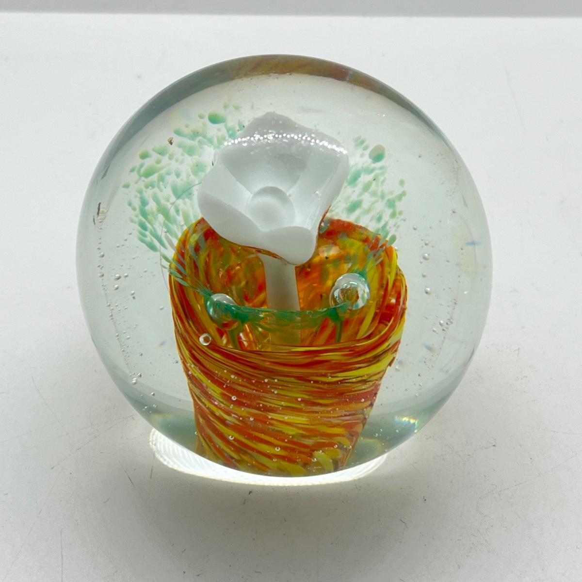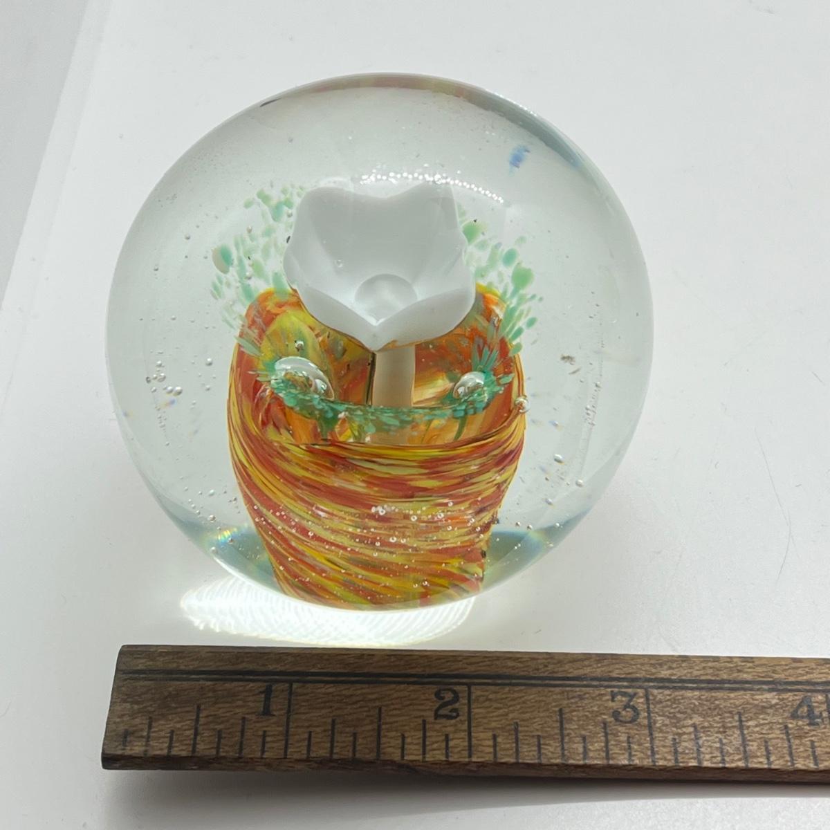 LOT 273K: Flower Themed Handblown Glass Paperweights