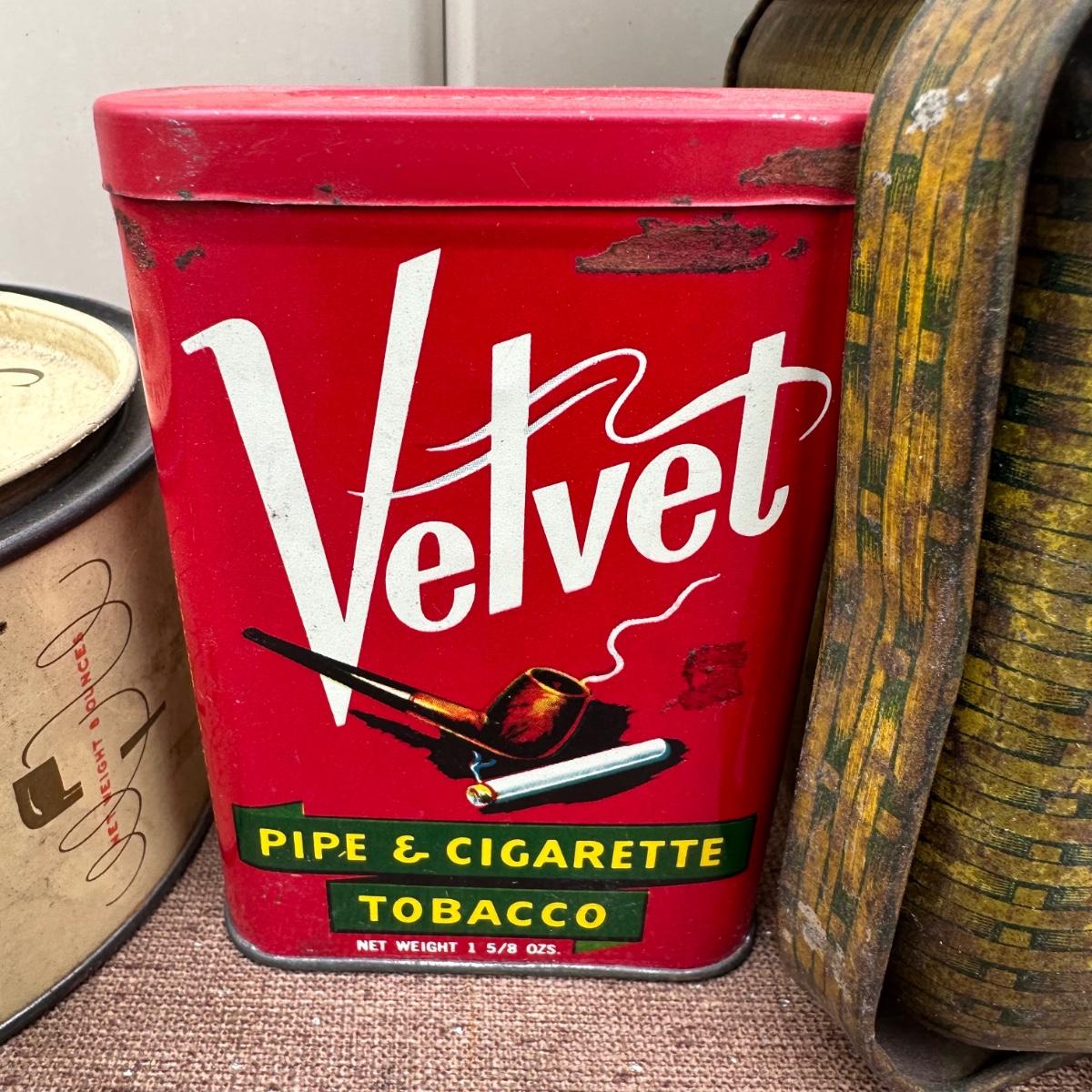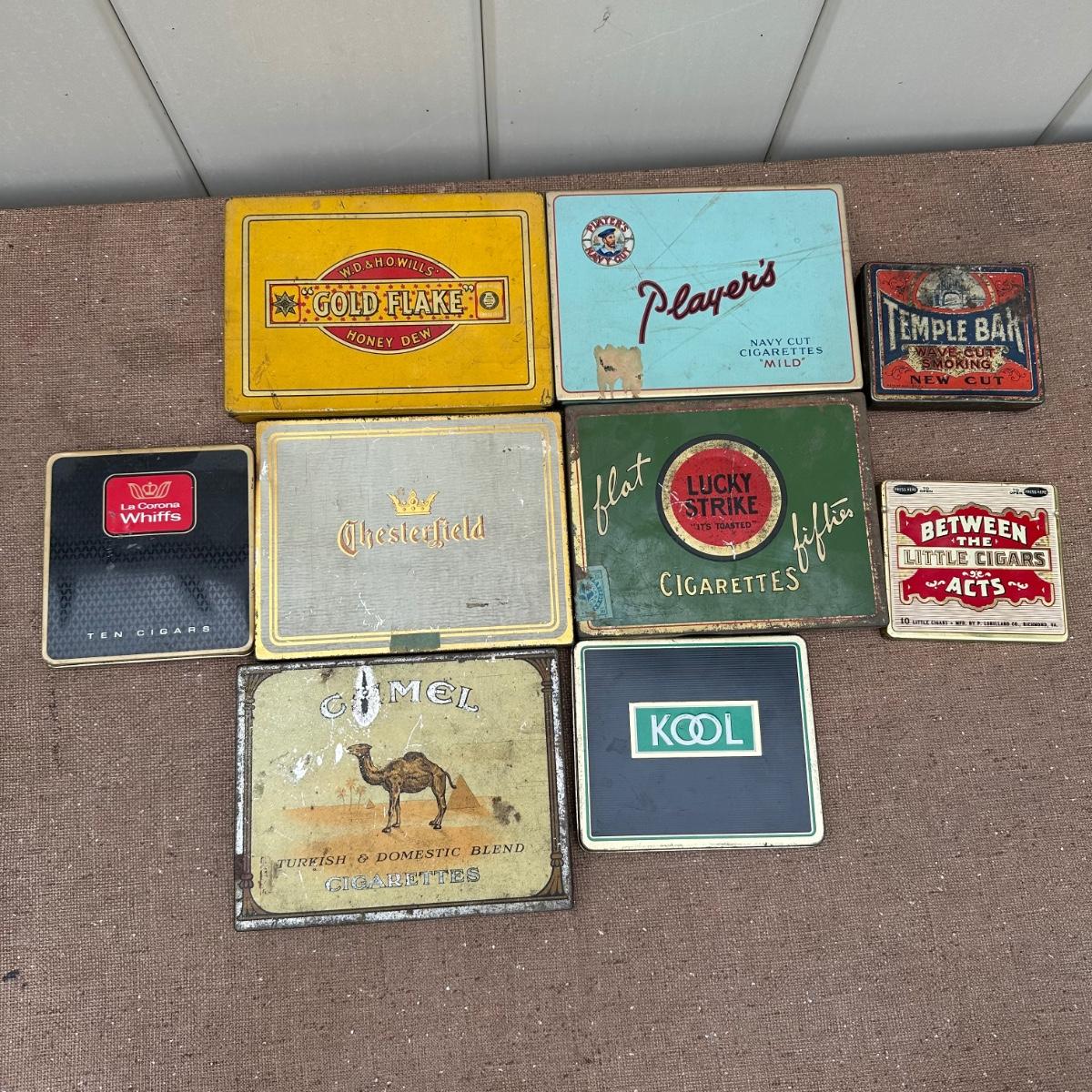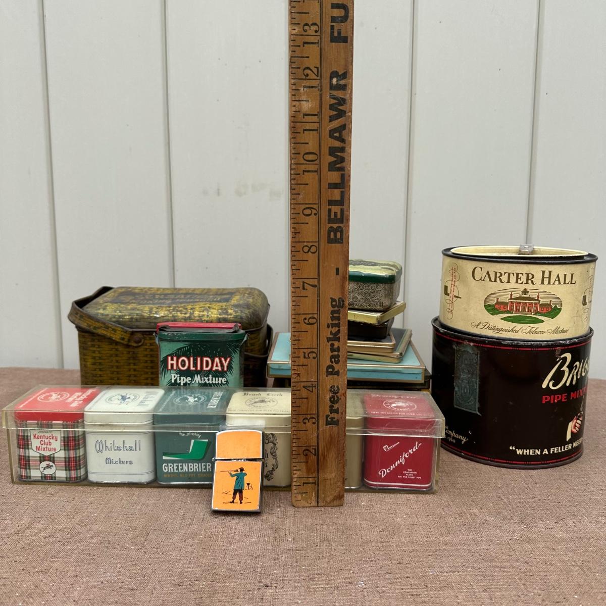 LOT 296B: Vintage Tobacco Tins w/ Reliance Lighter - Camel, Kool, Velvet & More