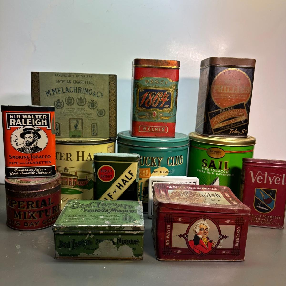 LOT 299B: Vintage Tobacco Tins/Containers - Velvet, Sail, Kentucky Club & More