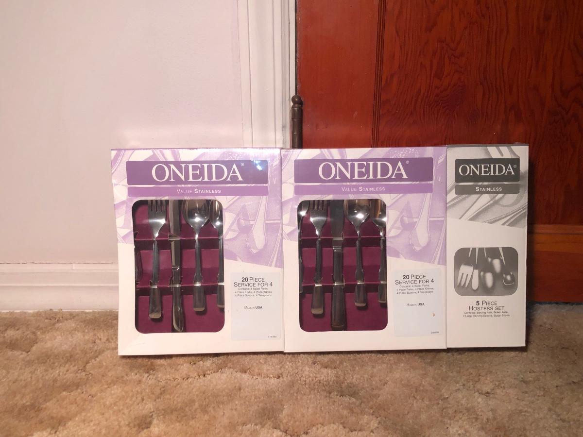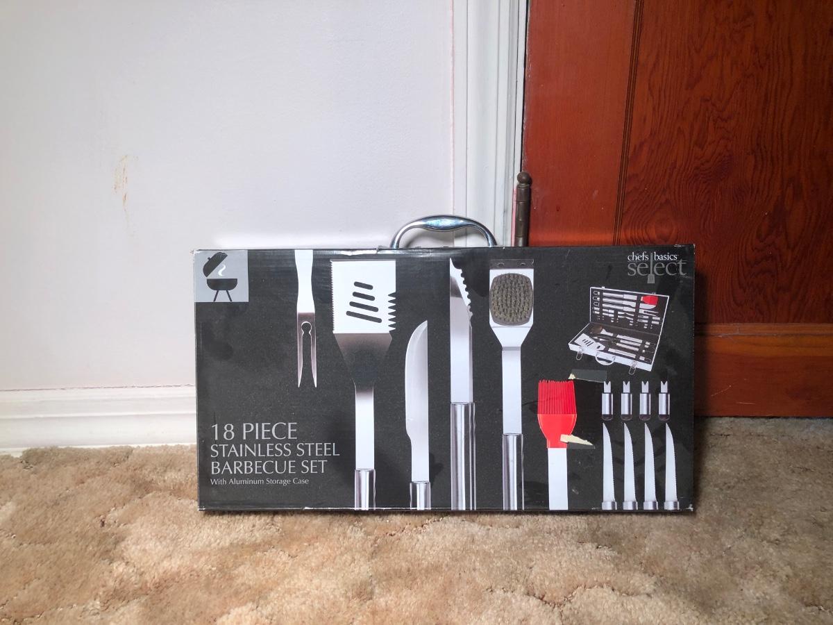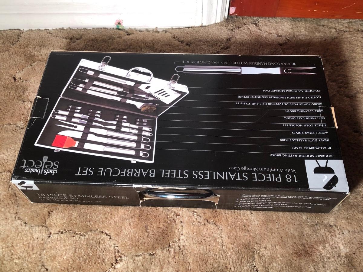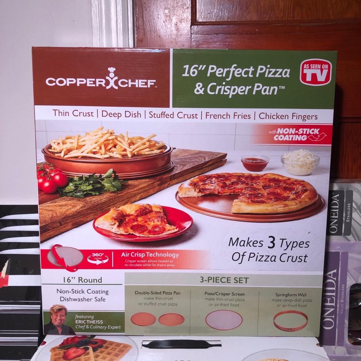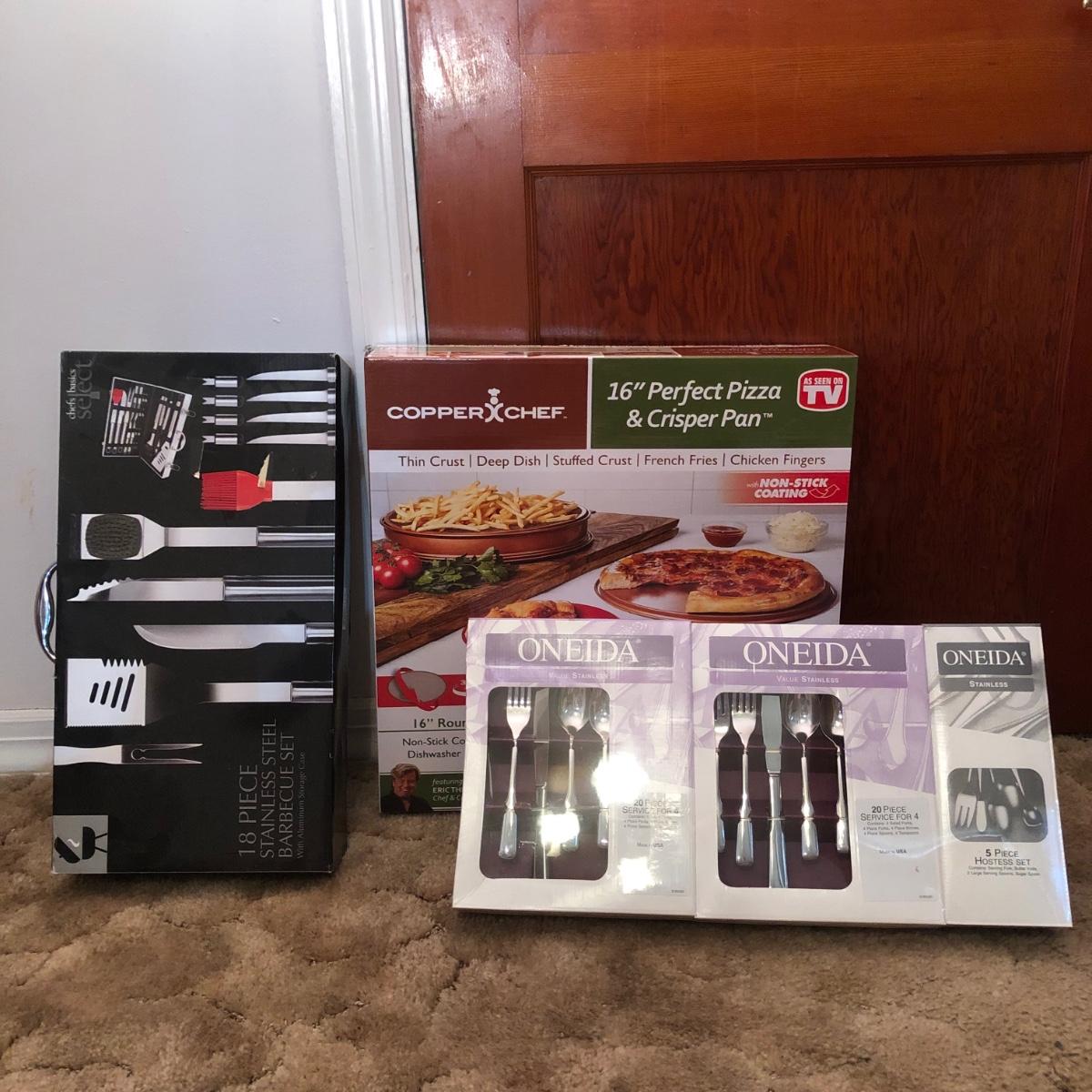 LOT 305U: NIP Kitchen Collection - Copper Chef 16" Pizza / Crisper Pan, 45pc Oneida Flatware Set & Chef Basics Select 18pc Grill Tool Set
