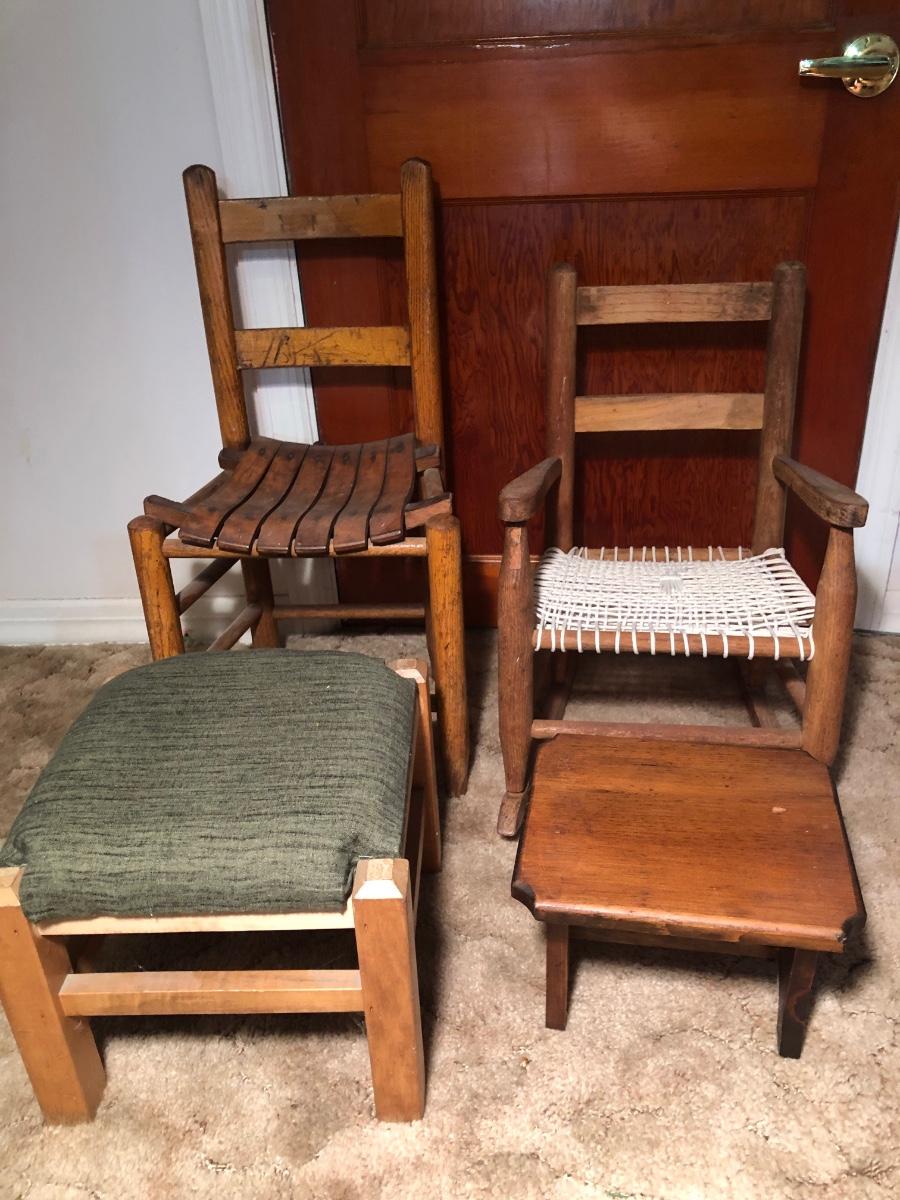 LOT 310U: Vintage Children's Chair, Rocker & Stools