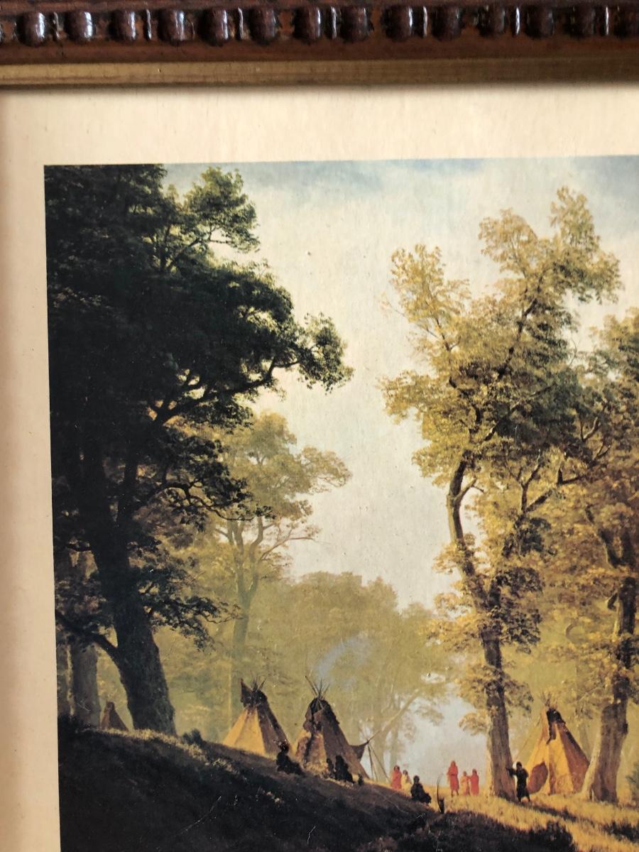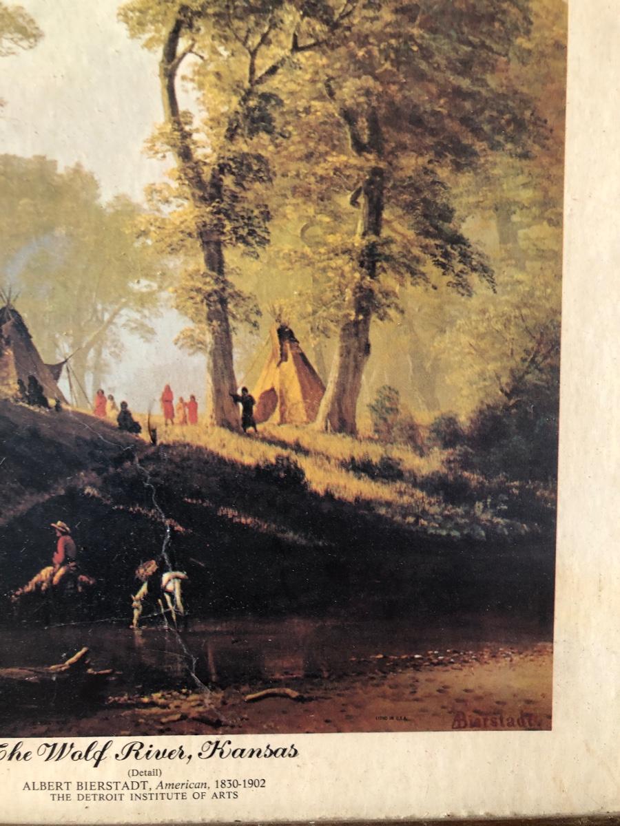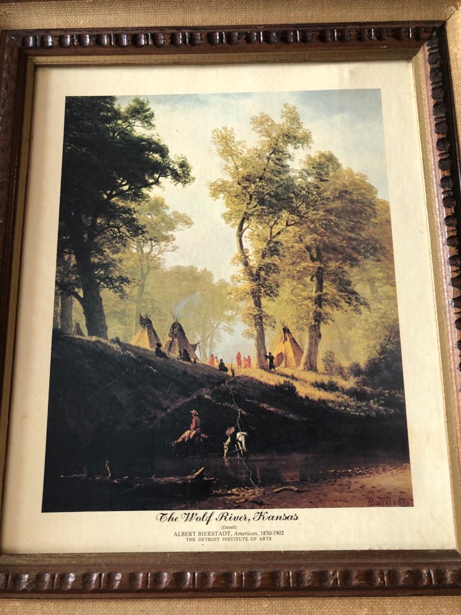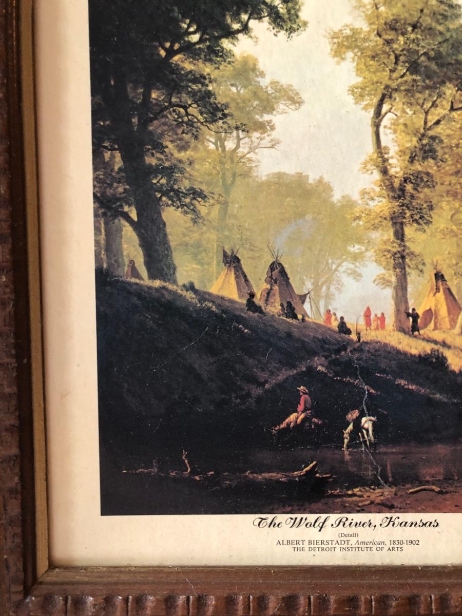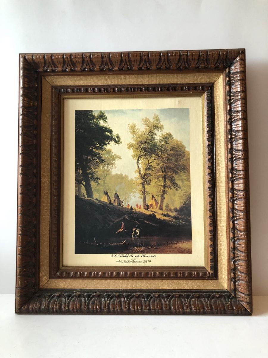 LOT 315U: Carved Wooden Bear w/ Marble Eyes & Framed Albert Bierstadt (American, 1830-1902) The Wolf River Print