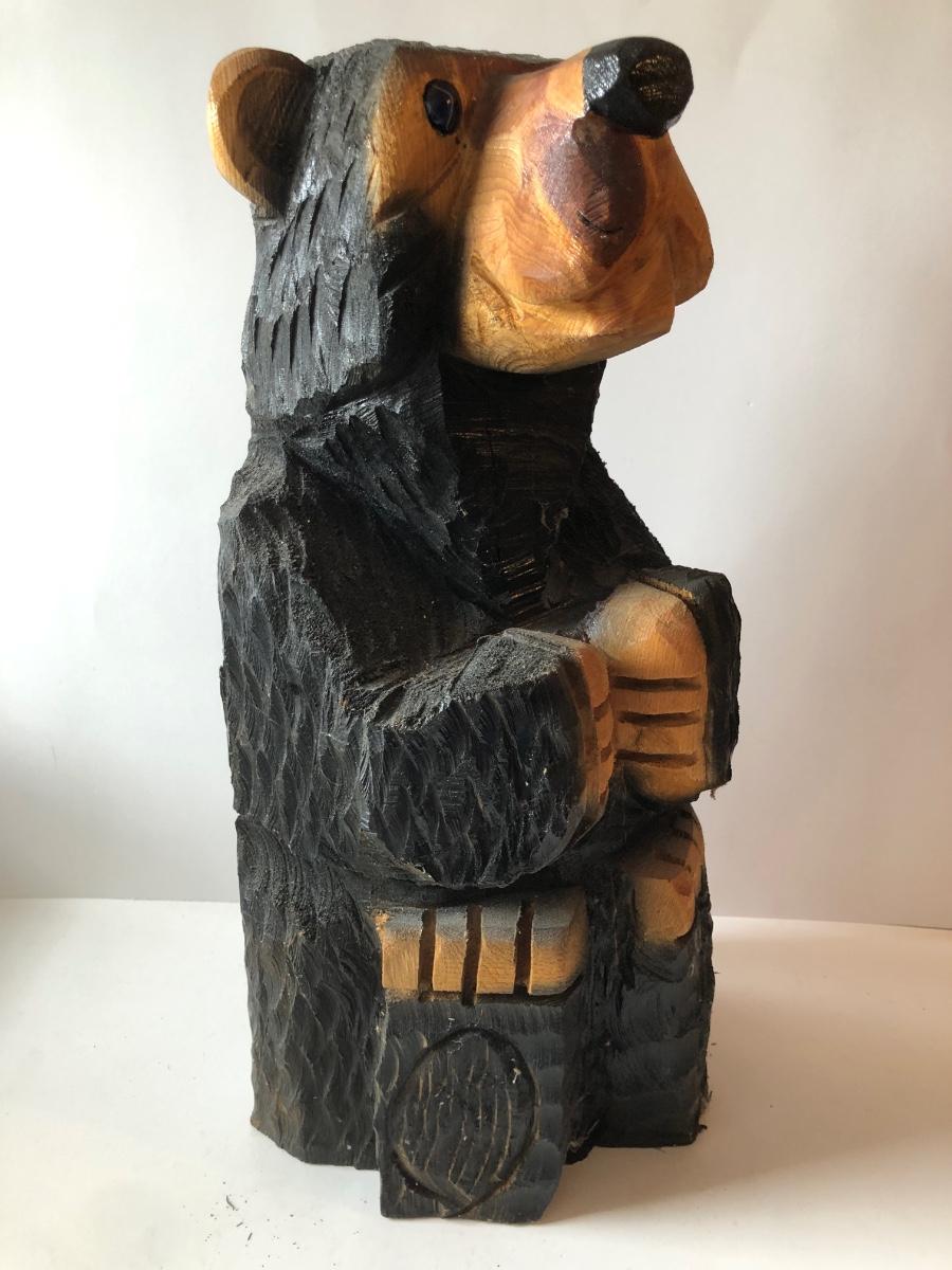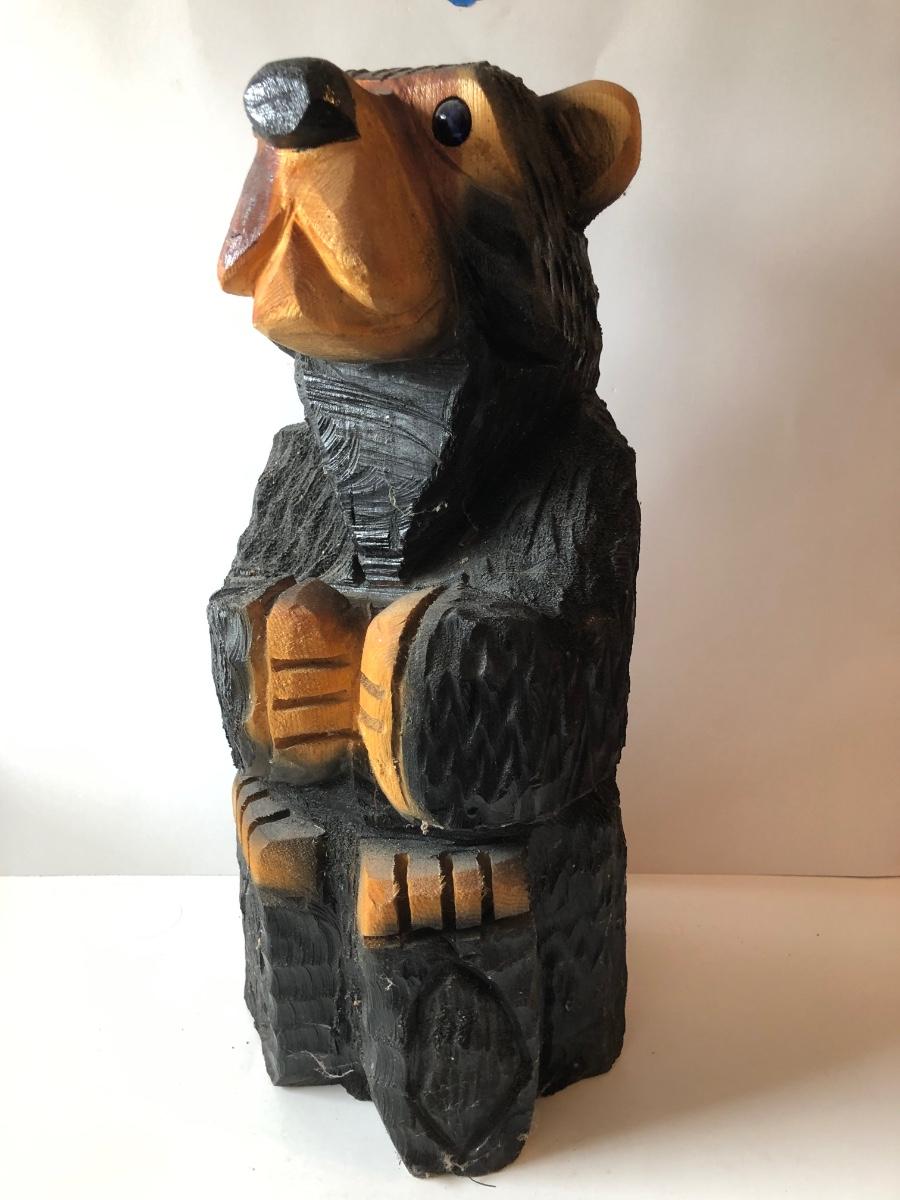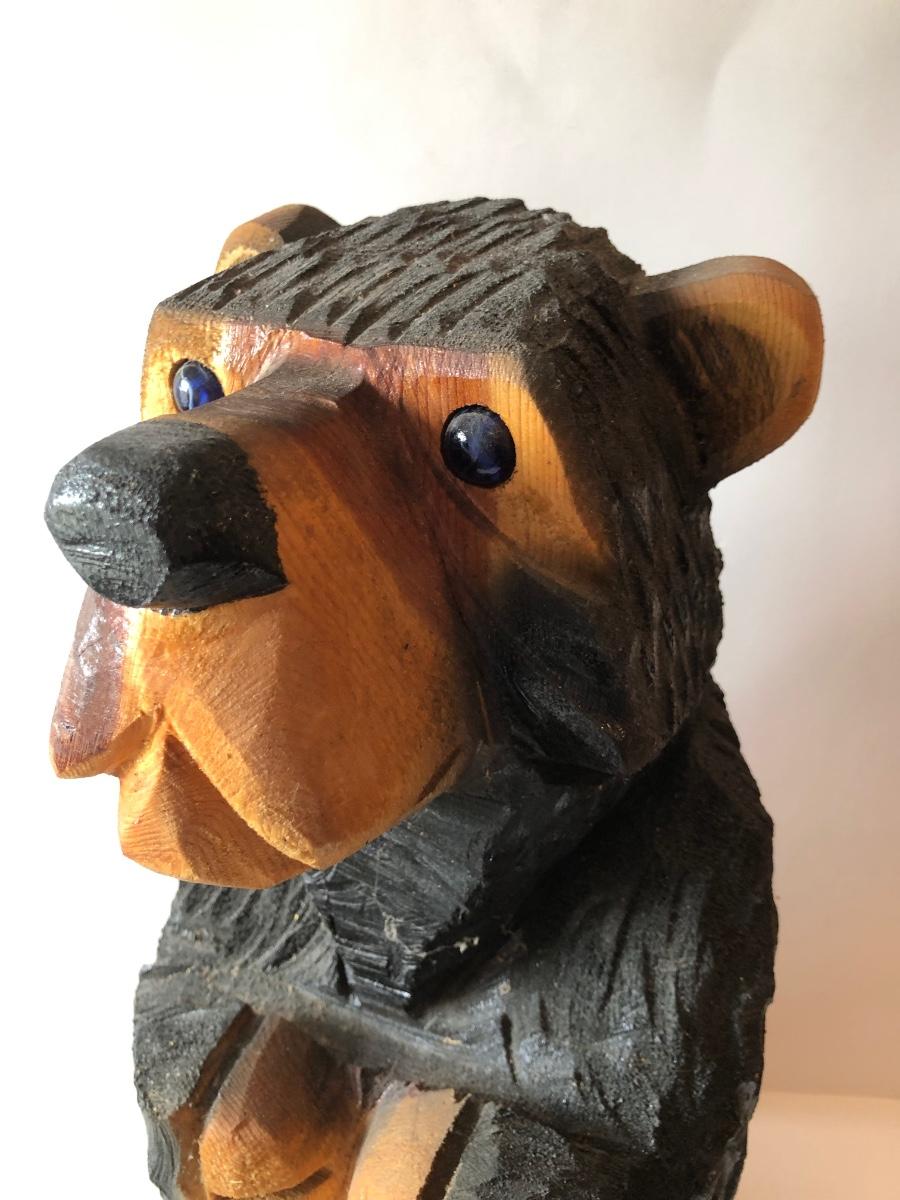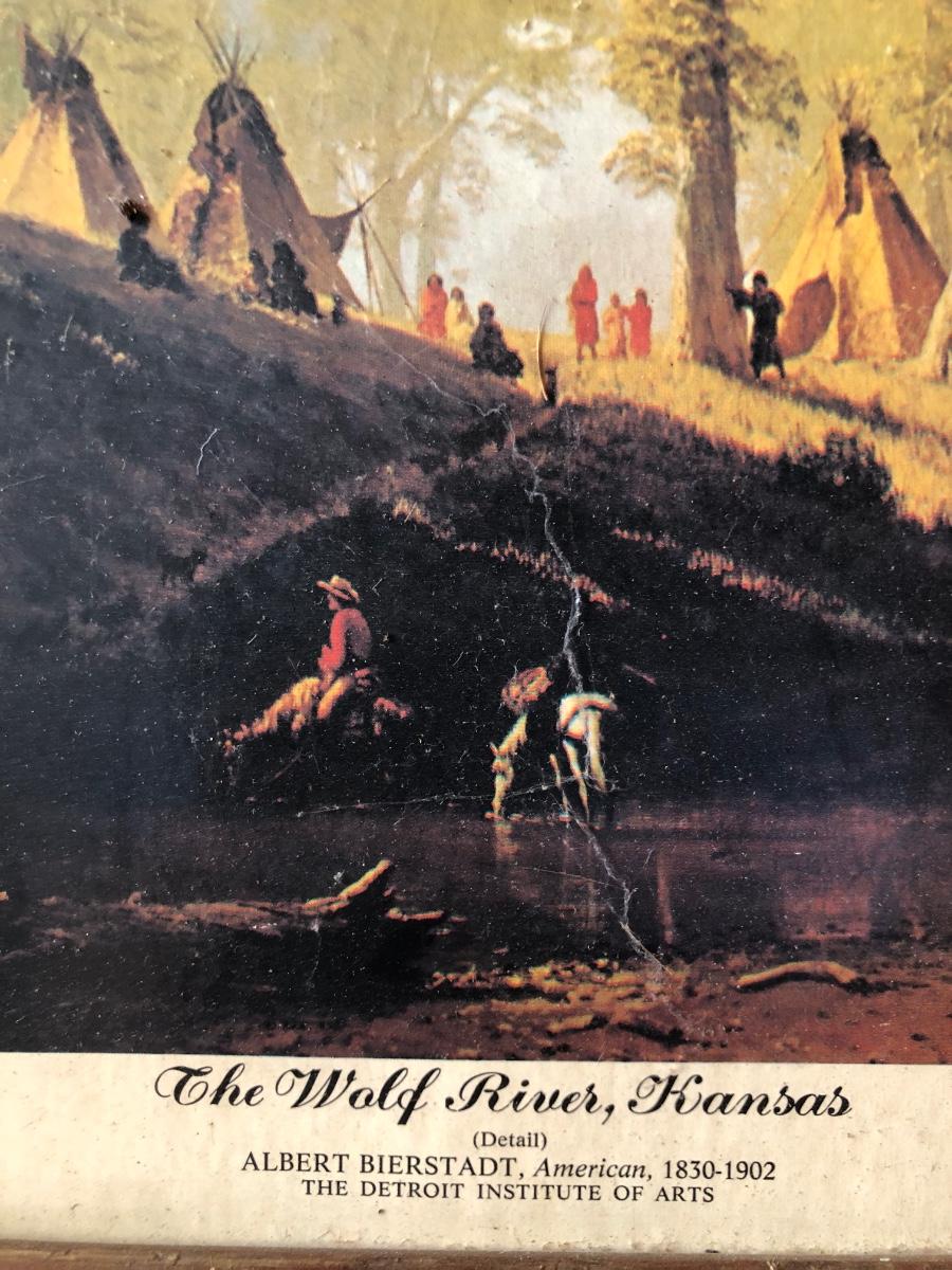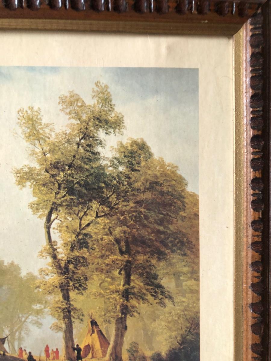 LOT 315U: Carved Wooden Bear w/ Marble Eyes & Framed Albert Bierstadt (American, 1830-1902) The Wolf River Print