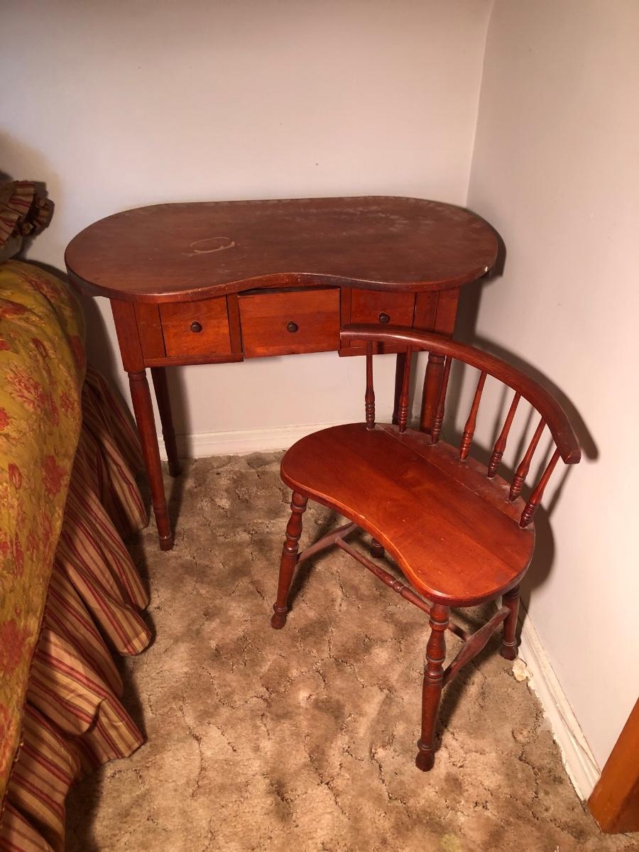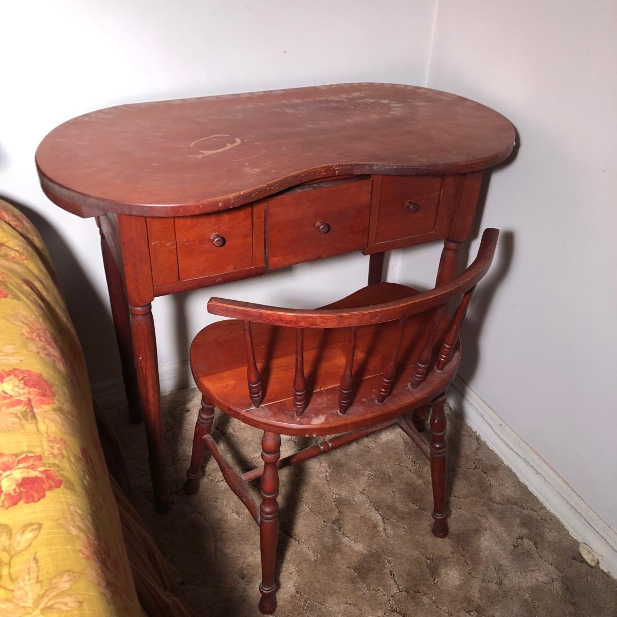 LOT 316U: Antique / Vintage Kidney Shaped Desk & Chair
