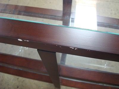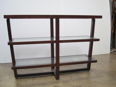 Very nice shelf unit with light scratches to wood. Measures 47 5/8'' wide x 15'' deep x 32 1/2'' tall.