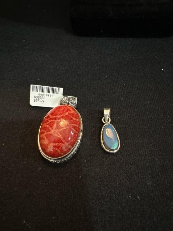 2 marked 925 pendants small blue, red/ orange pendant