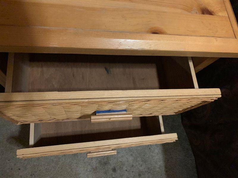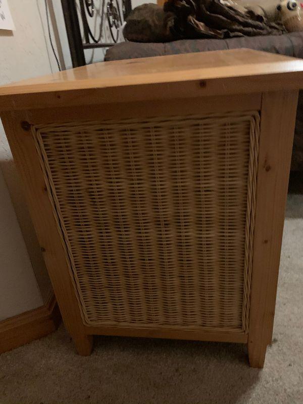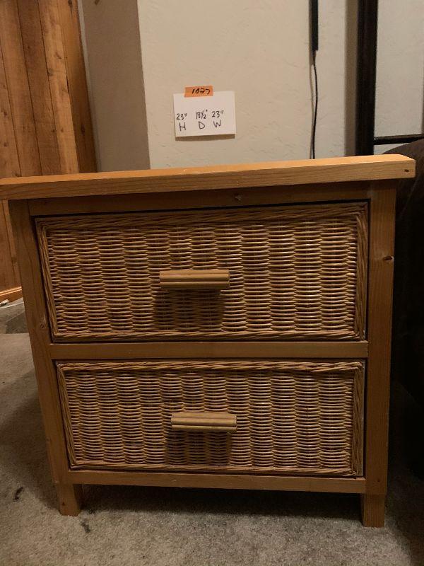 2 Drawer wood and wicker Nightstand matches lot 1028