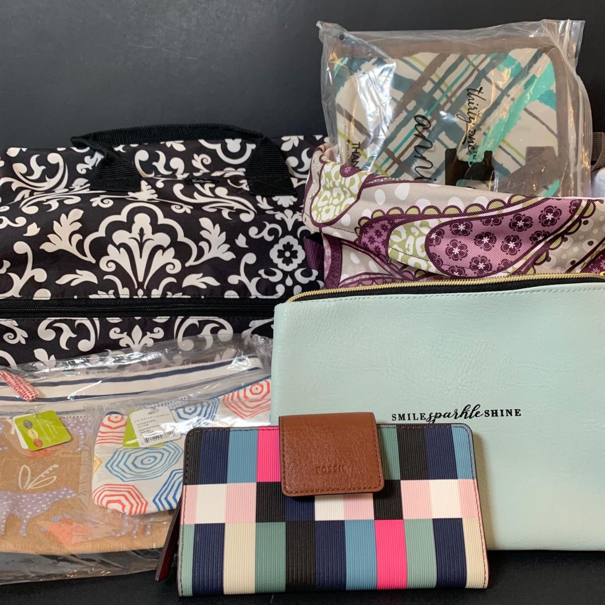 LOT 13: Thirty-One Bags, Fossil Wallet, "Mockingbird" Pouch, Rock Flowers Paper Pouches (new w/tags)