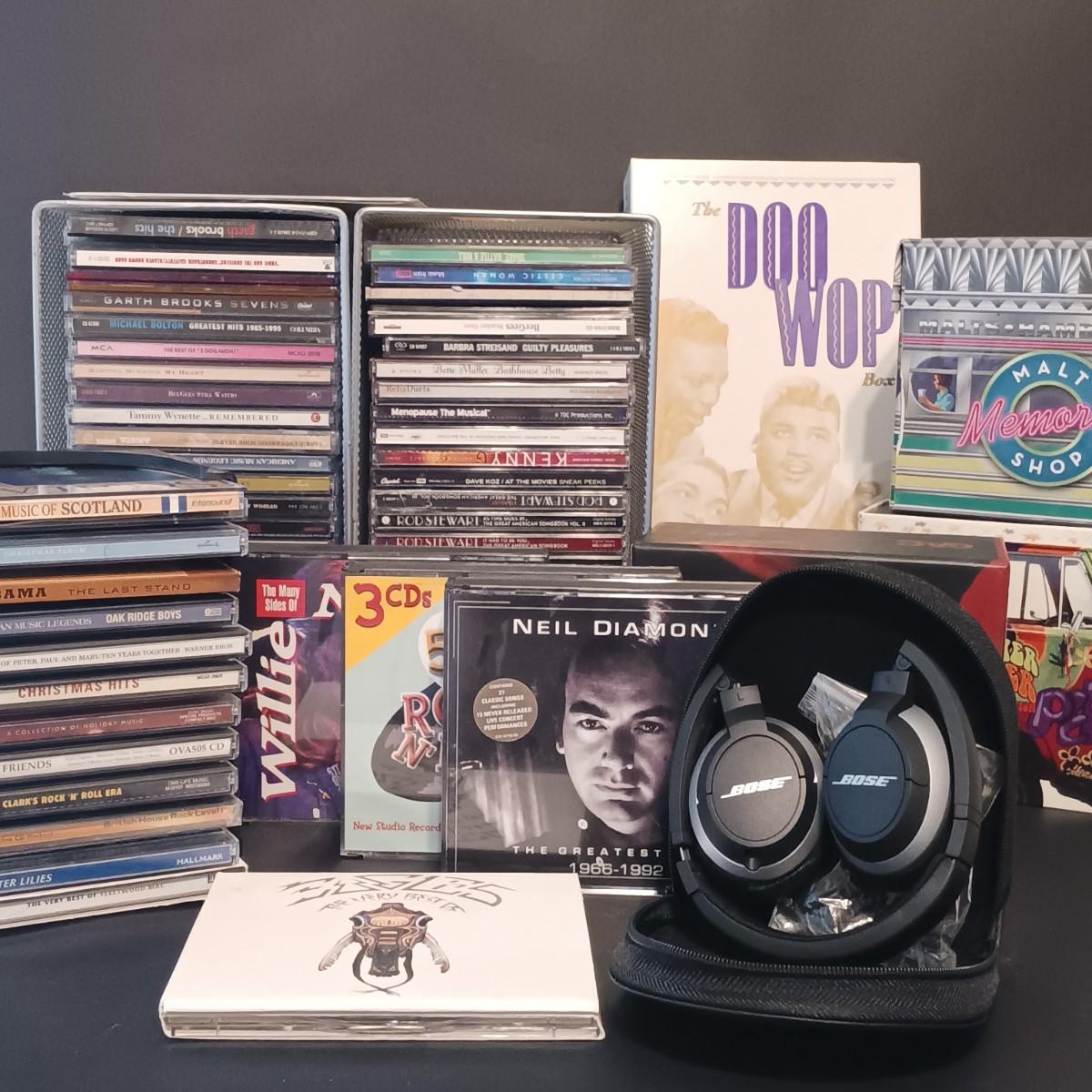 LOT 53: Bose SoundLink Headphones with Large CD Assortment