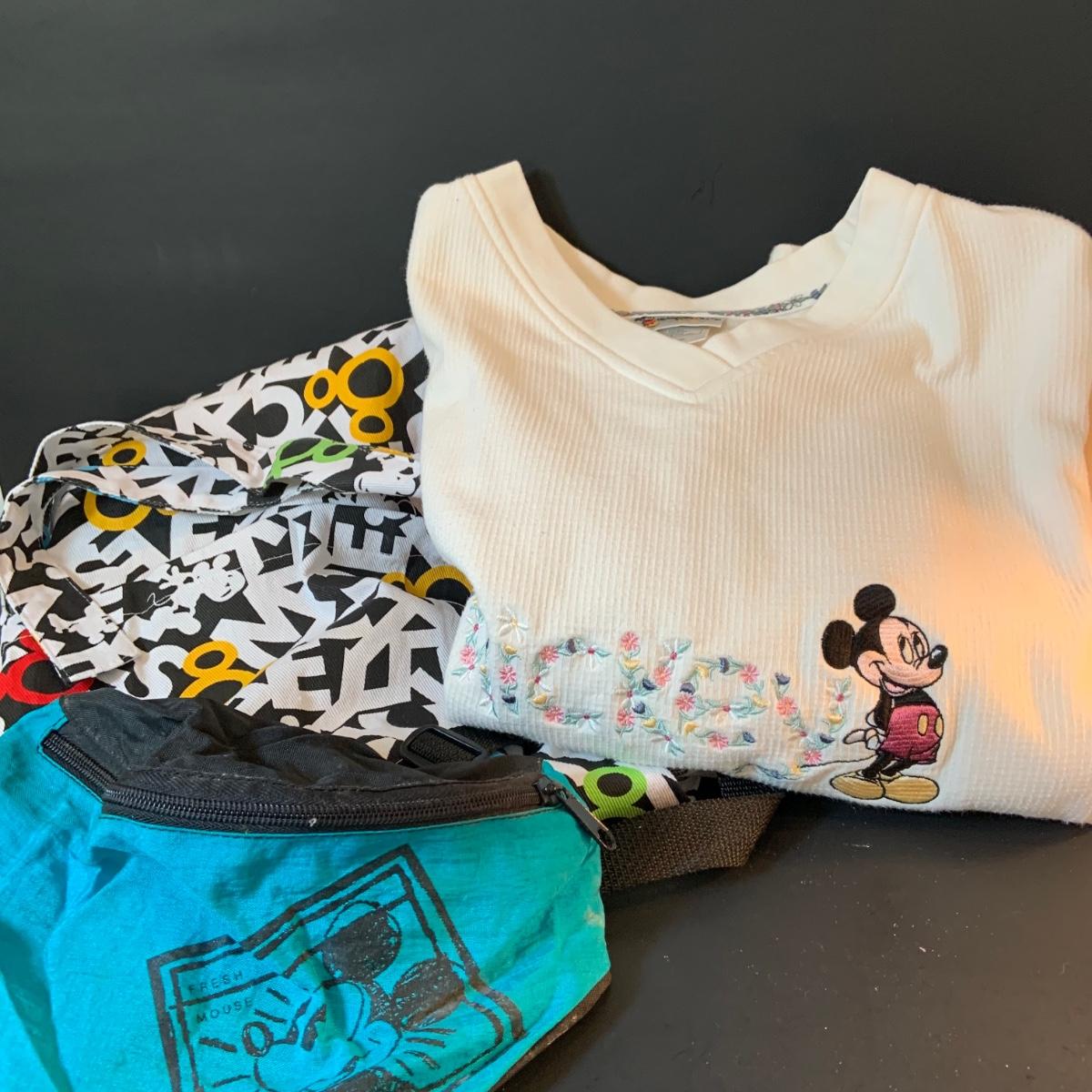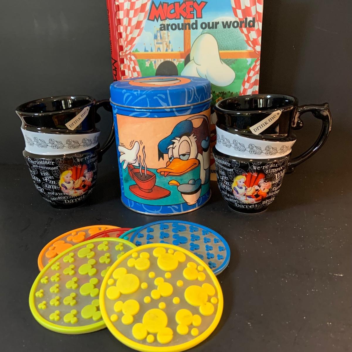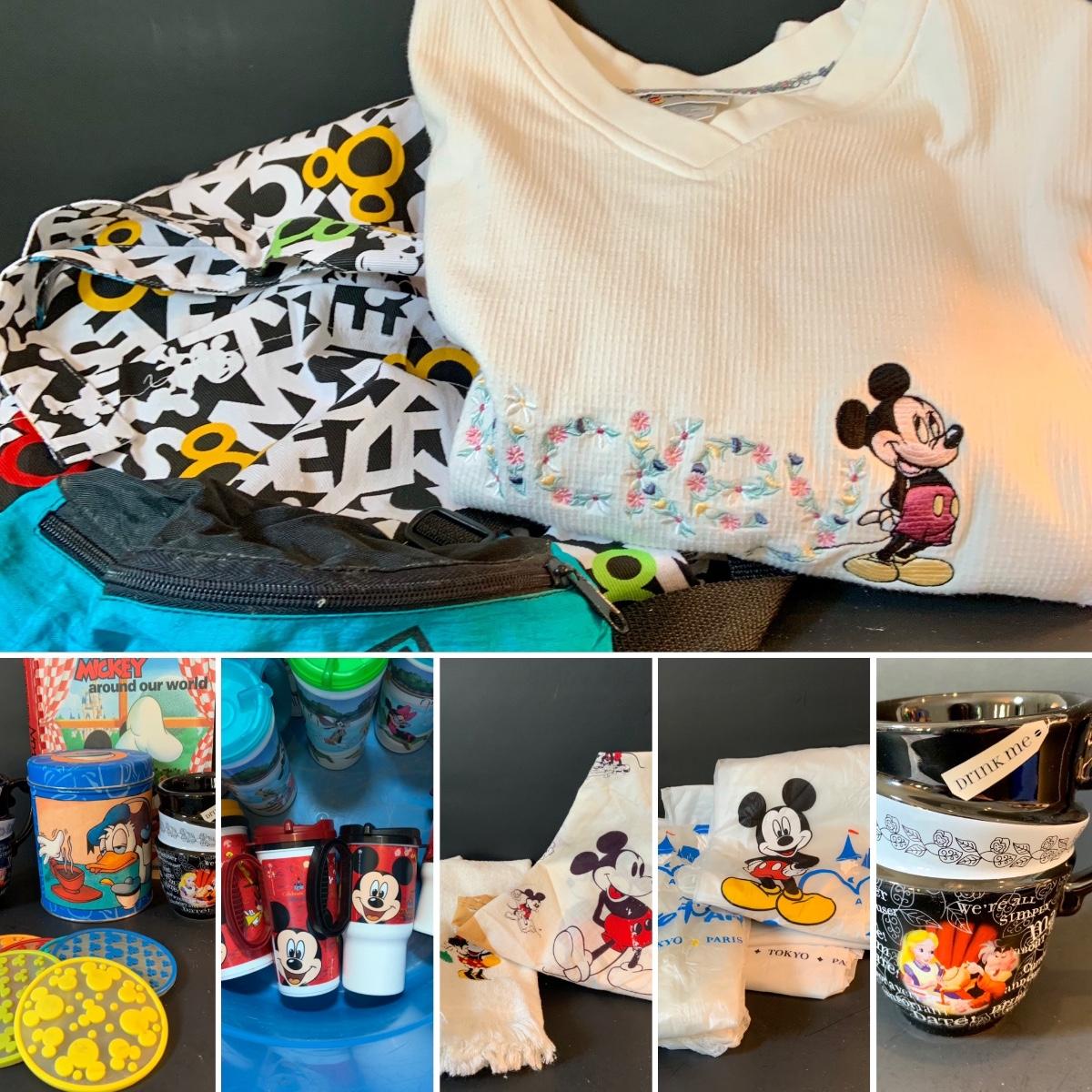 LOT:62: Large Assortment of Disney Items Featuring Alice in Wonderland Teacups, Woman's Mickey Sweatshirt, Travel Mugs, Ponchos, and Much More
