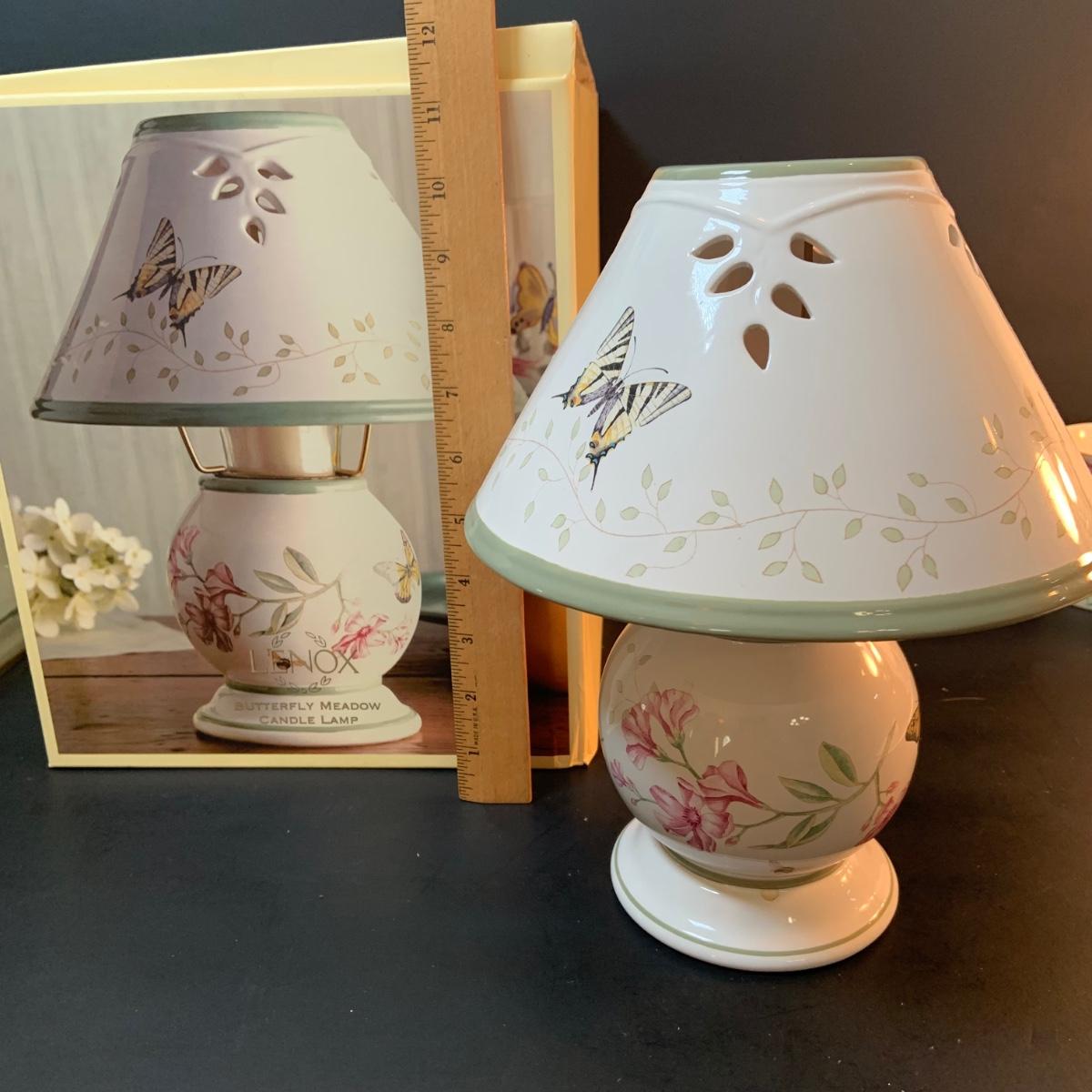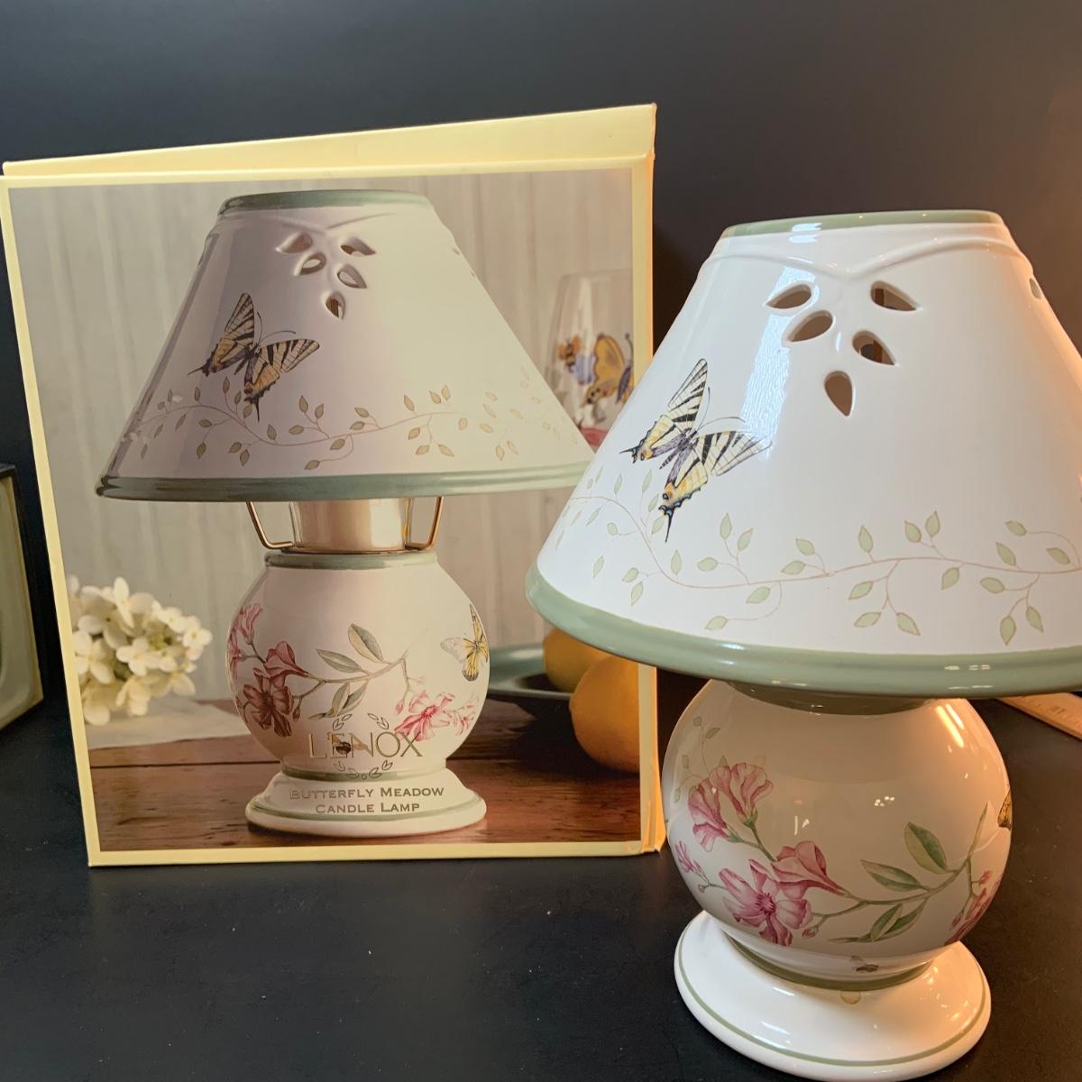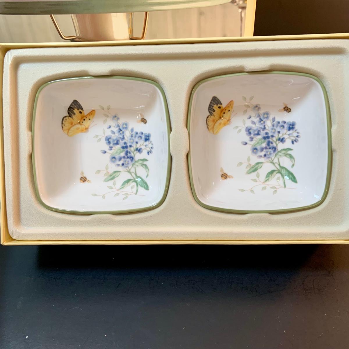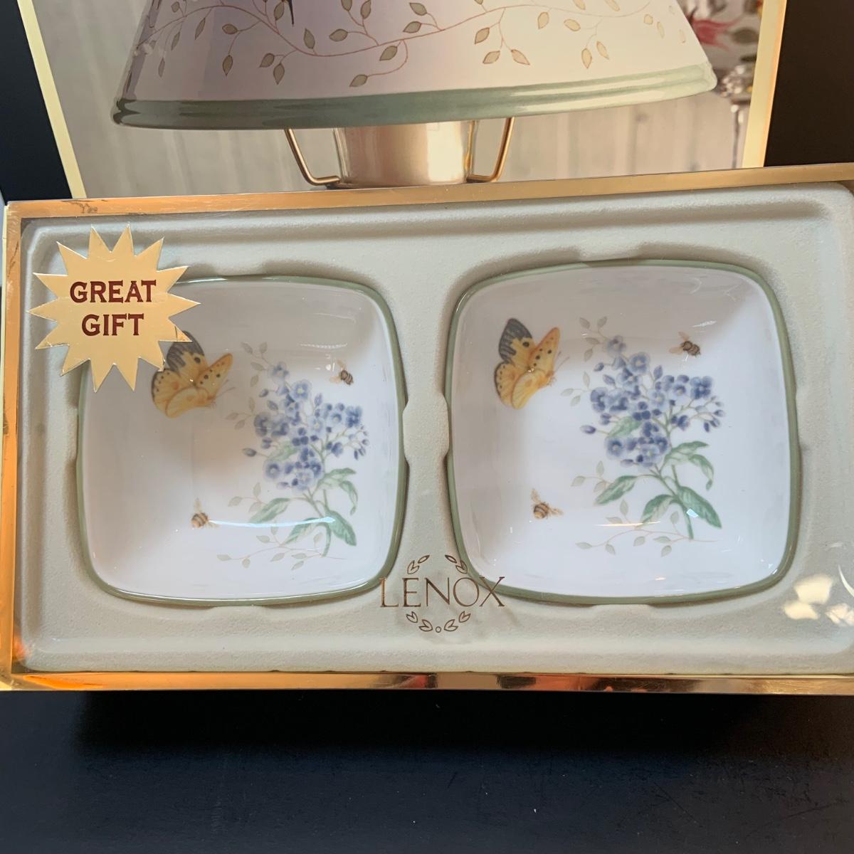LOT:70: Lenox Spring Themed Collection - Butterfly Meadow Candle Lamp, Bud Vase, Dipping Bowls and Flower Blossom Mugs