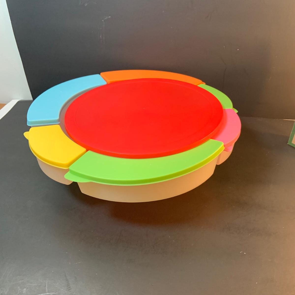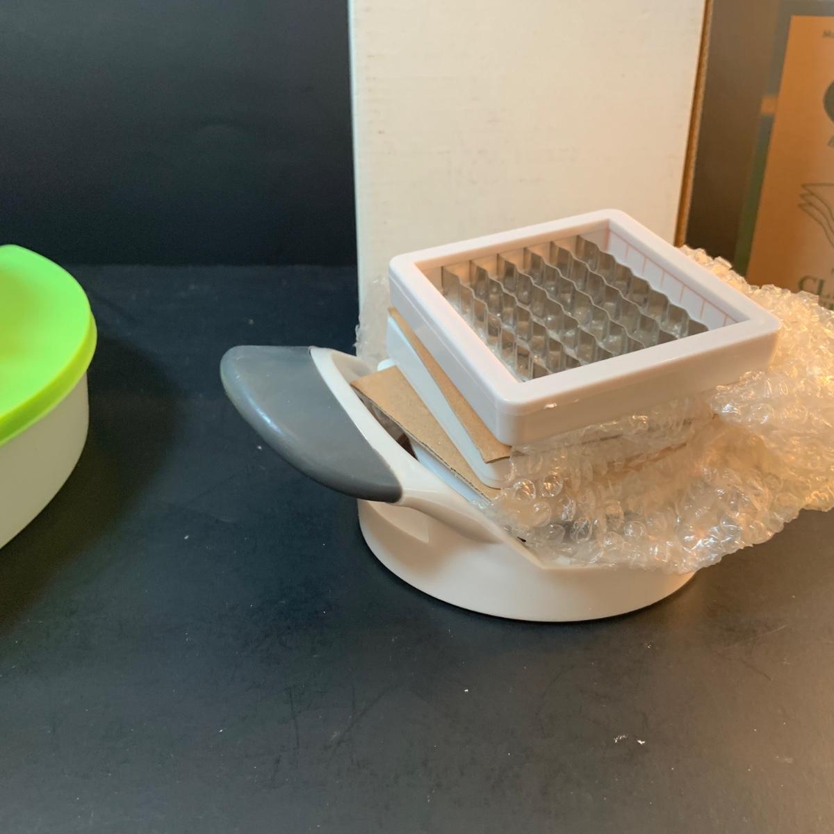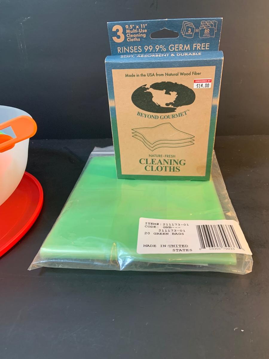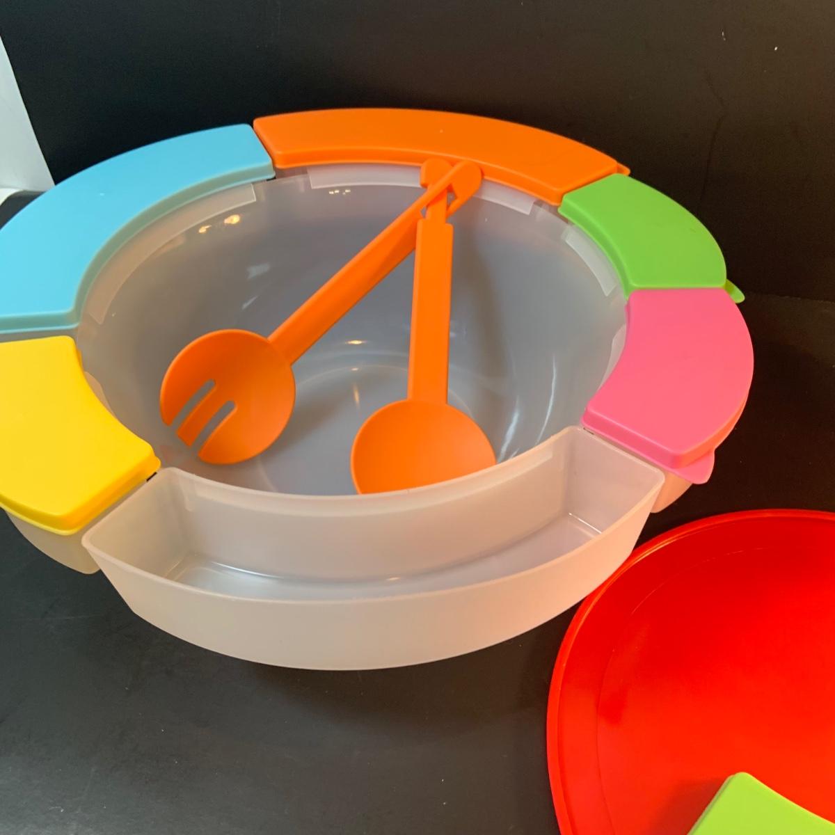 LOT:76: Colorful Kitchen Collection Featuring Vintage Avon Salad Server/Storer, Colored Glasses, Black & Decker Slicer/Shredder, Gizmo Mixer, Cuisinart Scale, Kitchen Towels and More