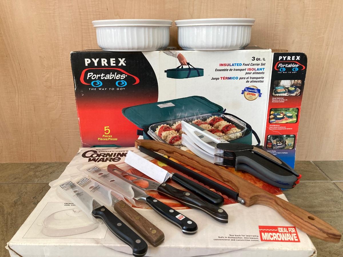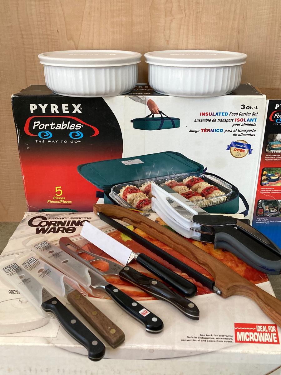 LOT 99: Kitchen Collection - Pyrex Portables, Corning Ware, Cutlery (Cutco, Pampered Chef and Chicago)