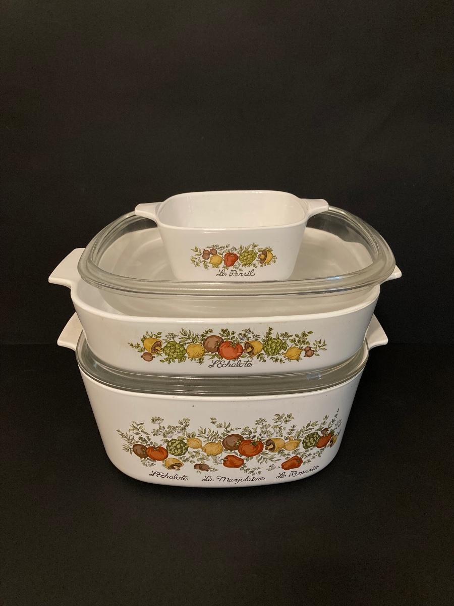 LOT 106: Vintage Corning Ware - Spice of Life Casserole Dishes (5 Quart and More)