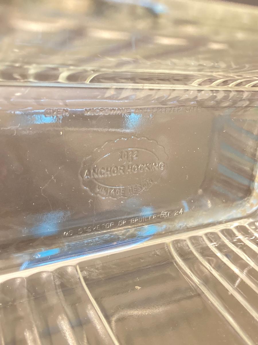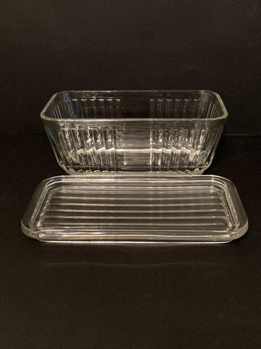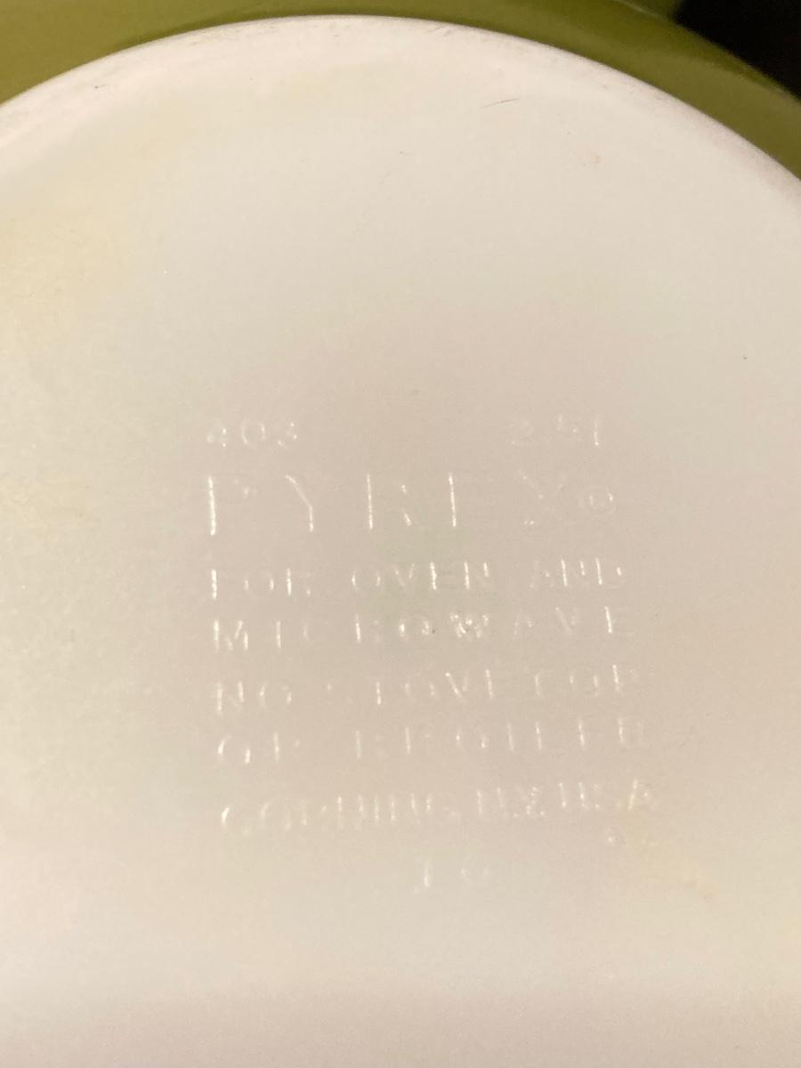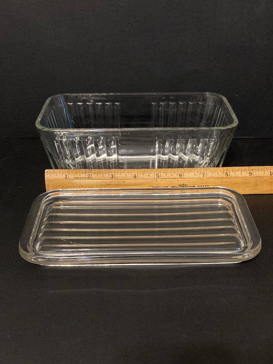 LOT 108: Pyrex Spring Blossom Three Mixing Bowl Set and Anchor Hocking Ribbed Glass Refrigerator Dish with Lid