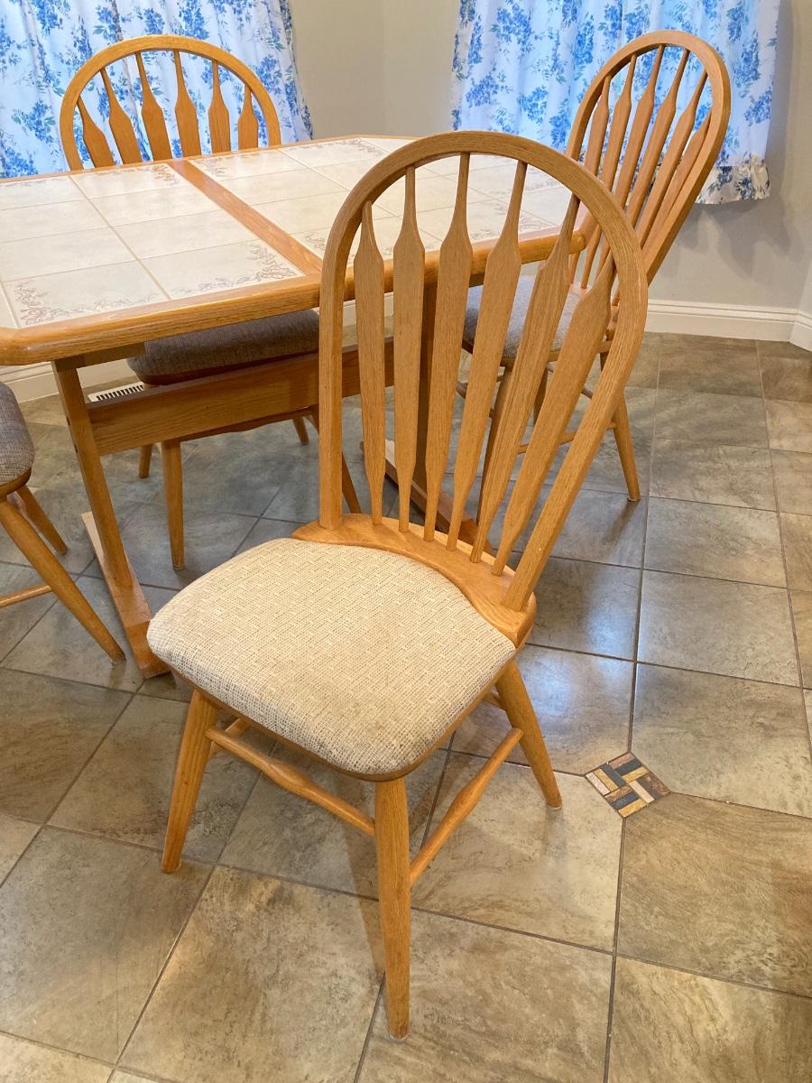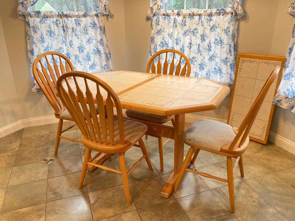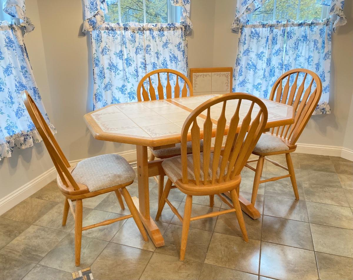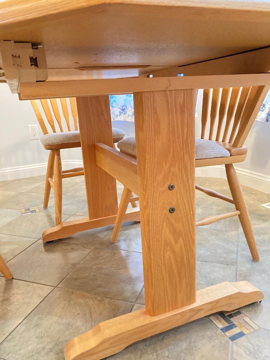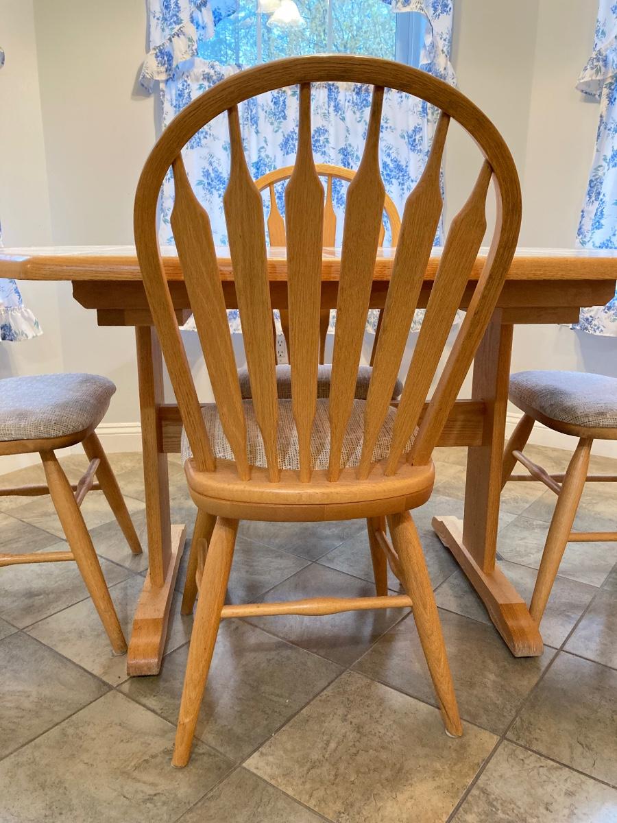 LOT 114: Oak Dining Room Table, Extension Leaf and Four Chairs