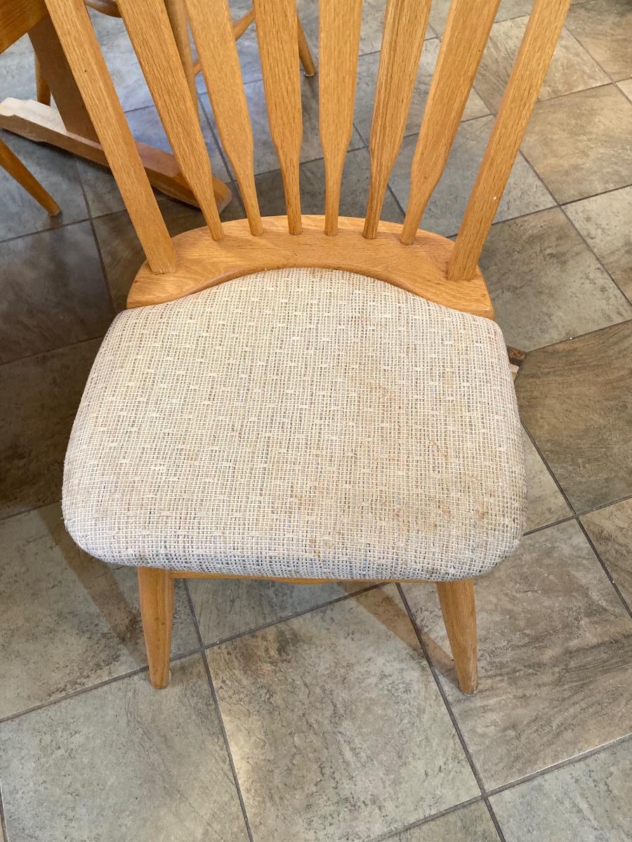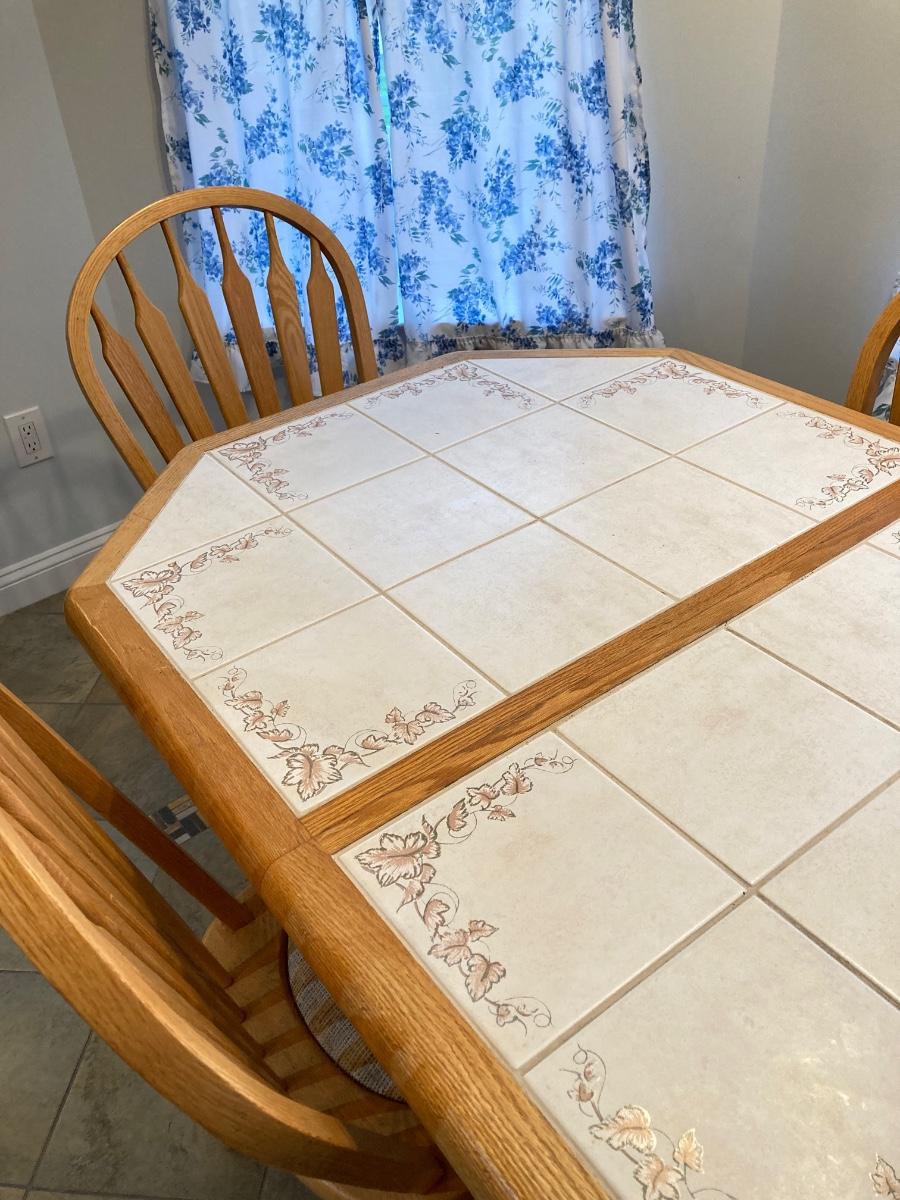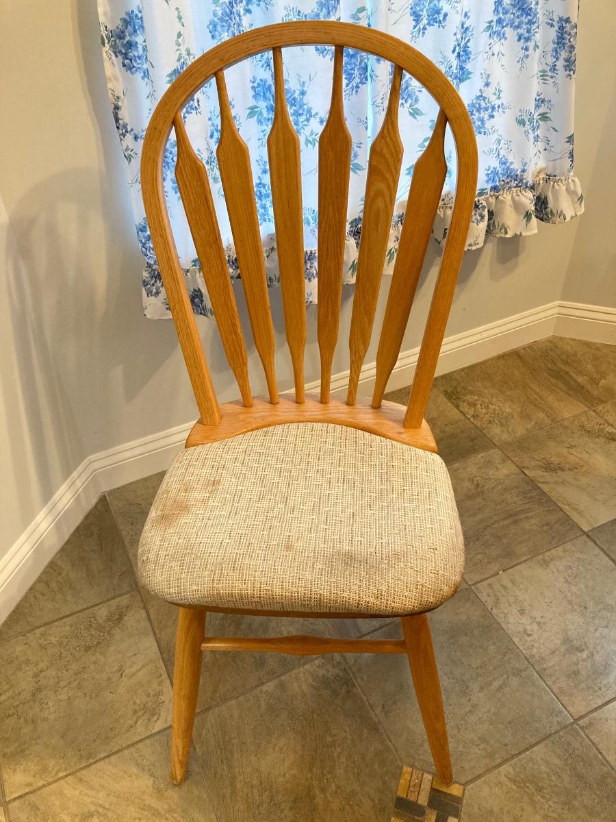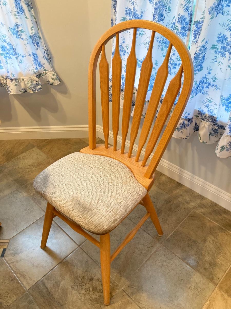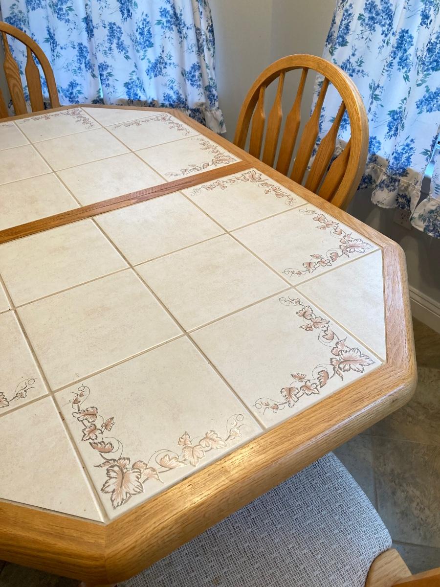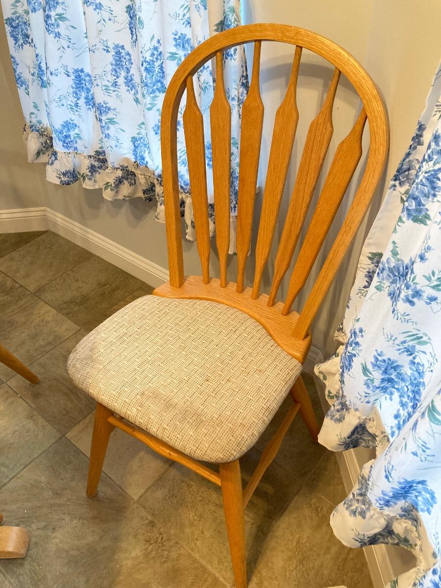 LOT 114: Oak Dining Room Table, Extension Leaf and Four Chairs