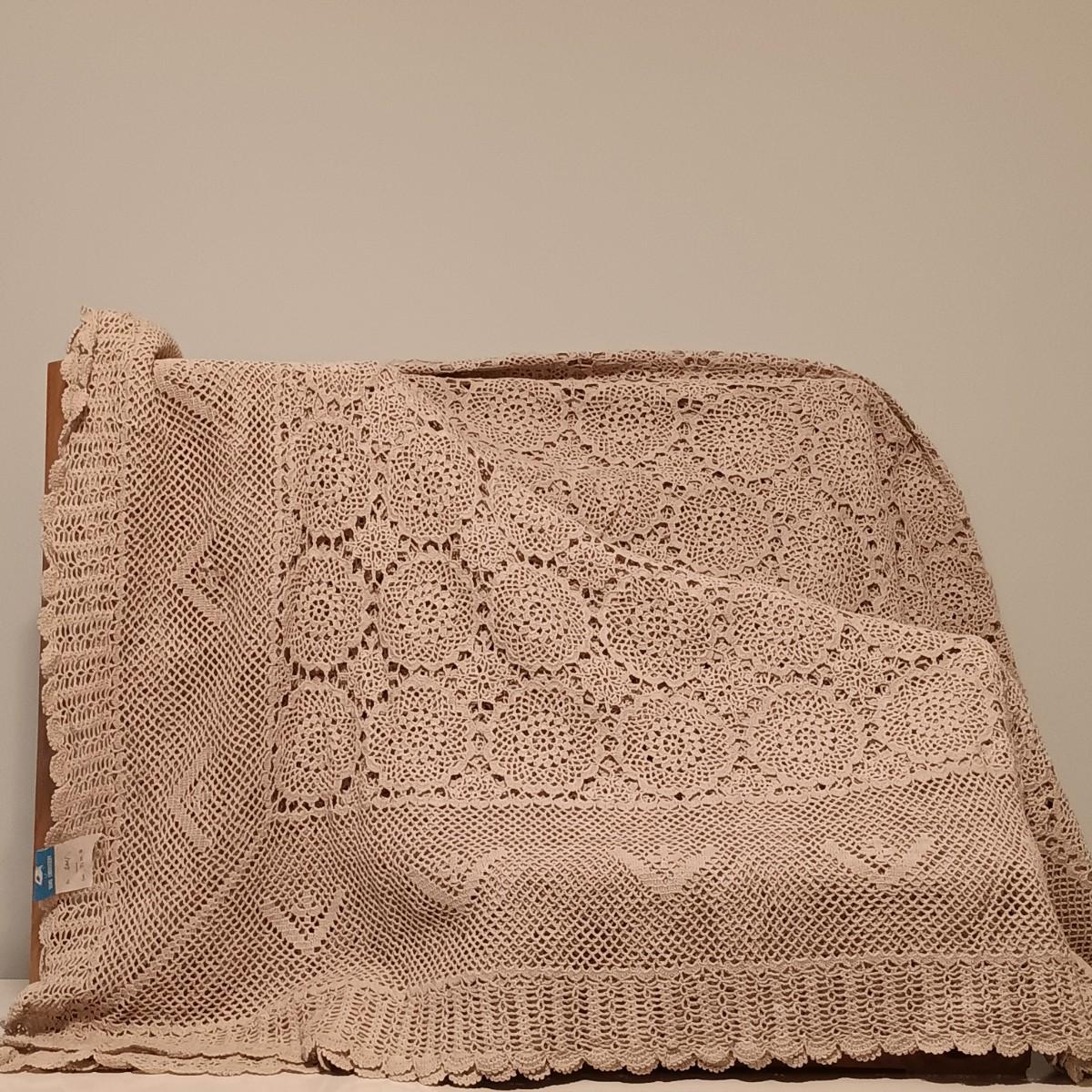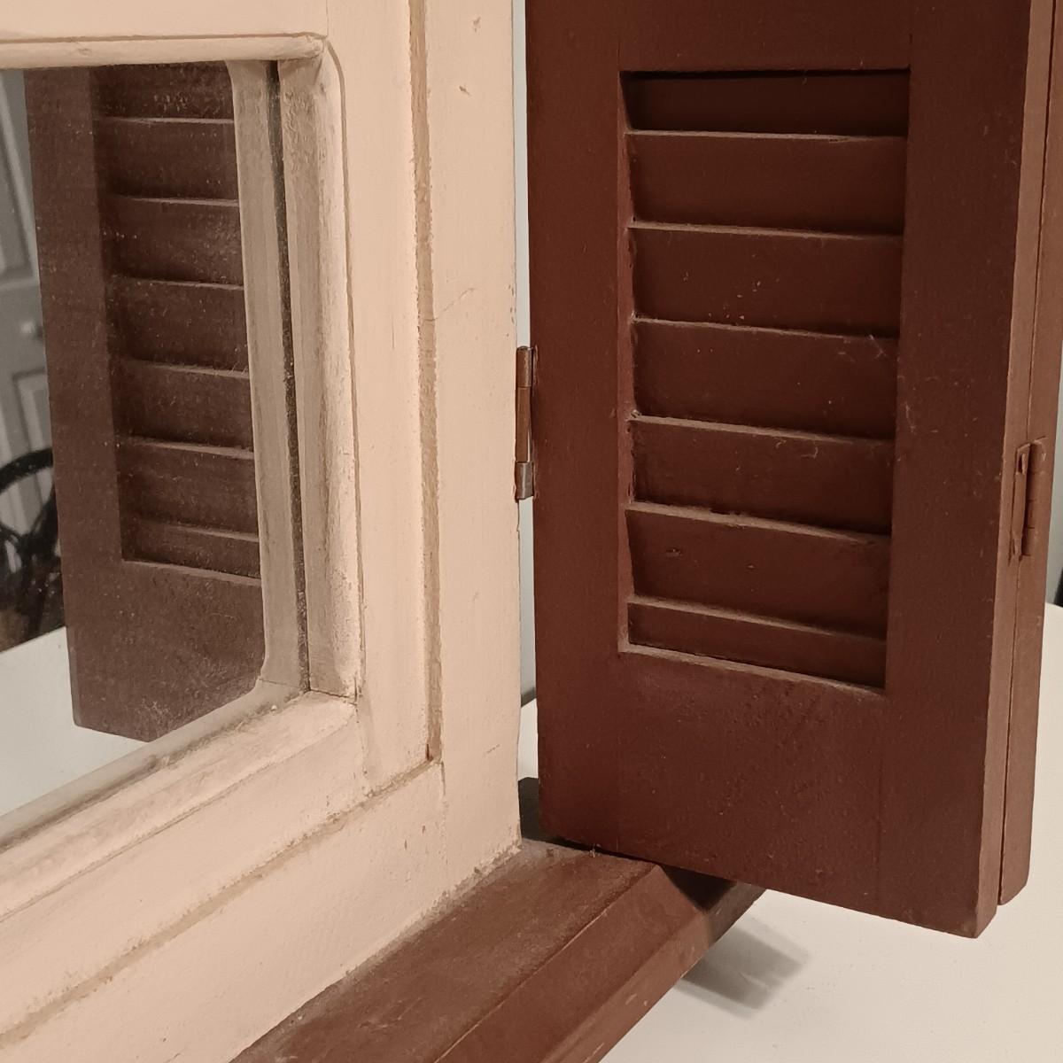 LOT 139: Home Decor Collection- Handmade Afghan, Mirrored Window with Shutters, Slatted Wood Basket & More