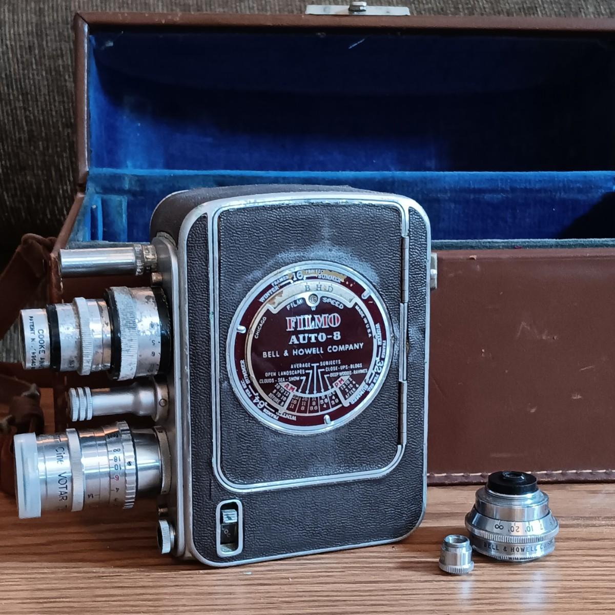 LOT 140: Vintage Metal Ashtray Stand, Blenko-Style Green Glass Ashtray, Bell & Howell 'Filmo' 8mm Movie Camera & More