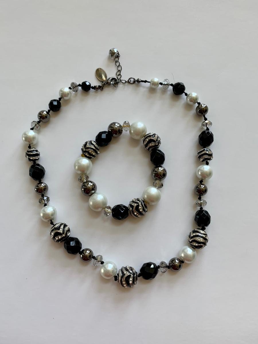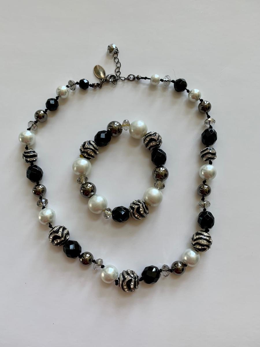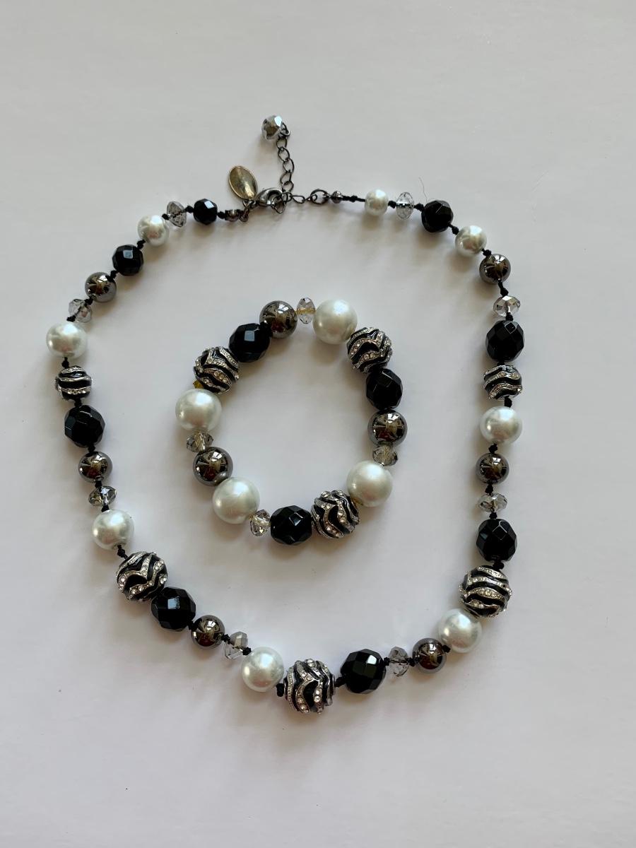 Lot 102R: White House/Black Market Faux Pearl & Bead Necklace w/Stretch Bracelet