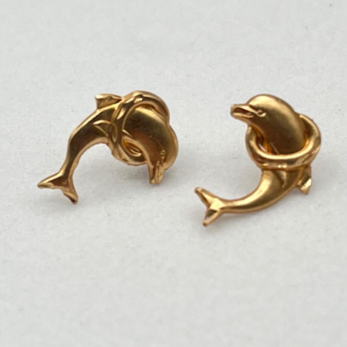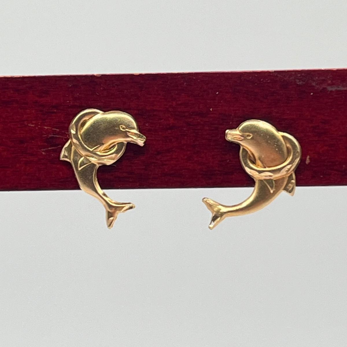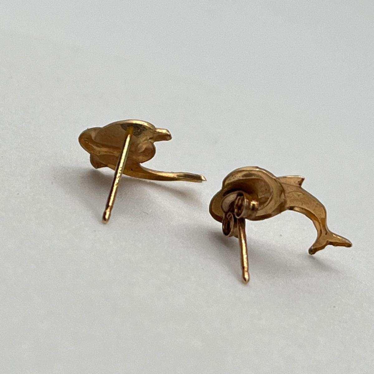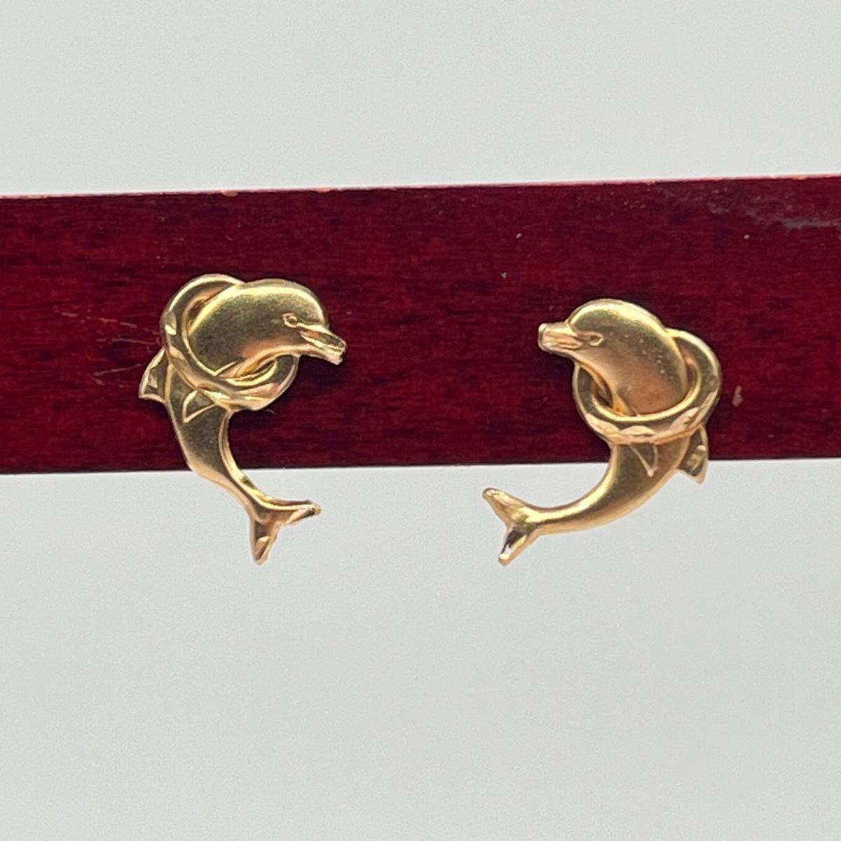 LOT 103: 14K Gold Dolphin Pierced Earrings - 0.3 grams