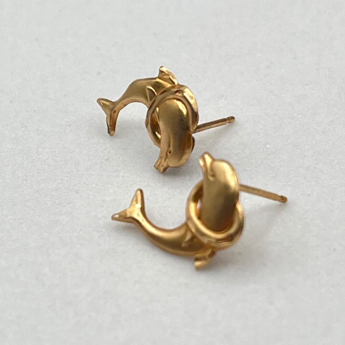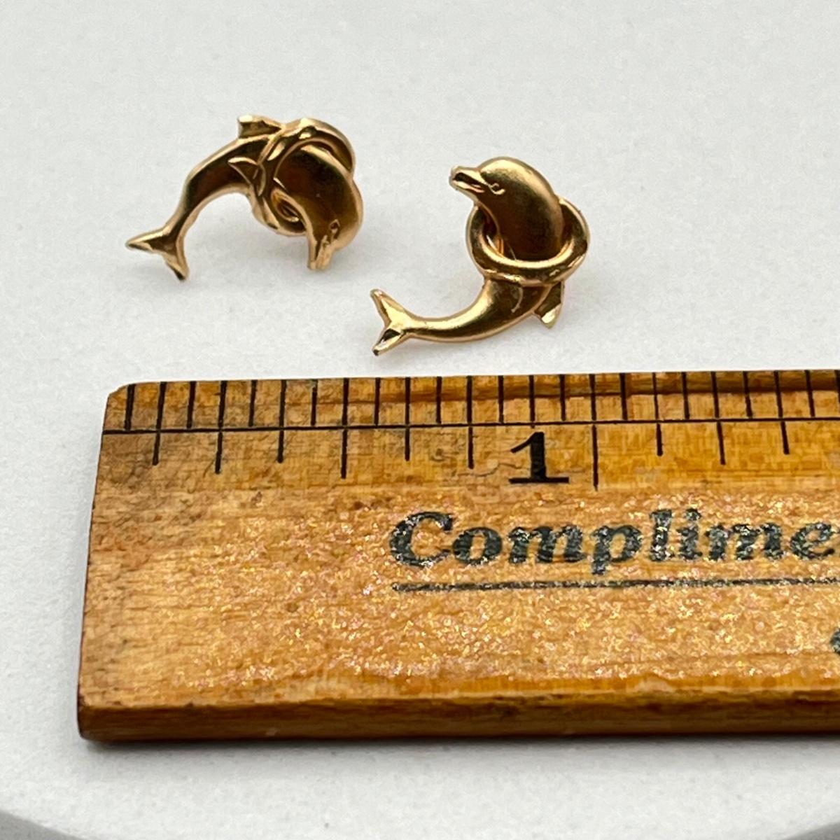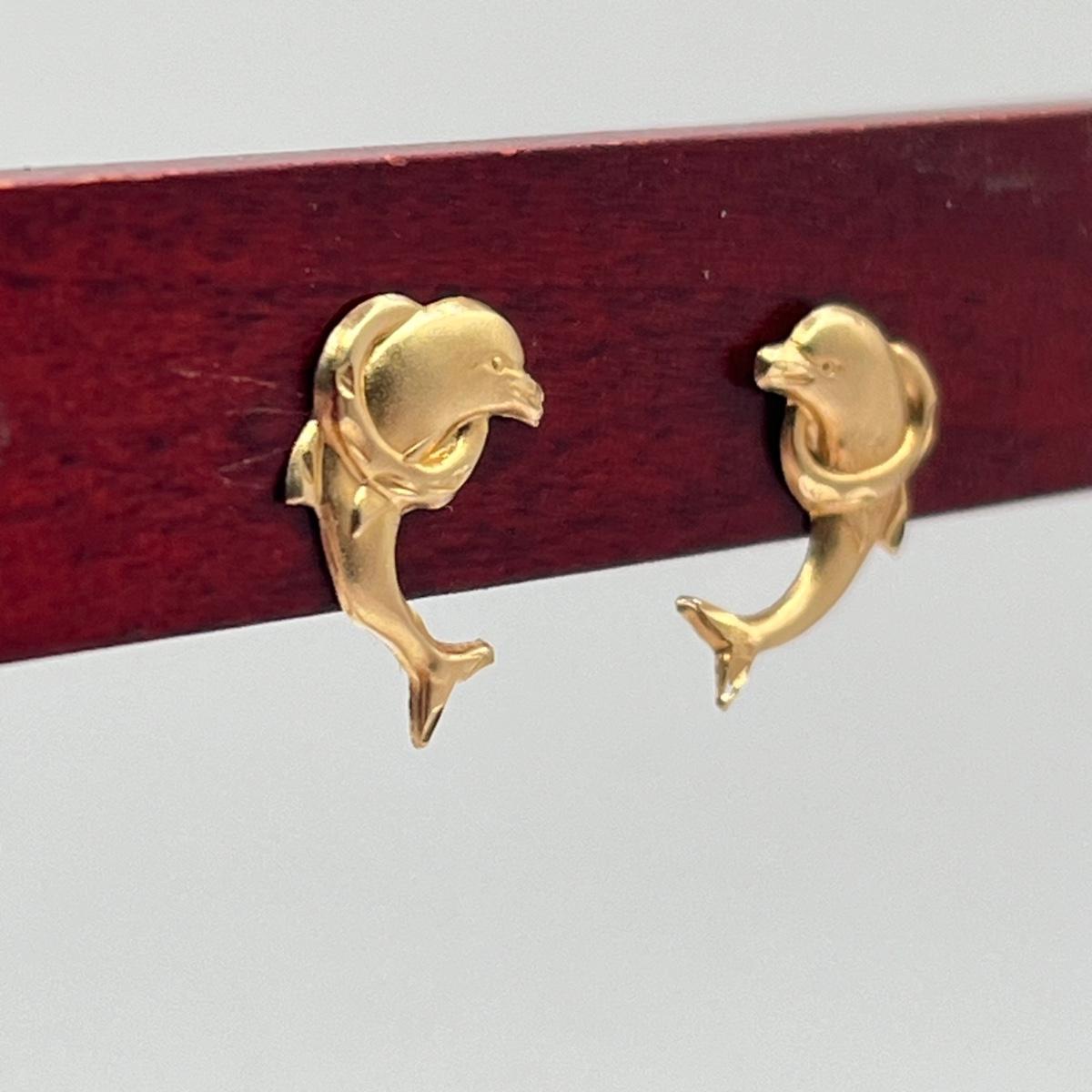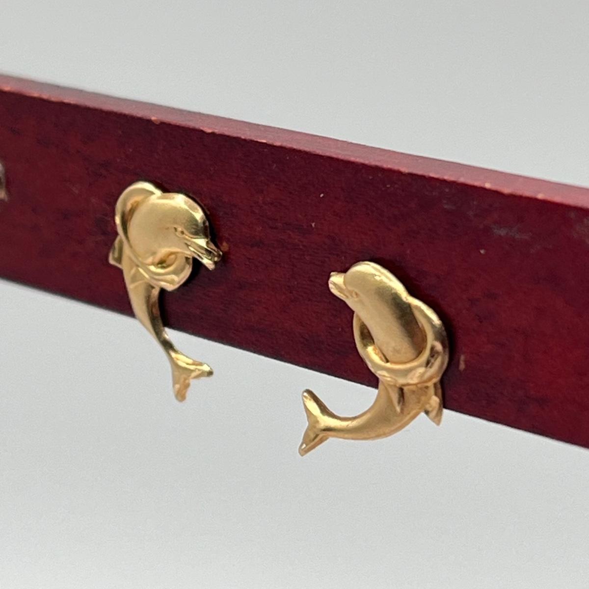 LOT 103: 14K Gold Dolphin Pierced Earrings - 0.3 grams