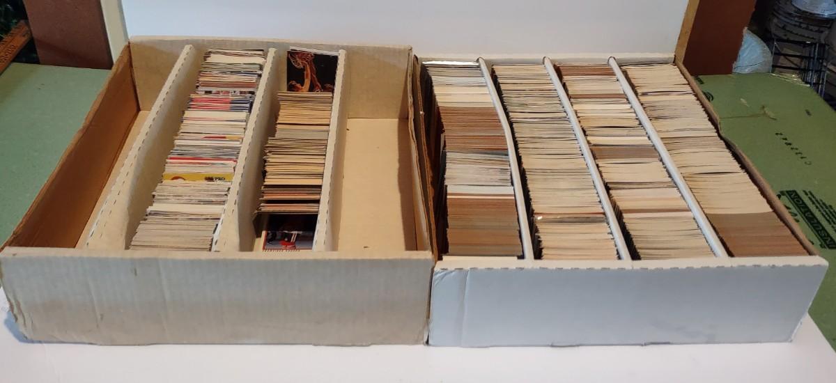 2 Boxes Of Mixed Cards. The pictures show condition, measurements if taken, and what is included in the lot. Due to the large amount that we photograph and the time frame, we are not always able to take measurements. All items unless noted, are pre-owned and have been used. If you purchased furniture, you must bring help. We do not allow one person to carry large furniture out on their own. Bring help, tools and a truck for the safety of our client’s homes, and your personal safety. Company policy. Thank you.