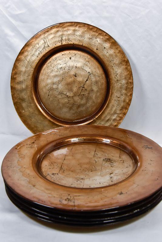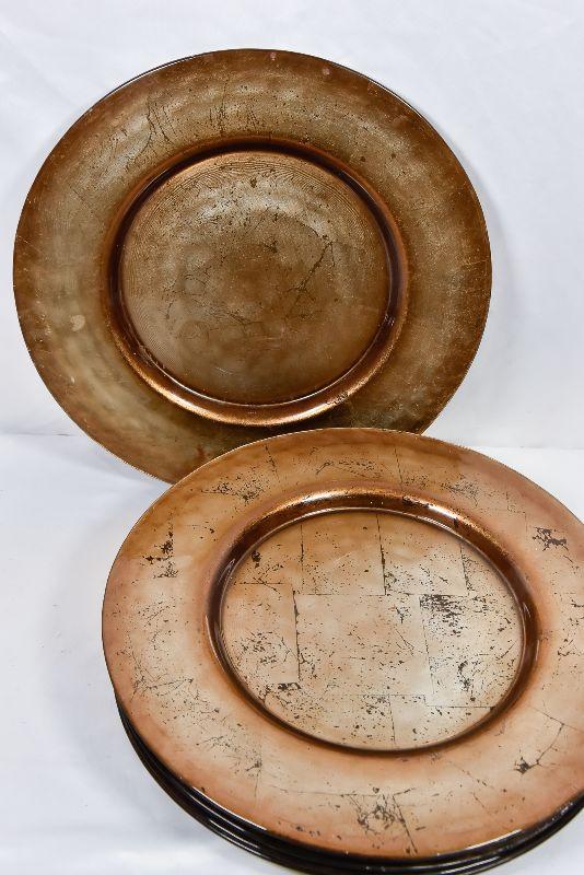 Lot 103: Set of 6 Rustic Gold Glass Chargers