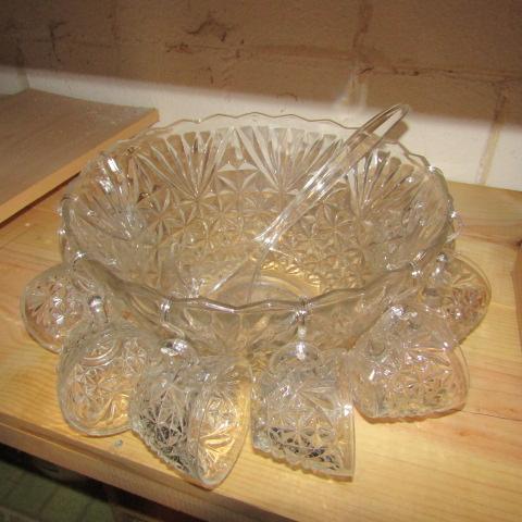 18 PC PUNCH BOWL SET IN VERY GOOD CONDITION