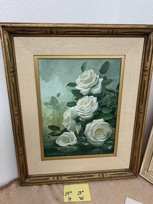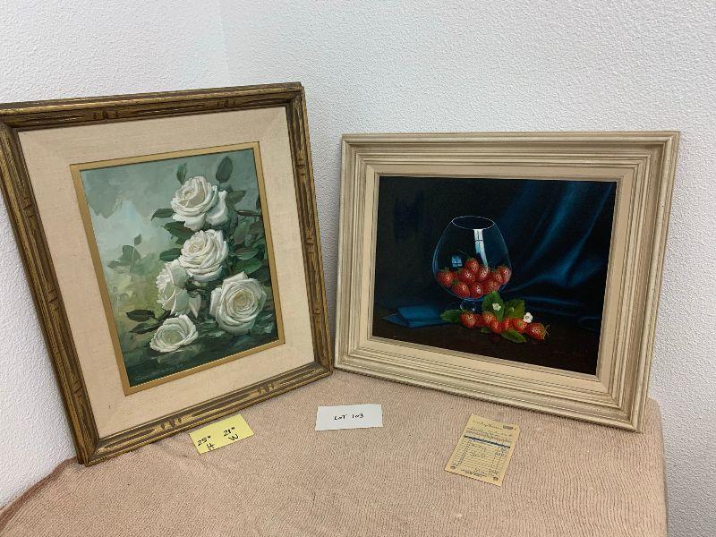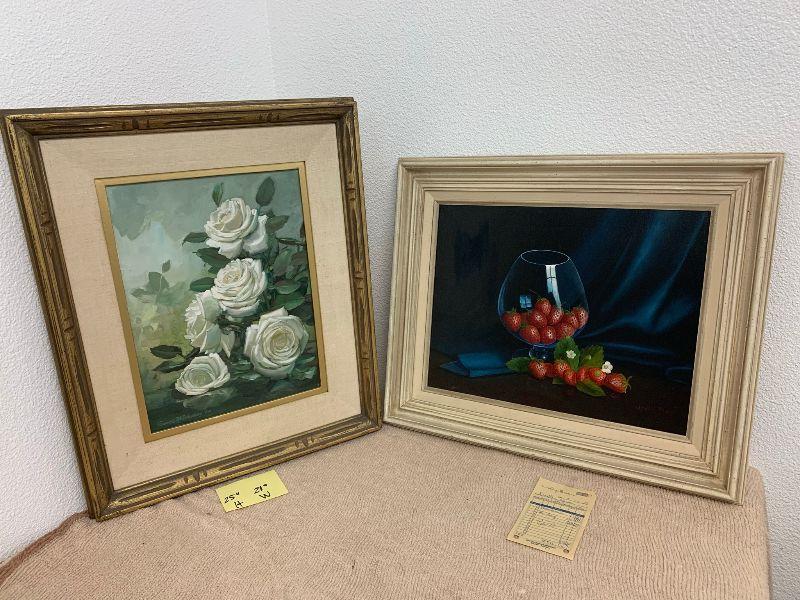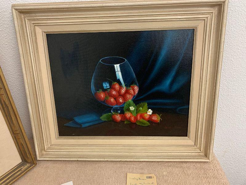 Strawberries in a glass oil on canvas, and white flowers oil on canvas