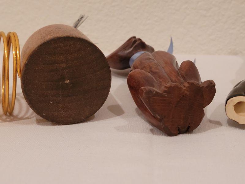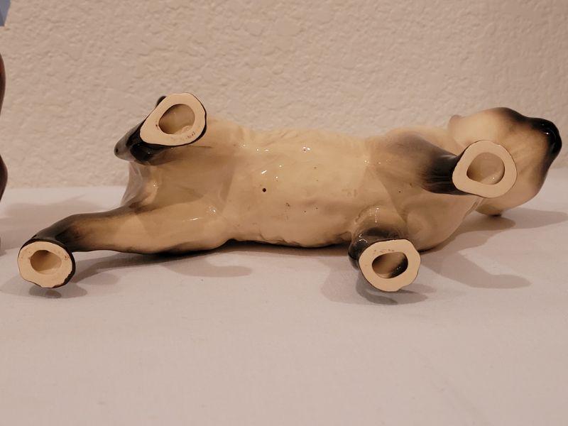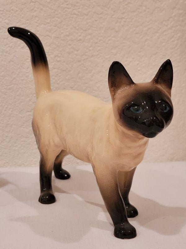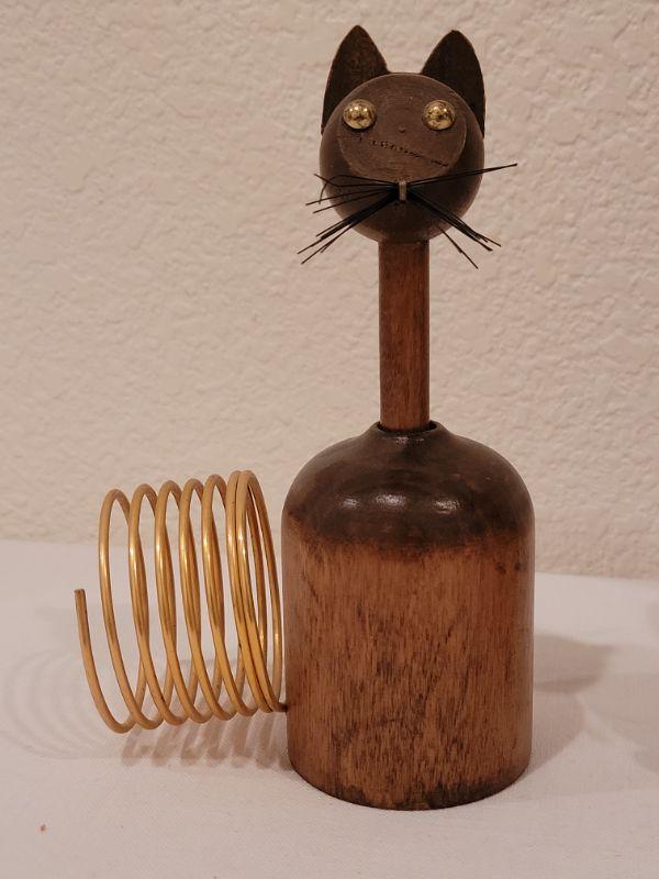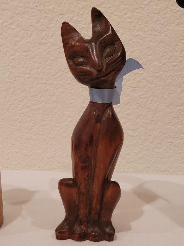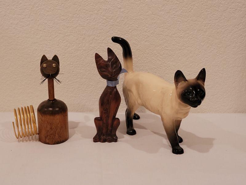 Lot 103: Vintage Mid Century Wood Letter Holder & Pen Cat, Wood Cat And Ceramic Siamese Cat