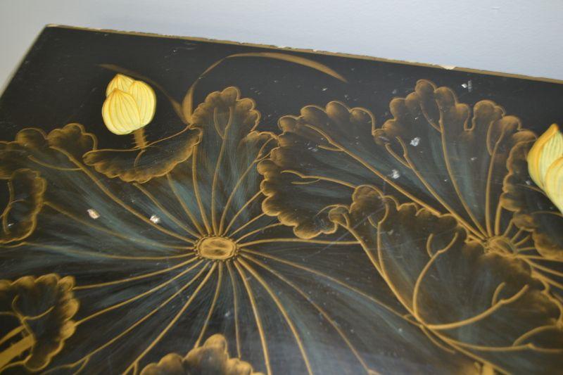 LOT 103  DECORATIVE ASIAN MODERN LACQUERED CONSOLE TABLE AND TWO STOOLS