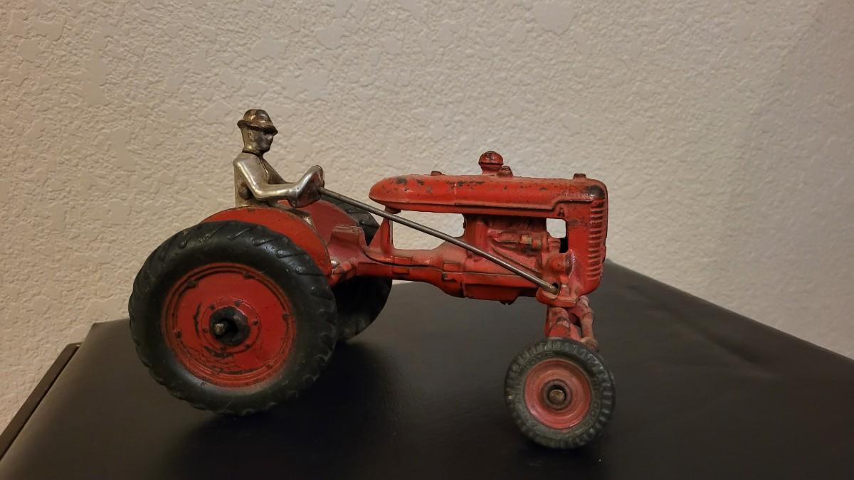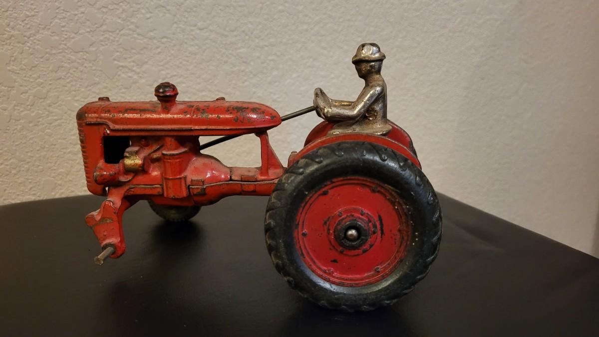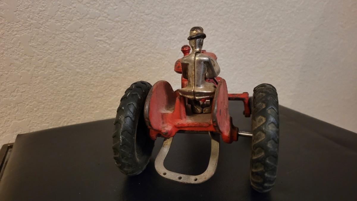 Lot 103: Vintage Diecast Iron Tractor with Nickel Plated Driver