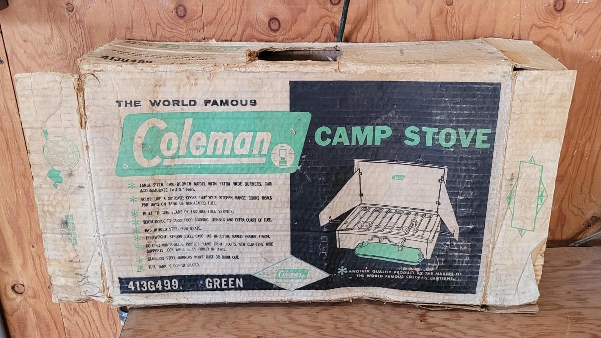 Lot 103: Vintage COLEMAN Portable Camping Stove w/ Original Box MODEL #13G499