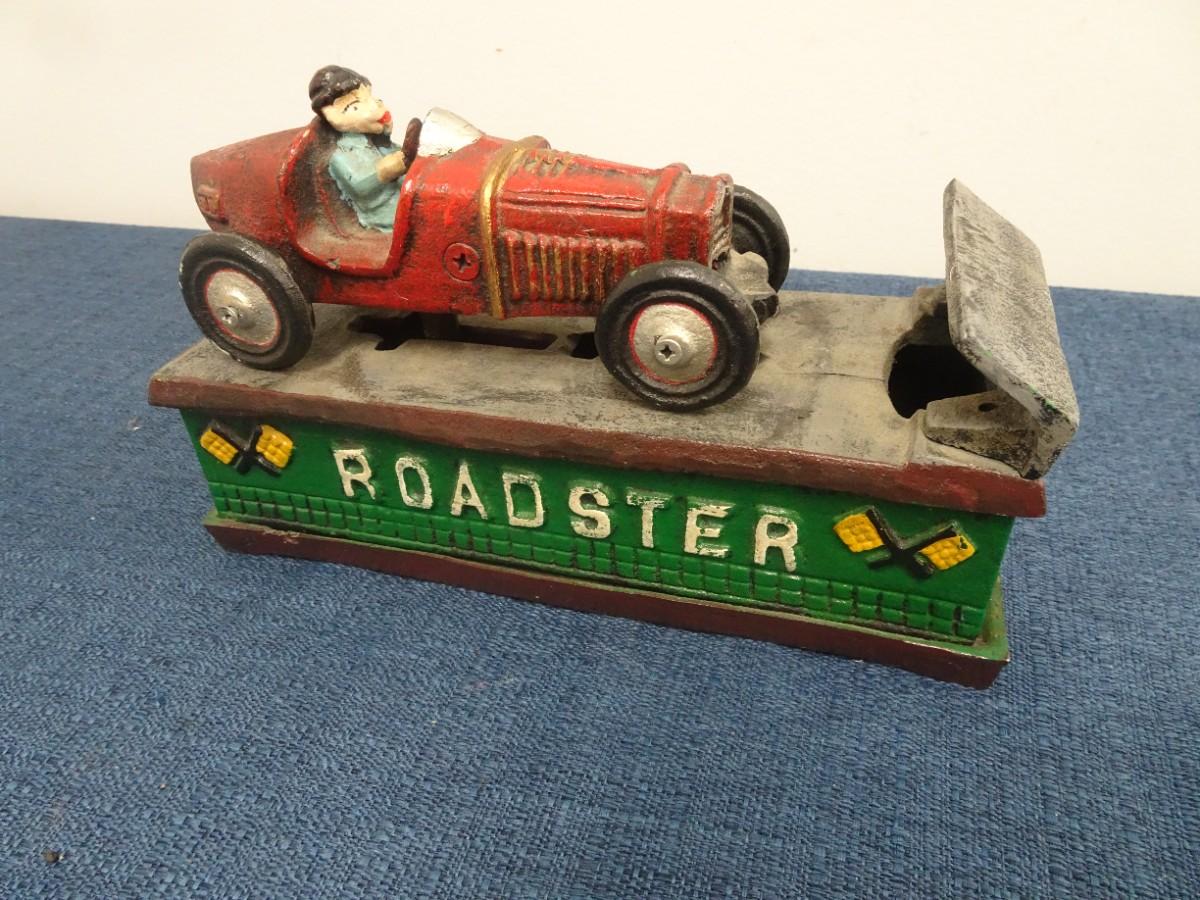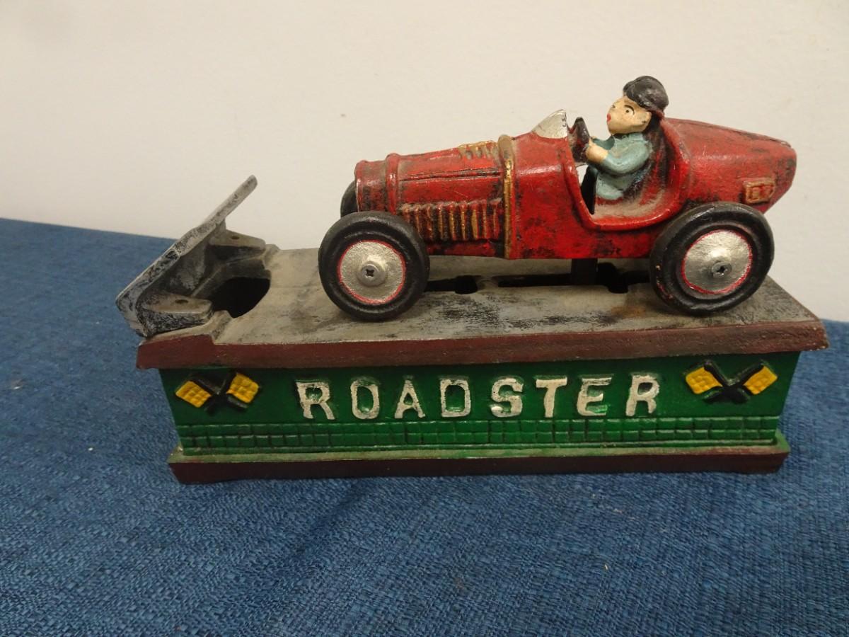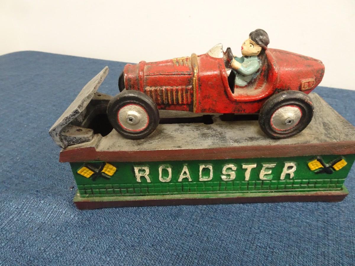 LOT 103. VINTAGE DIE CAST METAL ROADSTER BANK
