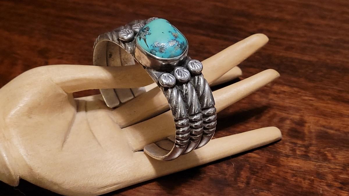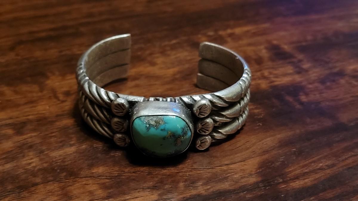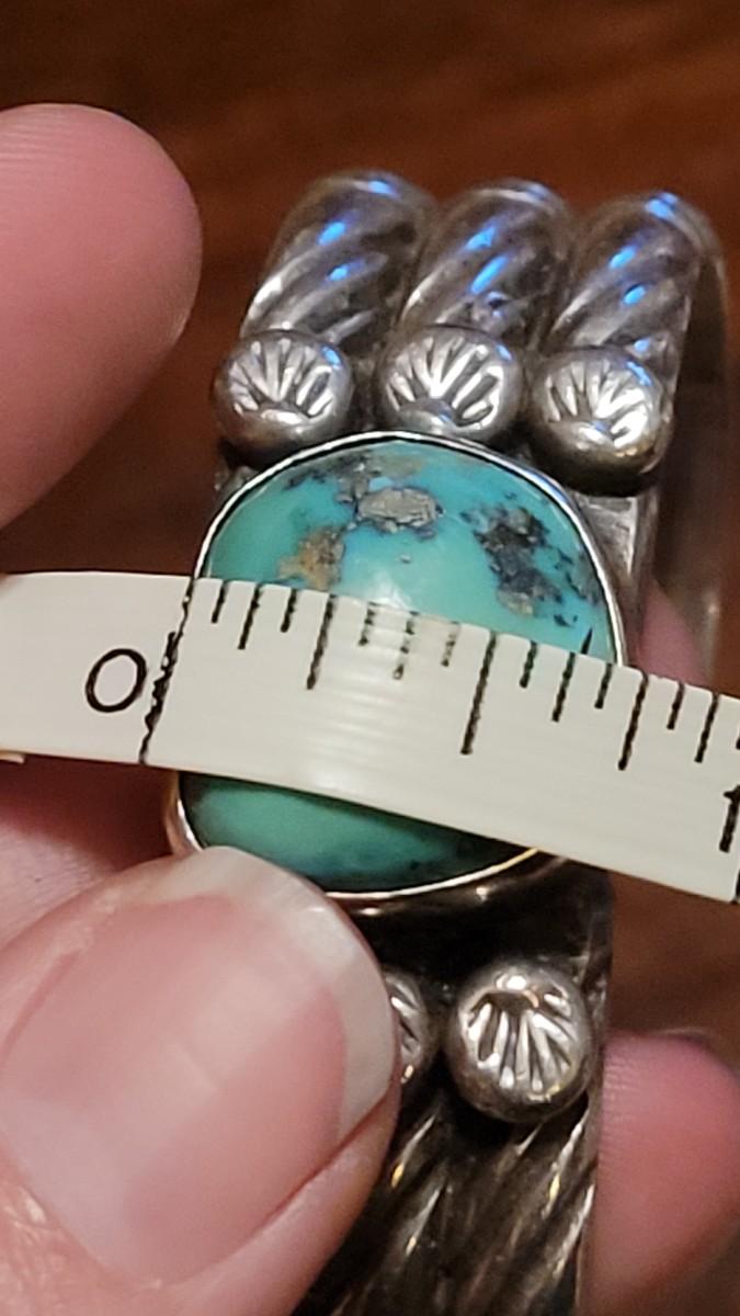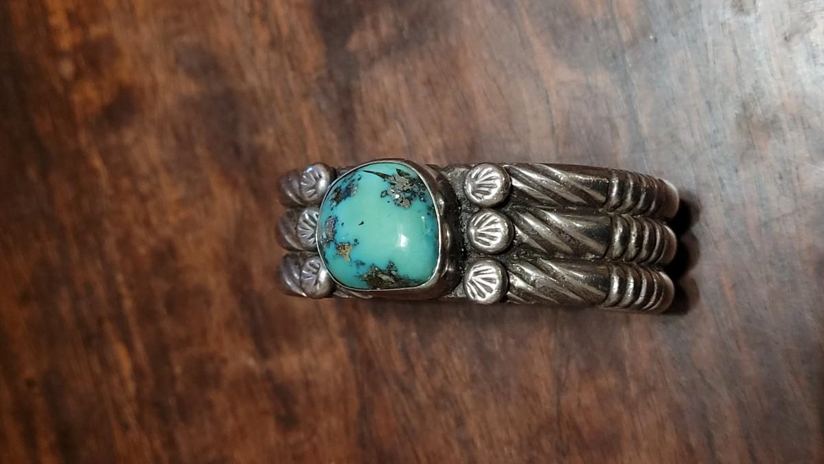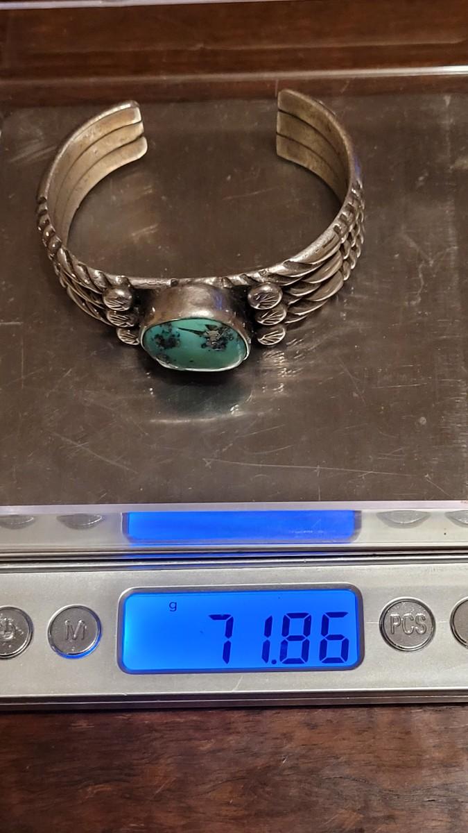 Lot 103: Old Pawn Navajo Heavy Silver & Royston Turquoise Cuff Bracelet